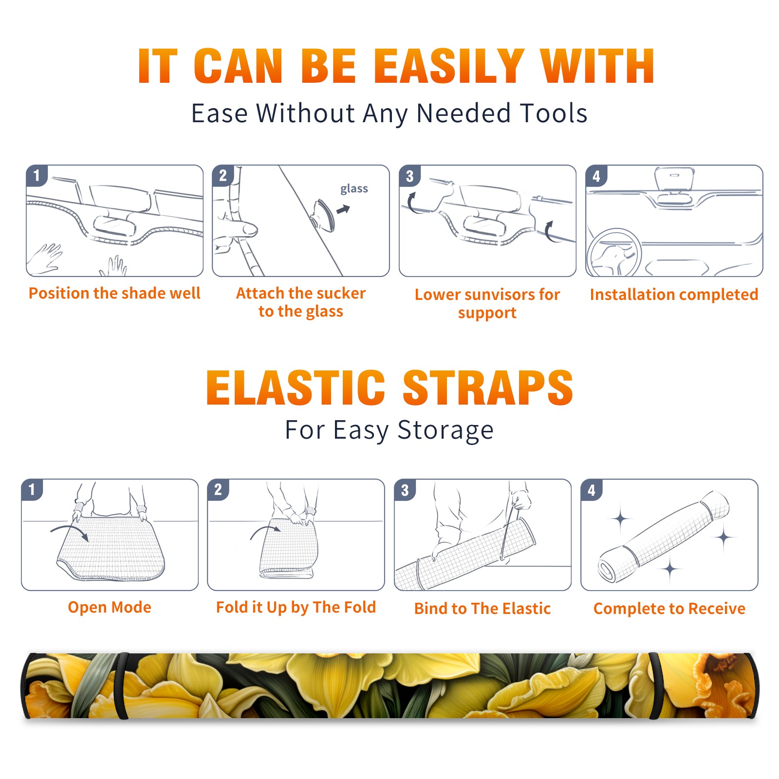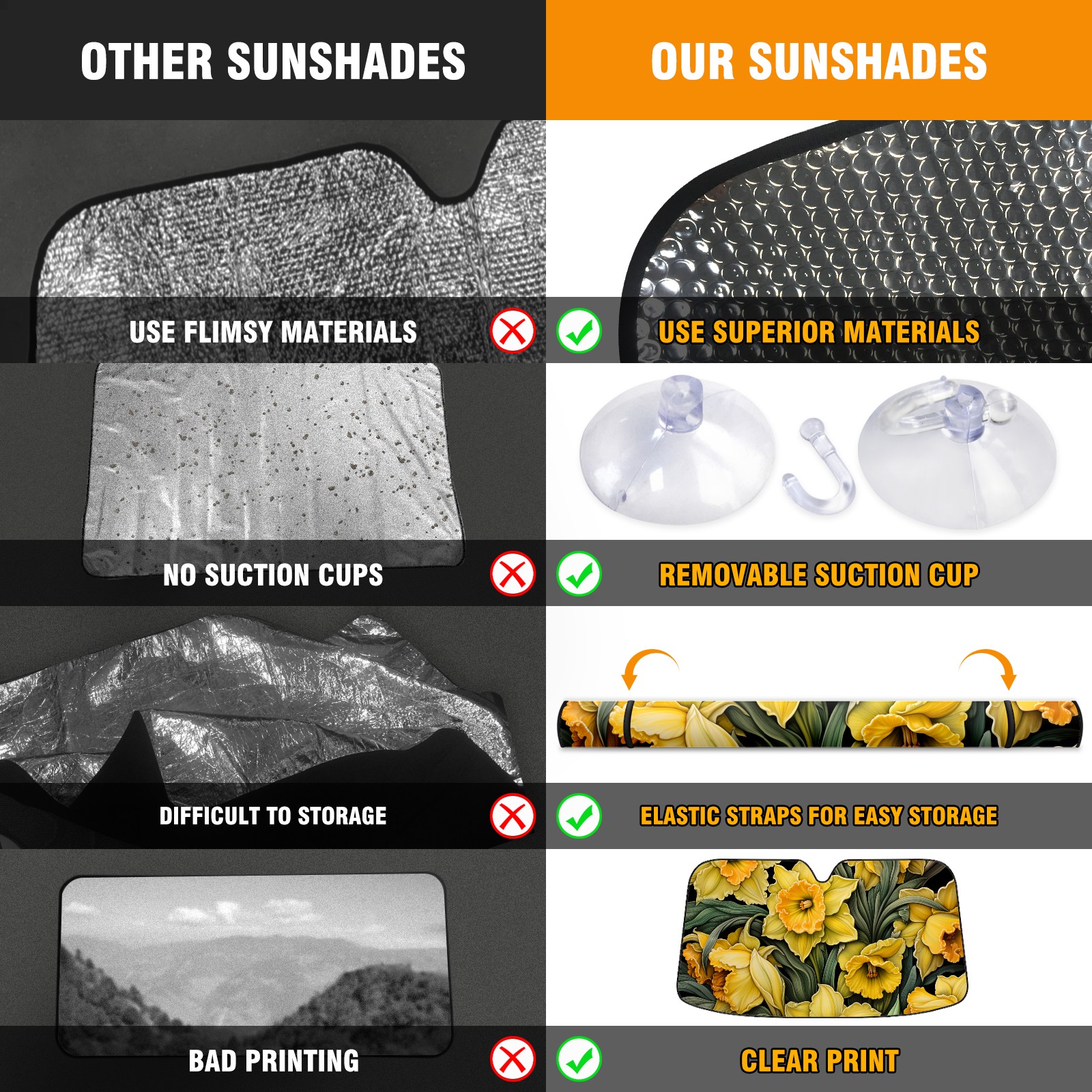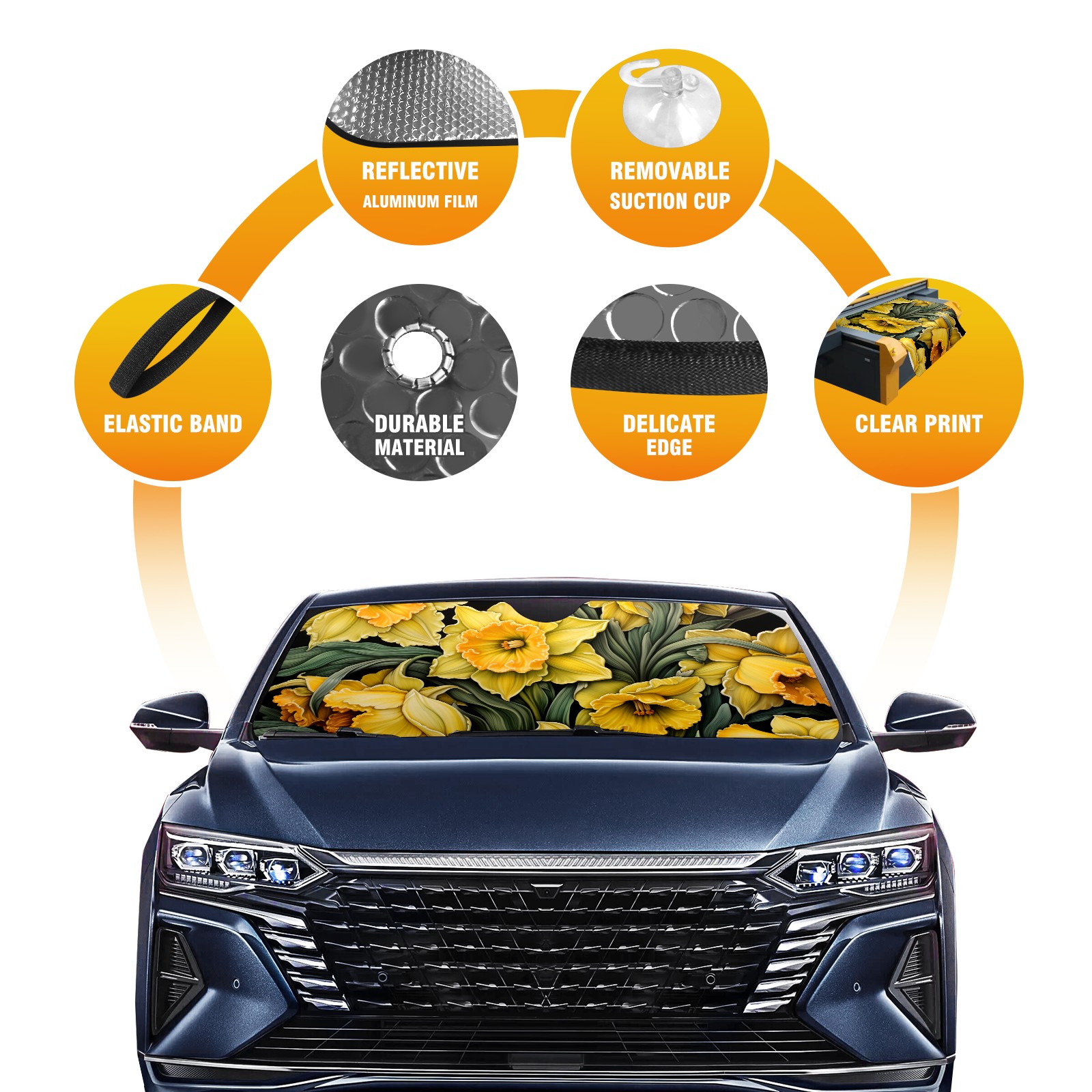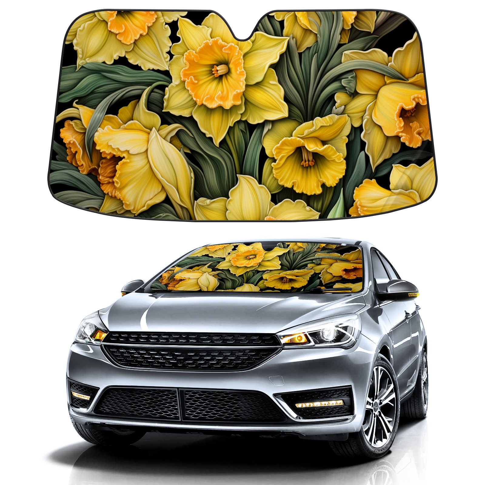 Car Windshield Sun Shade For Front Window Daffodil3 Foldable Vehicle Windshield Car Sun Visor Covers Automotive Window Protector Car Camping Privacy Sun Blocker