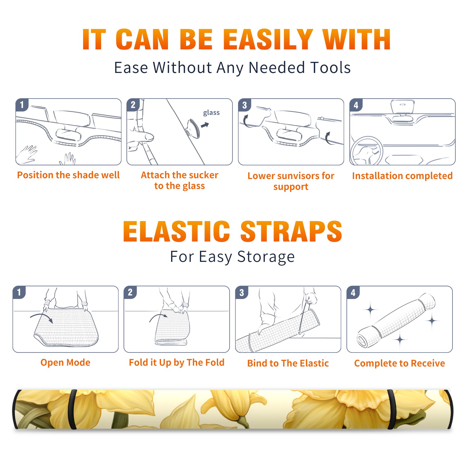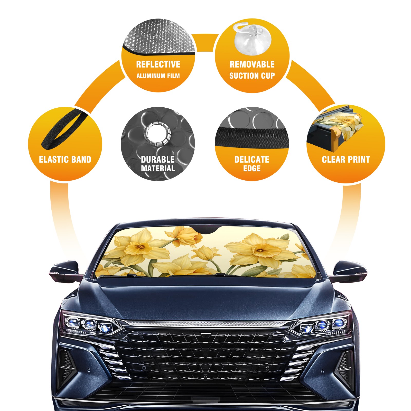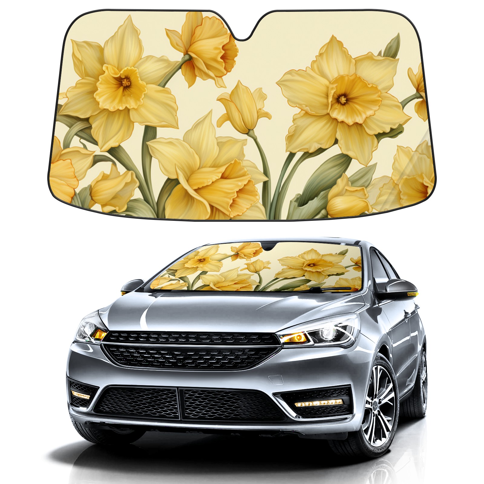 Car Windshield Sun Shade For Front Window Daffodil1 Foldable Vehicle Windshield Car Sun Visor Covers Automotive Window Protector Car Camping Privacy Sun Blocker