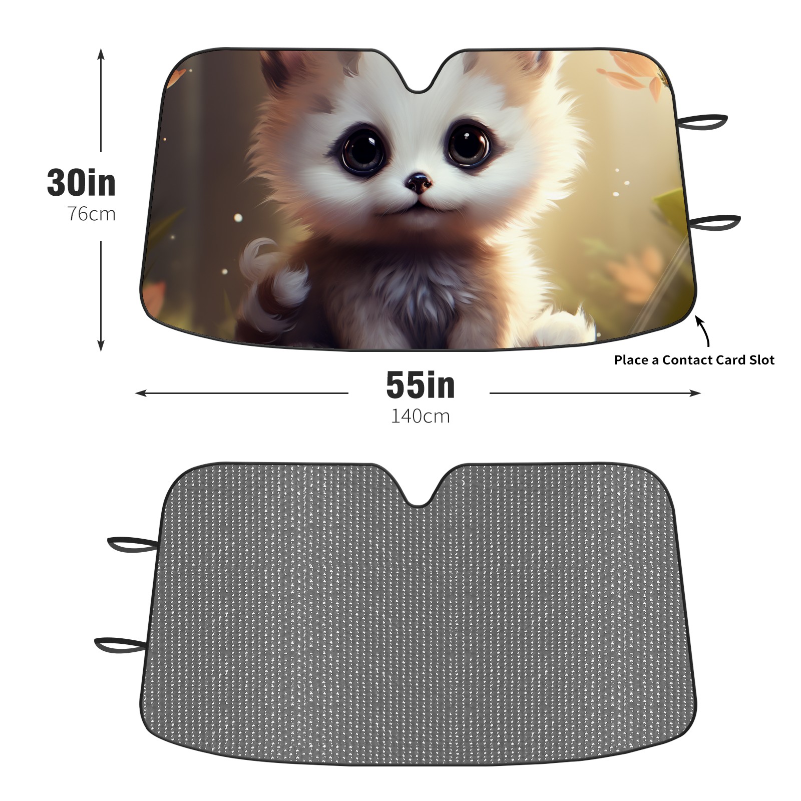 Diameter /Size 63"L x 33.5"W Made from excellent materials which makes it sturdy and protects the car from the sun. Easy to use and pack. Makes the interior of the car cooler.You can easily stash the sunshade in the storage bag or store long term.It open and closes easy. Also the leather storage bag is durable and easy to put the umbrella back into.This windshield sunshade provides complete coverage and keeps your car interior cool under direct sun. It is easy to open and position under the windshield and around the rear-view mirror. Makes Your Car Easy To Identify, Perfect For Finding Your Car In Crowded Parking Lots And Garages.Great Choice: It Is A Great Gift For Dad, Boyfriend, Brother, Brother And Uncle, Friends, Classmates, Family And So On. Notice: Due To Difference Computer Monitors, The Color Maybe Slightly Different From Picture. As Different Measurement Methods, Measurement Data Will Float Within 2%.I Hope You Understand. If You Have Any Question About The Item Please Do Not Hesitate To Contact Us Immediately And We Will Give You A Satisfactory Reply Within 24 Hours.