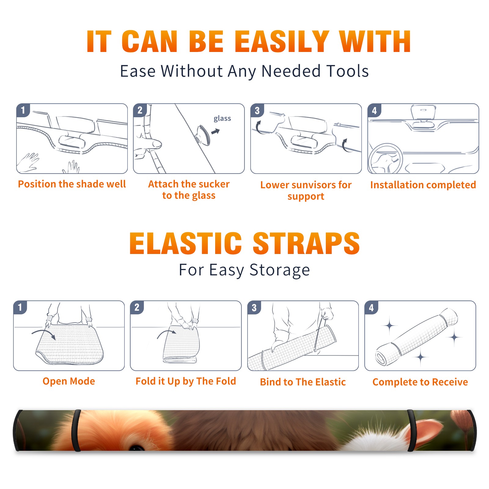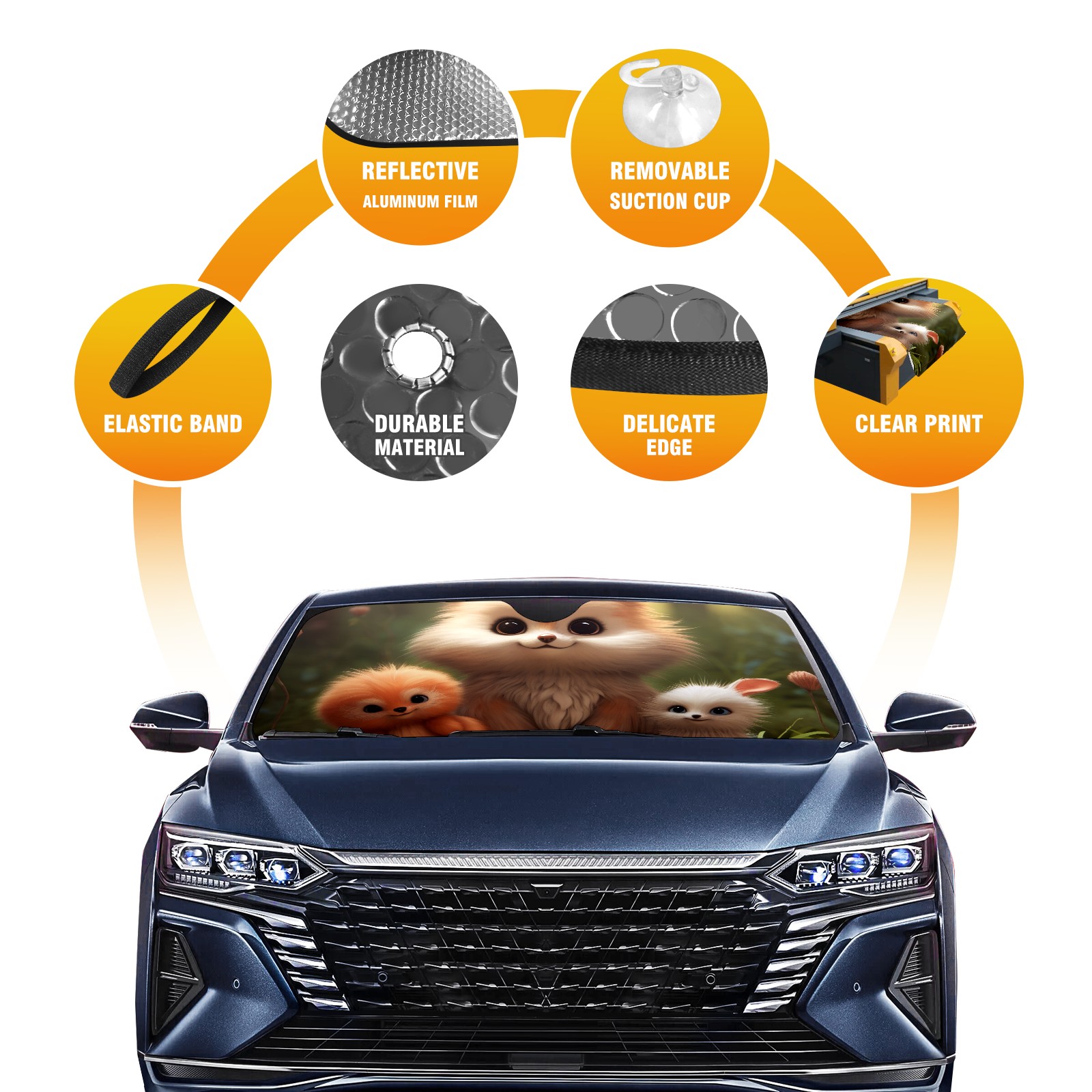 Car Windshield Sun Shade For Front Window Cute Animals3 Foldable Vehicle Windshield Car Sun Visor Covers Automotive Window Protector Car Camping Privacy Sun Blocker