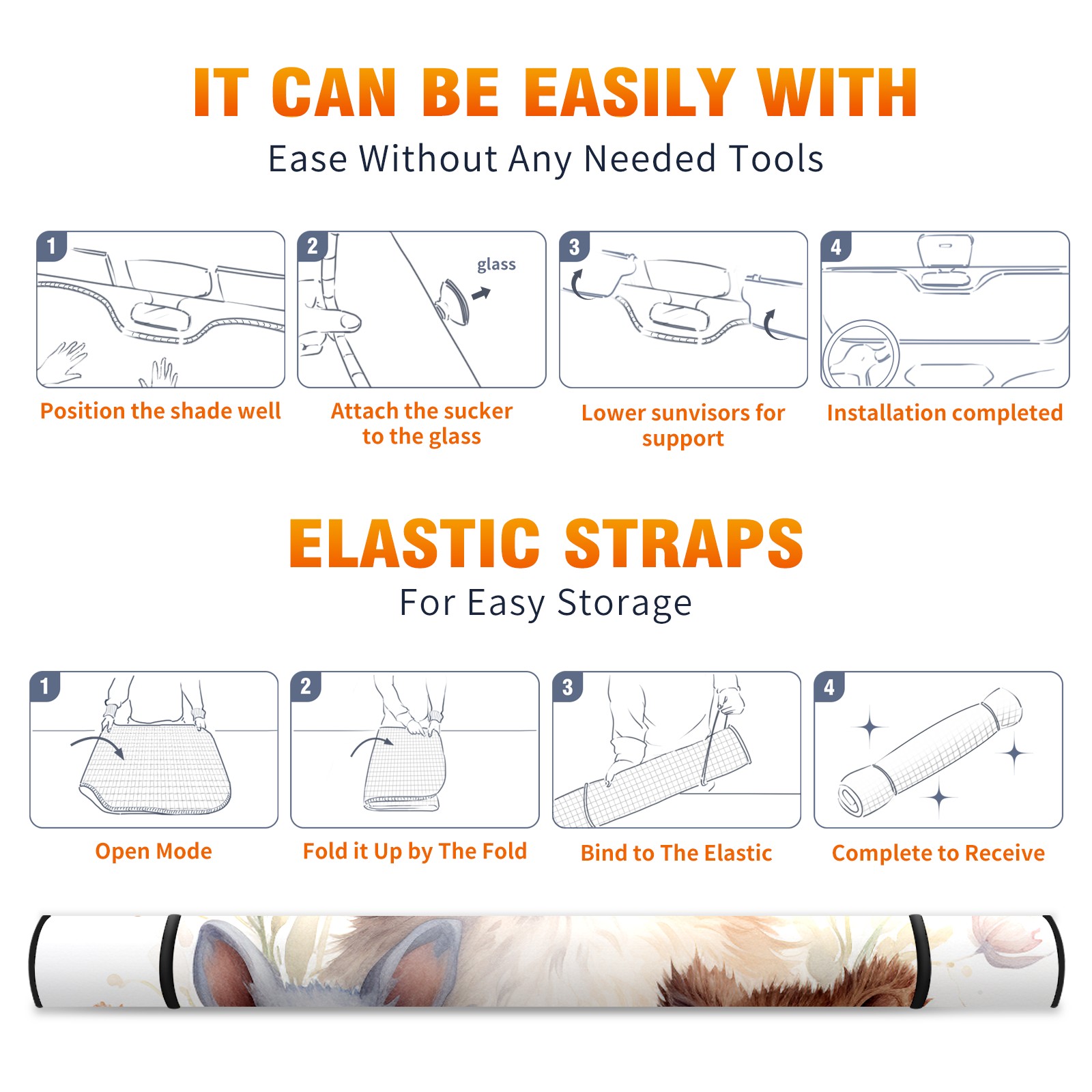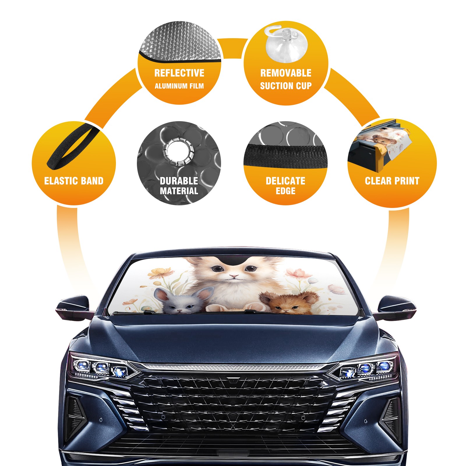 Car Windshield Sun Shade For Front Window Cute Animals1 Foldable Vehicle Windshield Car Sun Visor Covers Automotive Window Protector Car Camping Privacy Sun Blocker