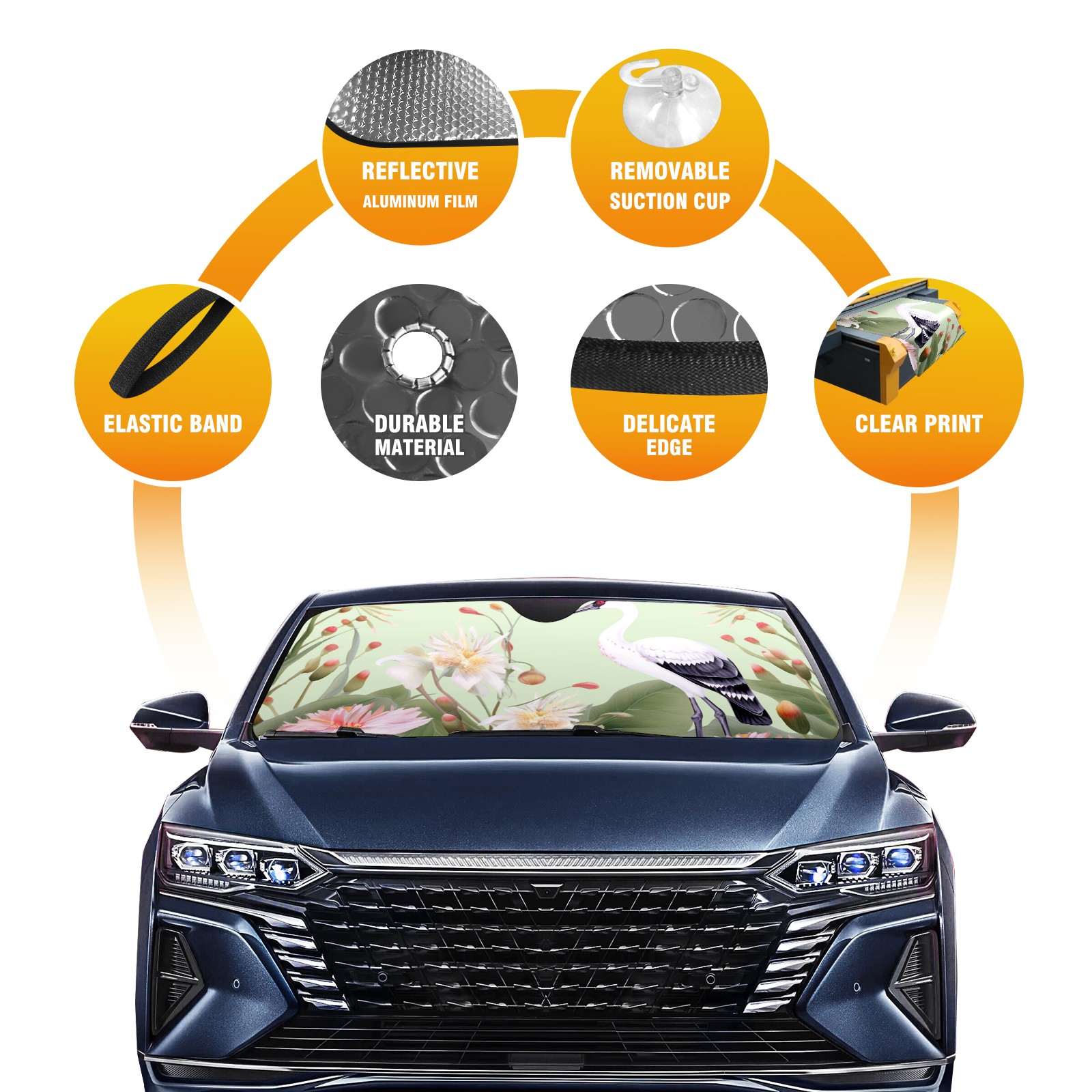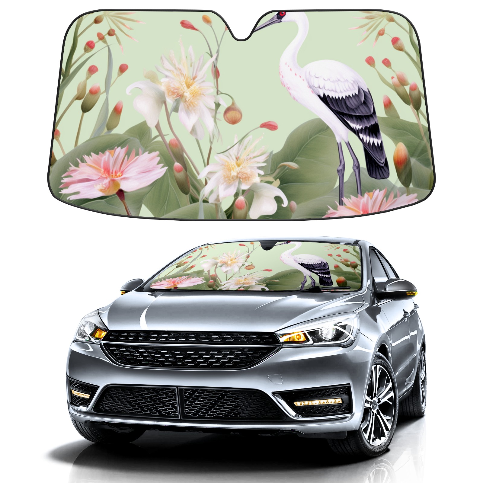 Car Windshield Sun Shade For Front Window Cranes 2 Foldable Vehicle Windshield Car Sun Visor Covers Automotive Window Protector Car Camping Privacy Sun Blocker
