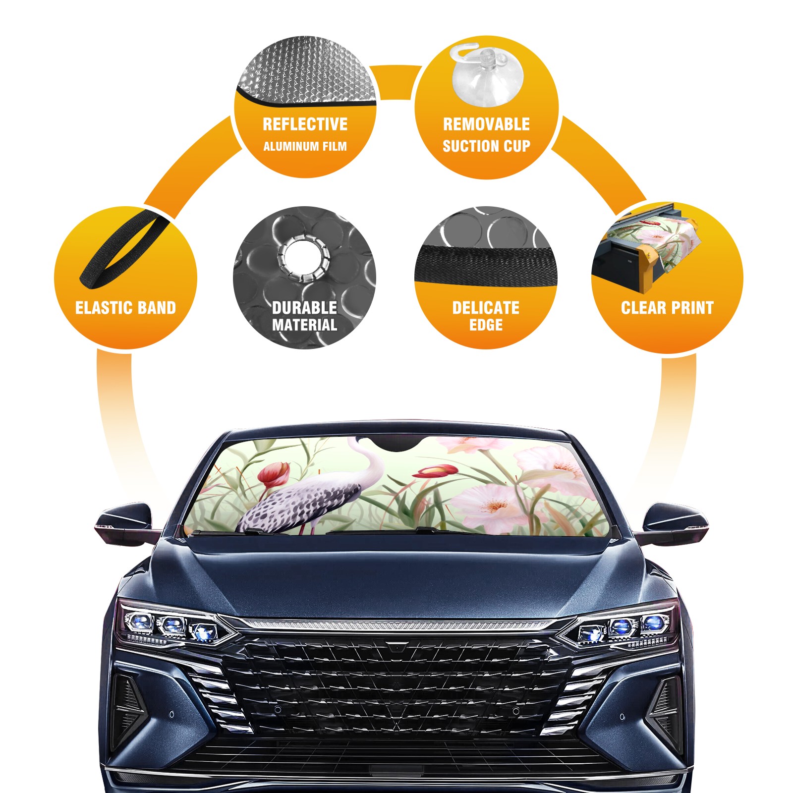 Car Windshield Sun Shade For Front Window Cranes 1 Foldable Vehicle Windshield Car Sun Visor Covers Automotive Window Protector Car Camping Privacy Sun Blocker