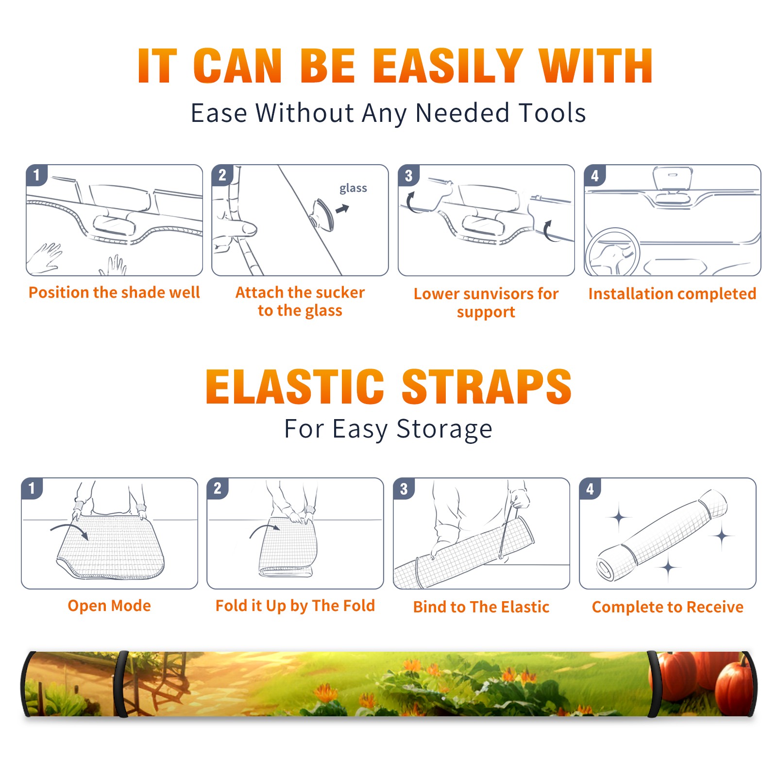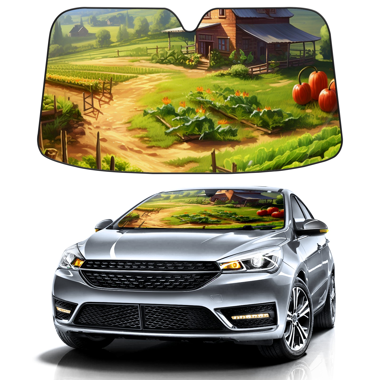 Car Windshield Sun Shade For Front Window Countryside2 Foldable Vehicle Windshield Car Sun Visor Covers Automotive Window Protector Car Camping Privacy Sun Blocker