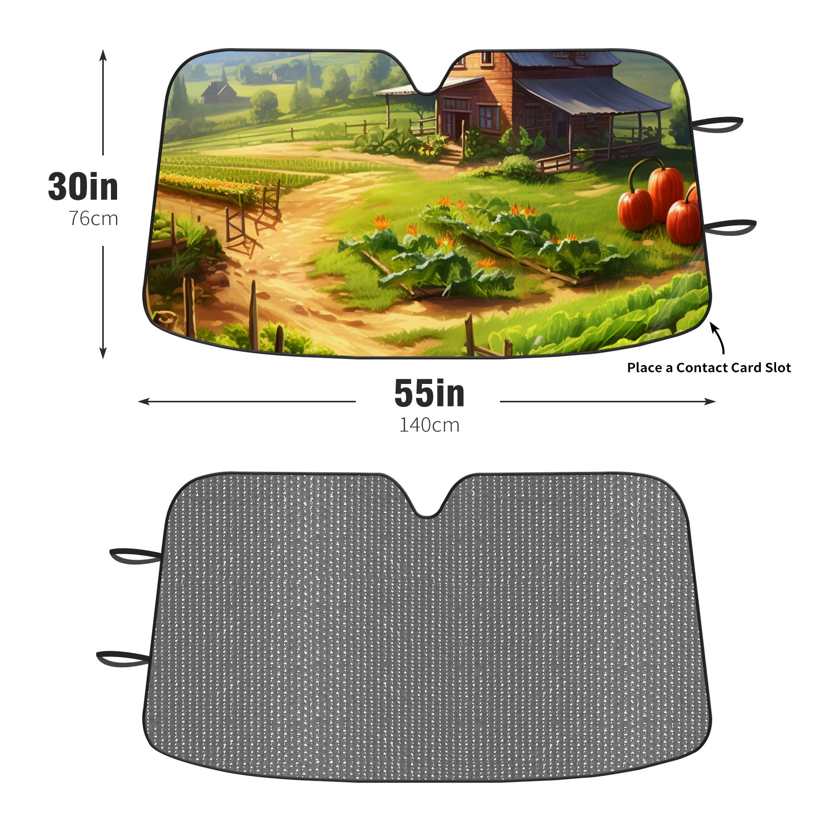 Diameter /Size 63"L x 33.5"W Made from excellent materials which makes it sturdy and protects the car from the sun. Easy to use and pack. Makes the interior of the car cooler.You can easily stash the sunshade in the storage bag or store long term.It open and closes easy. Also the leather storage bag is durable and easy to put the umbrella back into.This windshield sunshade provides complete coverage and keeps your car interior cool under direct sun. It is easy to open and position under the windshield and around the rear-view mirror. Makes Your Car Easy To Identify, Perfect For Finding Your Car In Crowded Parking Lots And Garages.Great Choice: It Is A Great Gift For Dad, Boyfriend, Brother, Brother And Uncle, Friends, Classmates, Family And So On. Notice: Due To Difference Computer Monitors, The Color Maybe Slightly Different From Picture. As Different Measurement Methods, Measurement Data Will Float Within 2%.I Hope You Understand. If You Have Any Question About The Item Please Do Not Hesitate To Contact Us Immediately And We Will Give You A Satisfactory Reply Within 24 Hours.