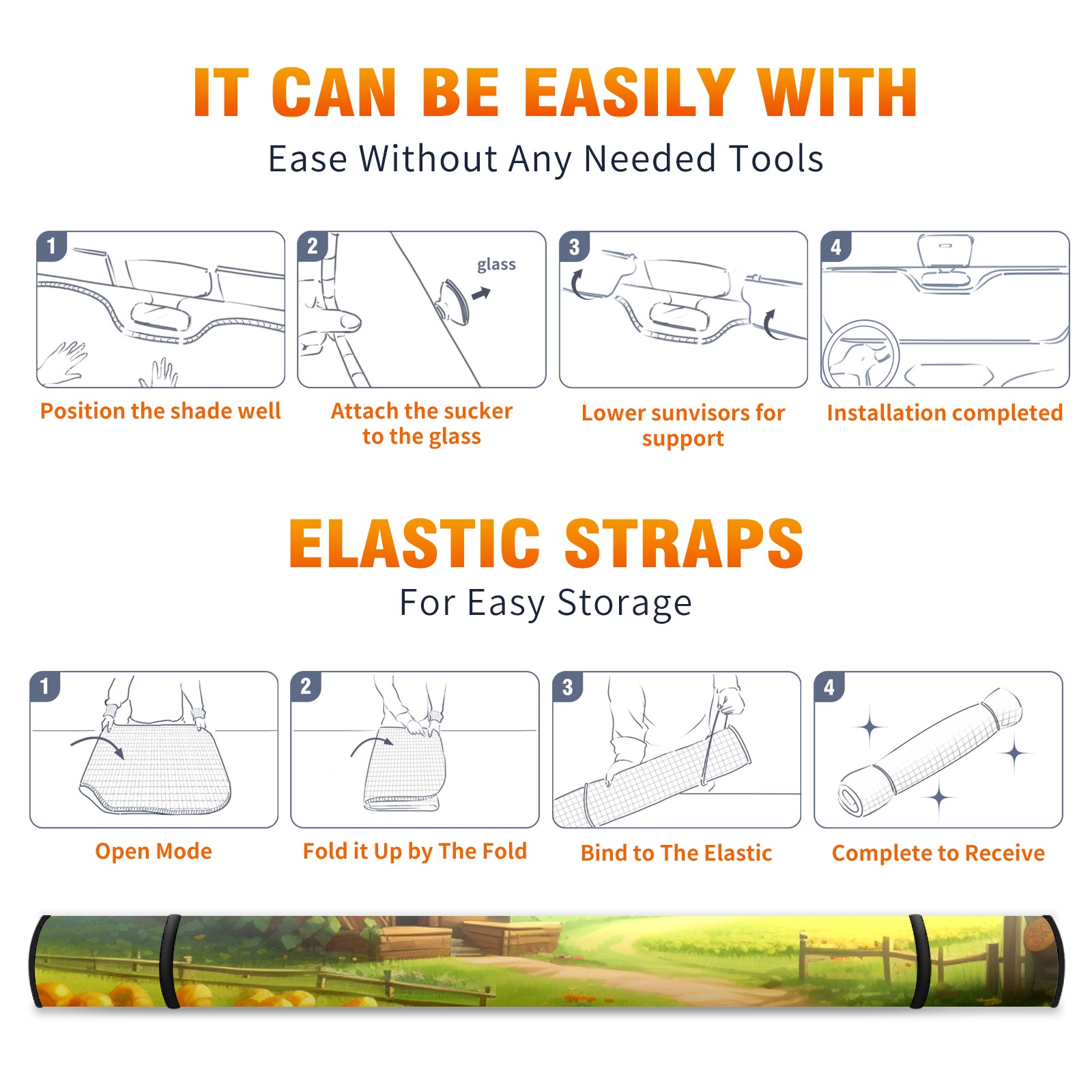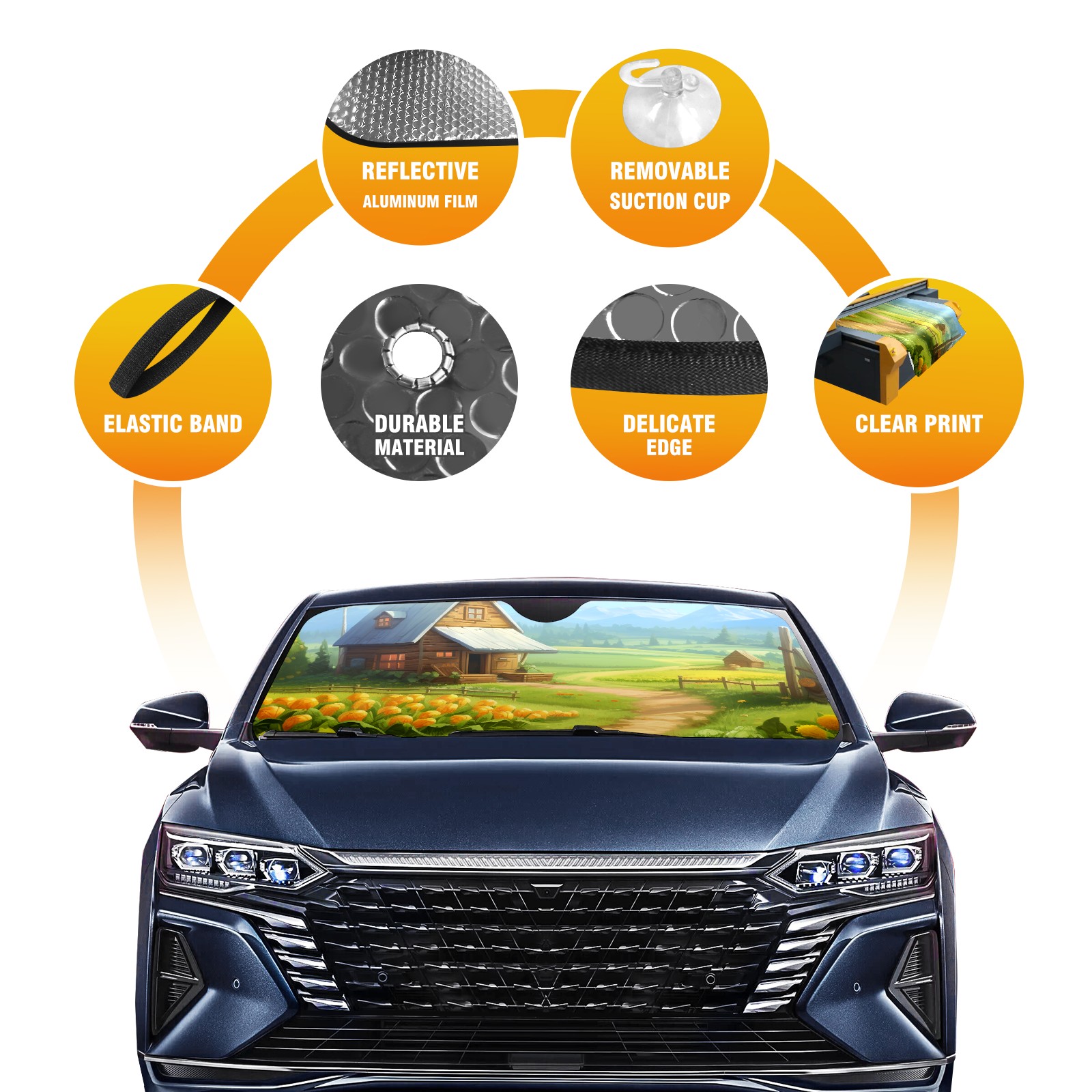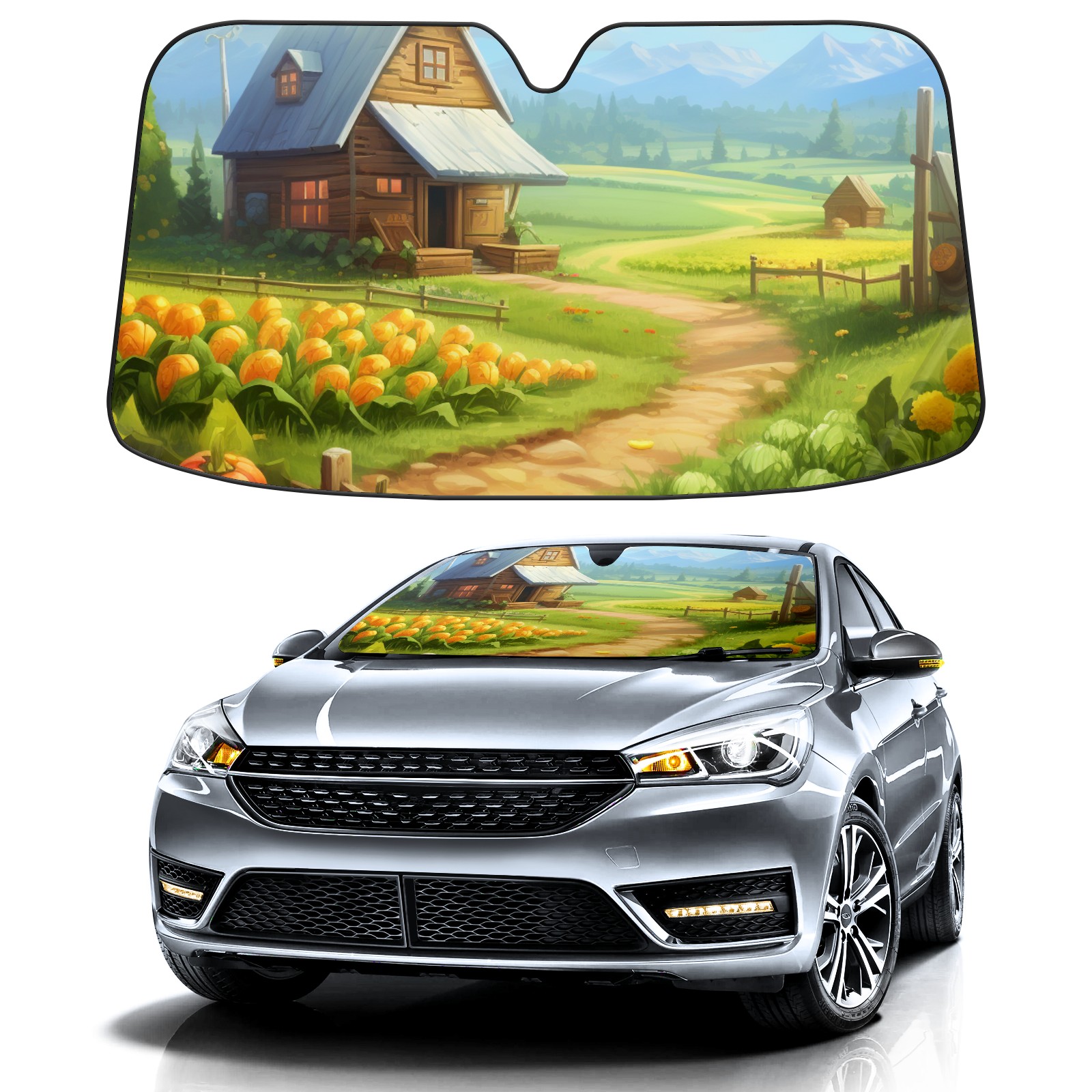 Car Windshield Sun Shade For Front Window Countryside3 Foldable Vehicle Windshield Car Sun Visor Covers Automotive Window Protector Car Camping Privacy Sun Blocker
