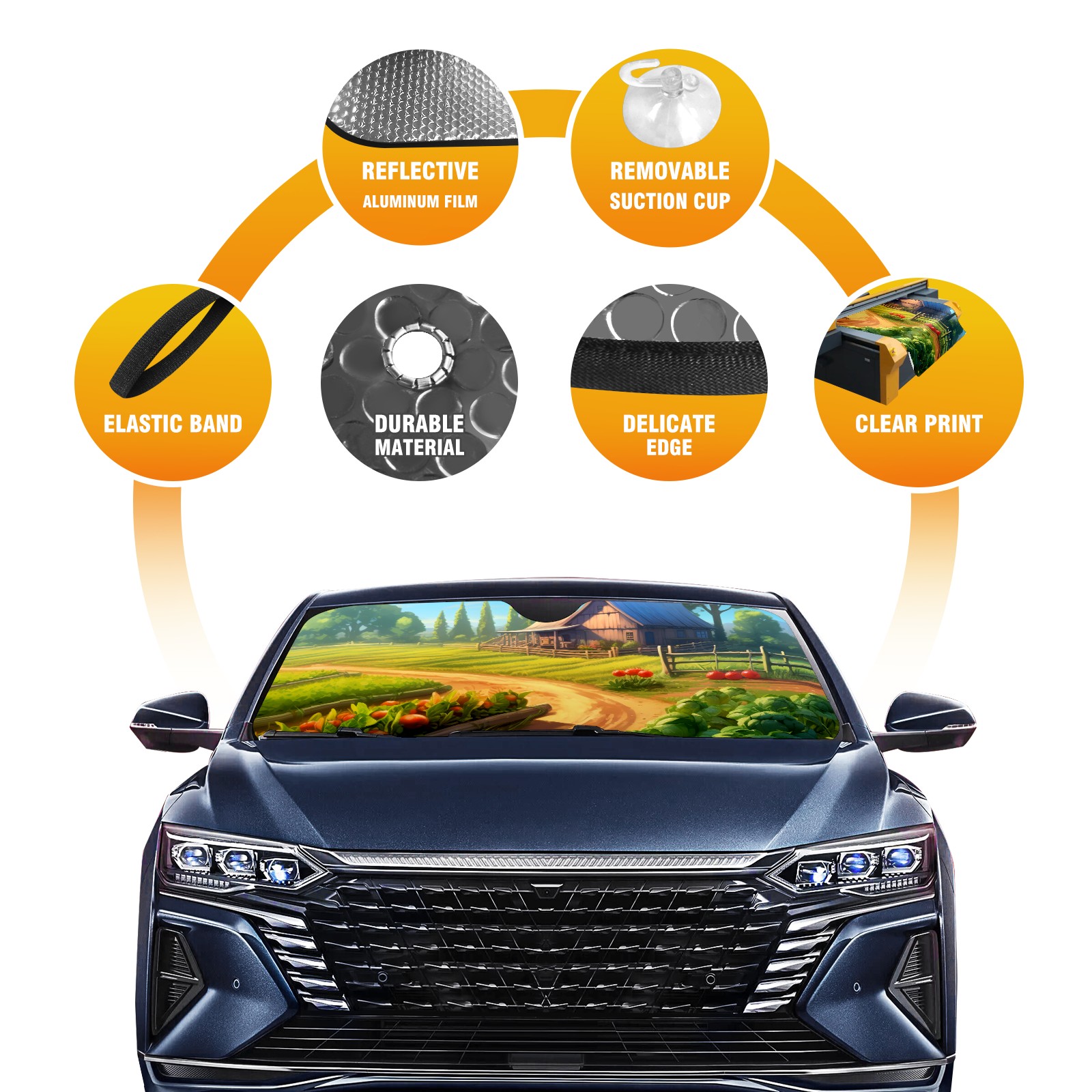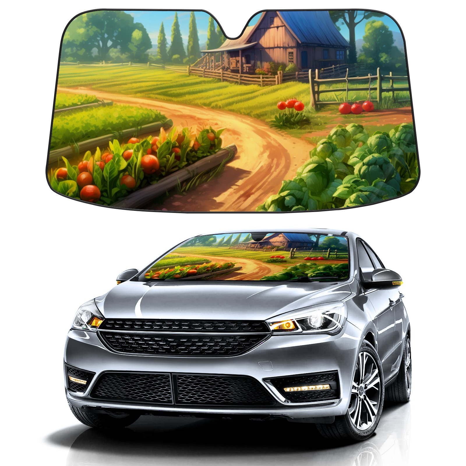 Car Windshield Sun Shade For Front Window Countryside Foldable Vehicle Windshield Car Sun Visor Covers Automotive Window Protector Car Camping Privacy Sun Blocker