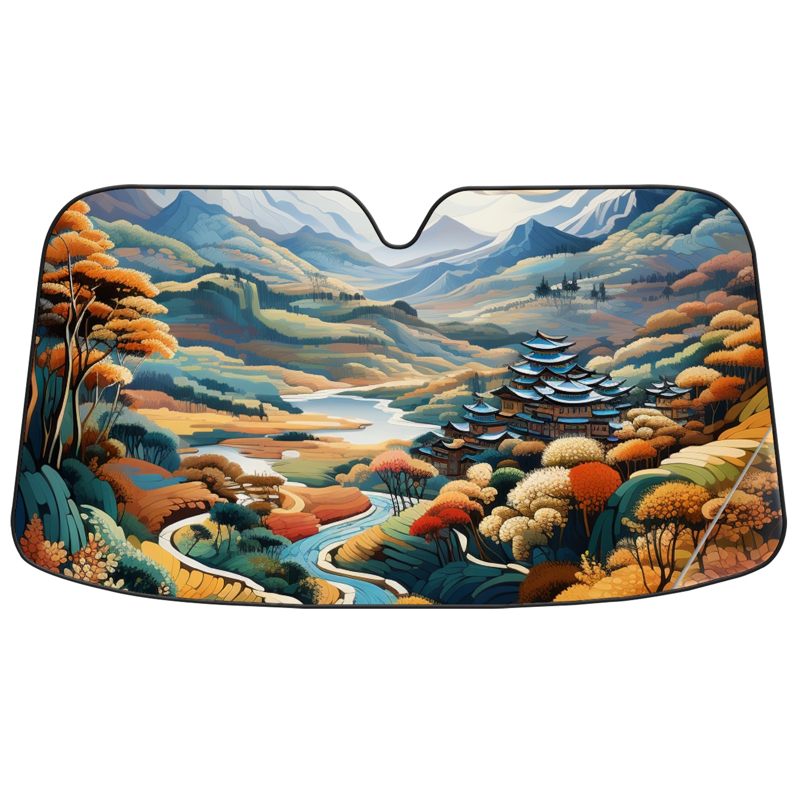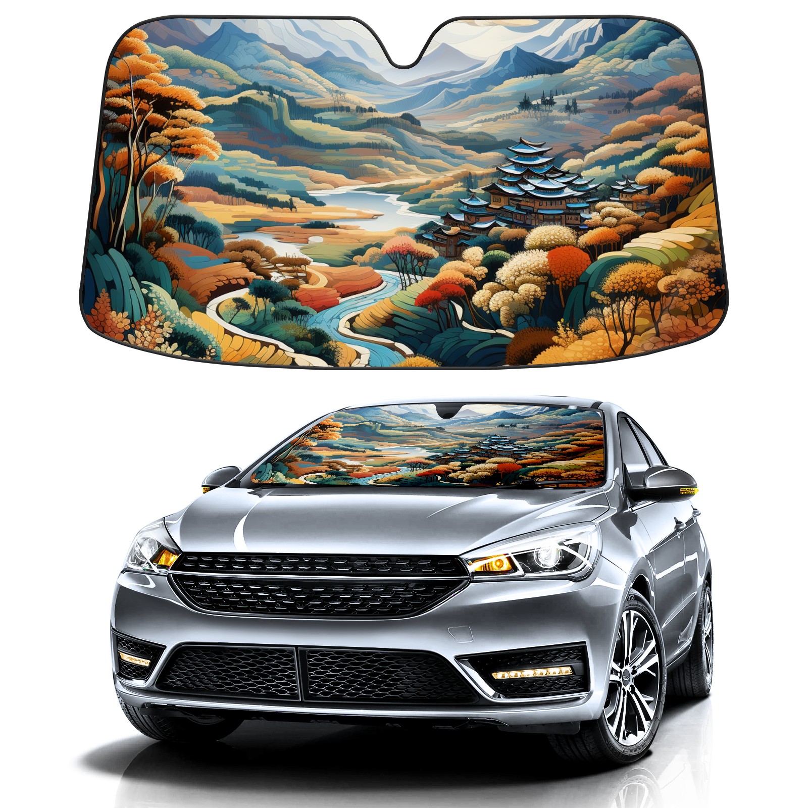 Car Windshield Sun Shade For Front Window Colorful Ink Painting3 Foldable Vehicle Windshield Car Sun Visor Covers Automotive Window Protector Car Camping Privacy Sun Blocker