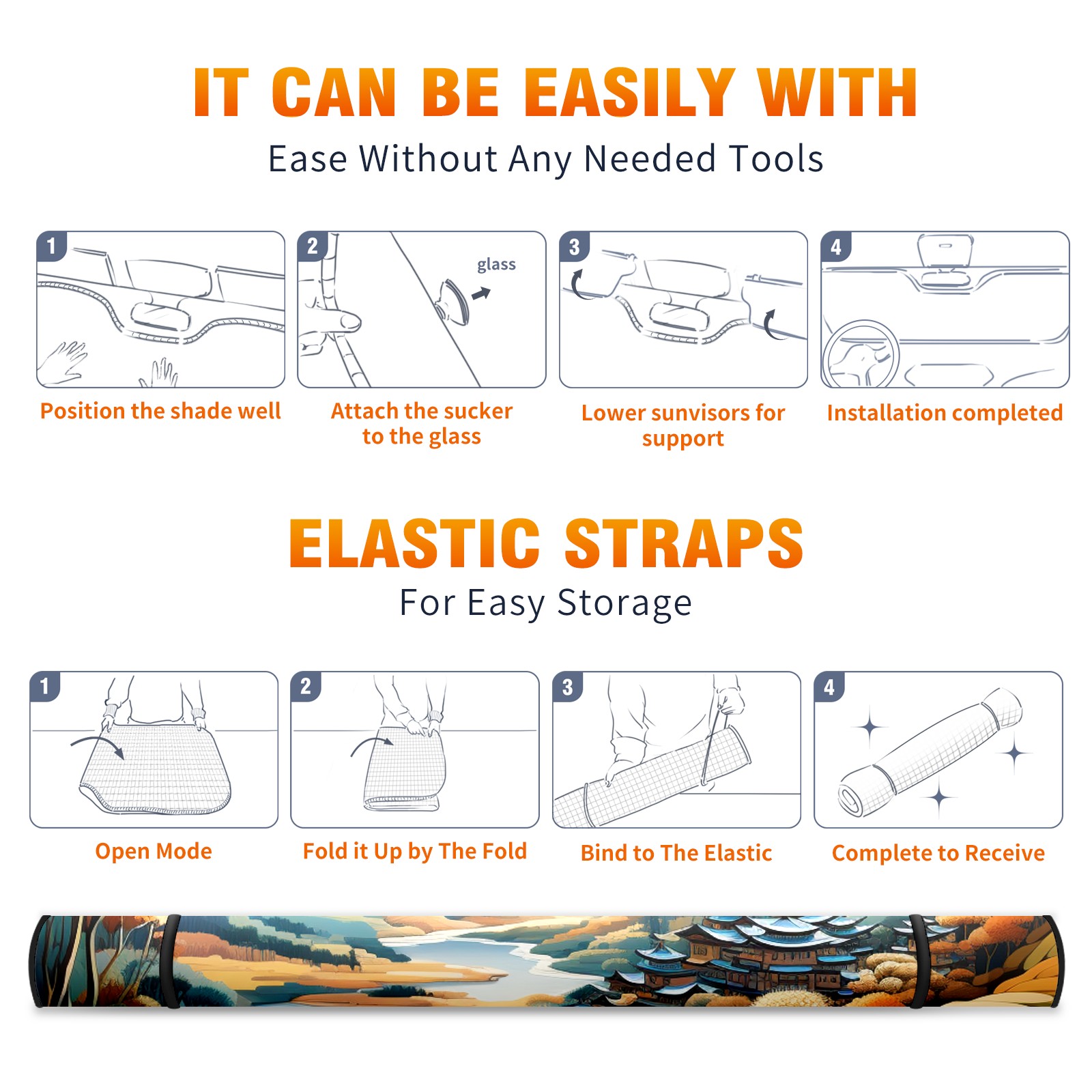 • Diameter /Size 63"L x 33.5"W Made from excellent materials which makes it sturdy and protects the car from the sun. Easy to use and pack. Makes the interior of the car cooler.You can easily stash the sunshade in the storage bag or store long term.It open and closes easy. Also the leather storage bag is durable and easy to put the umbrella back into.This windshield sunshade provides complete coverage and keeps your car interior cool under direct sun. It is easy to open and position under the windshield and around the rear-view mirror. Makes Your Car Easy To Identify, Perfect For Finding Your Car In Crowded Parking Lots And Garages.Great Choice: It Is A Great Gift For Dad, Boyfriend, Brother, Brother And Uncle, Friends, Classmates, Family And So On. Notice: Due To Difference Computer Monitors, The Color Maybe Slightly Different From Picture. As Different Measurement Methods, Measurement Data Will Float Within 2%.I Hope You Understand. If You Have Any Question About The Item Please Do Not Hesitate To Contact Us Immediately And We Will Give You A Satisfactory Reply Within 24 Hours.