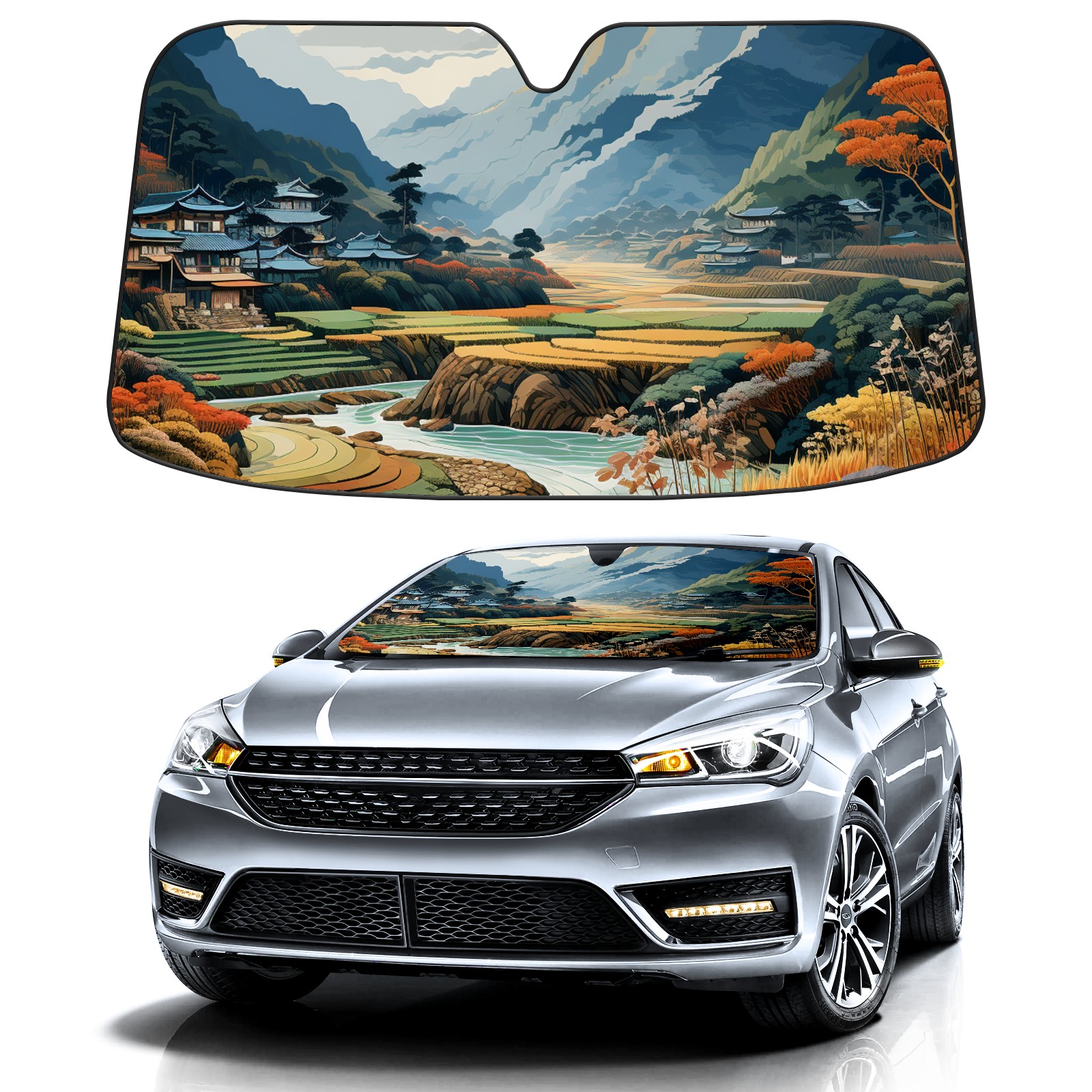 Car Windshield Sun Shade For Front Window Colorful Ink Painting1 Foldable Vehicle Windshield Car Sun Visor Covers Automotive Window Protector Car Camping Privacy Sun Blocker