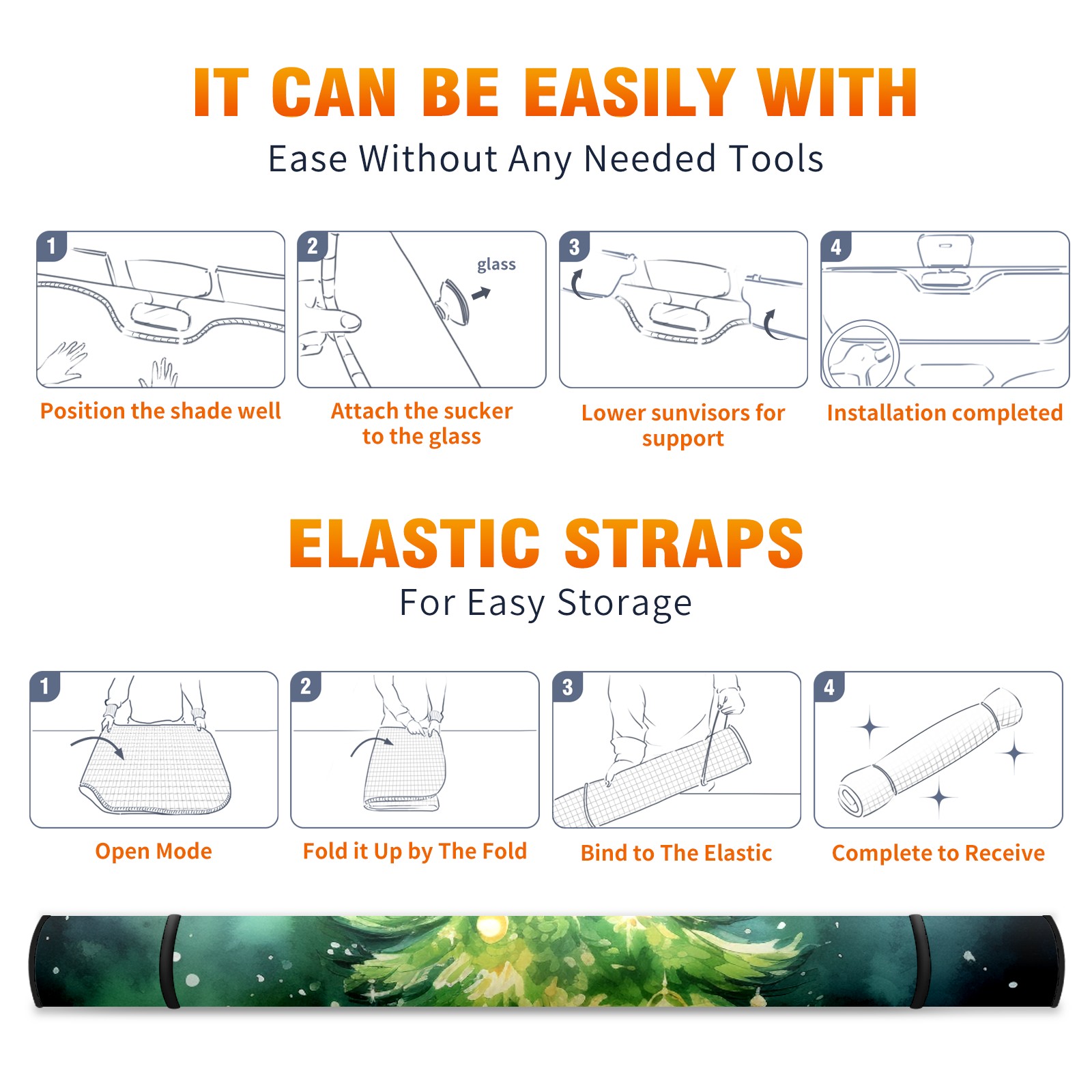 Car Windshield Sun Shade For Front Window Christmast Tree3 Foldable Vehicle Windshield Car Sun Visor Covers Automotive Window Protector Car Camping Privacy Sun Blocker