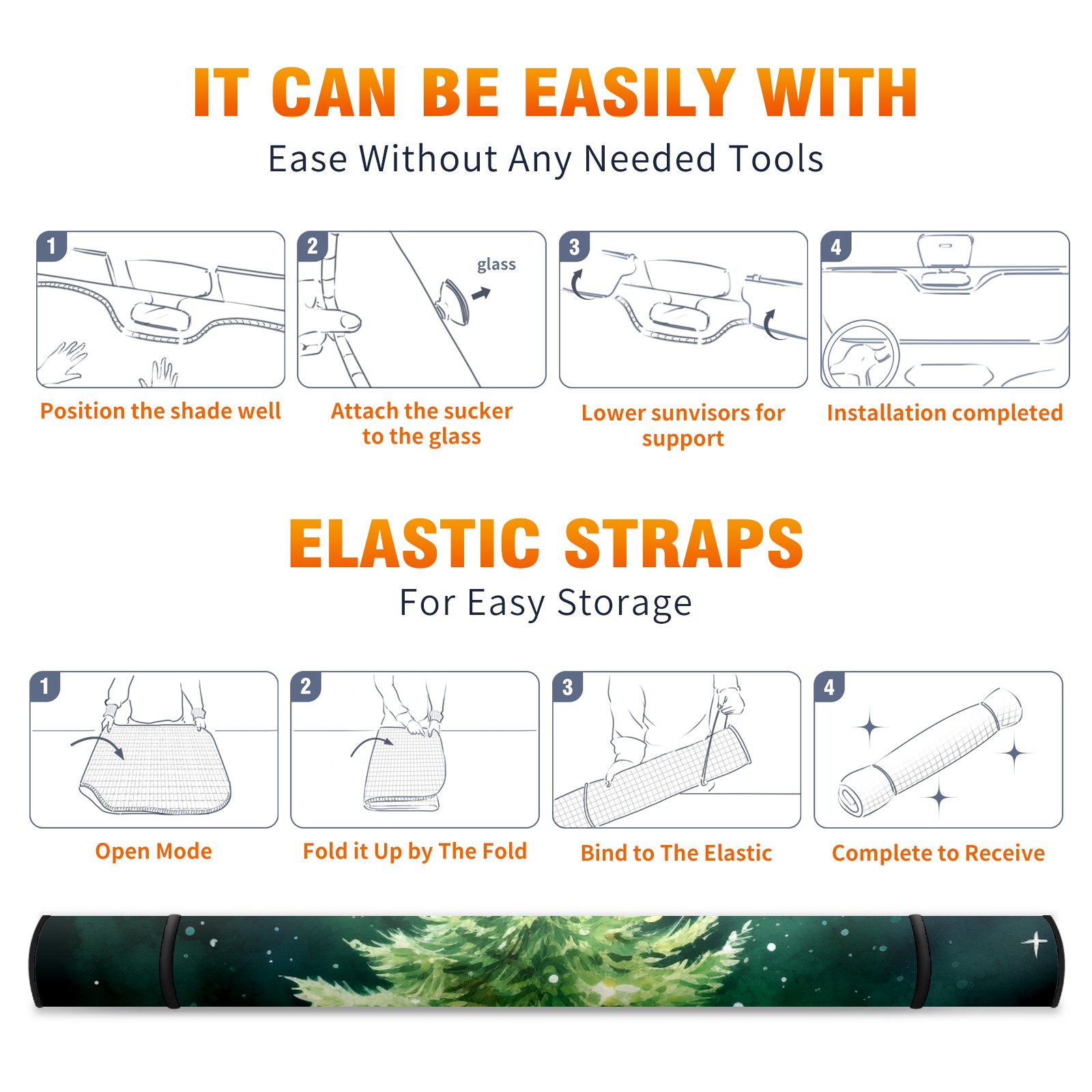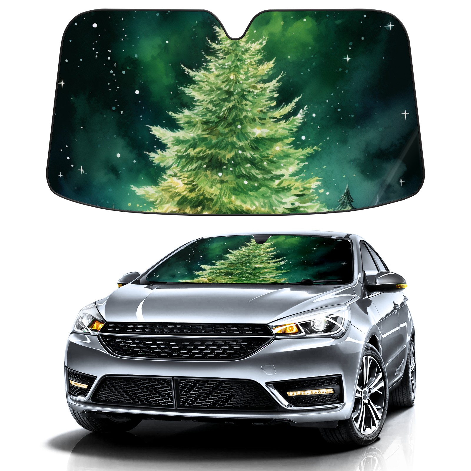 Car Windshield Sun Shade For Front Window Christmast Tree2 Foldable Vehicle Windshield Car Sun Visor Covers Automotive Window Protector Car Camping Privacy Sun Blocker