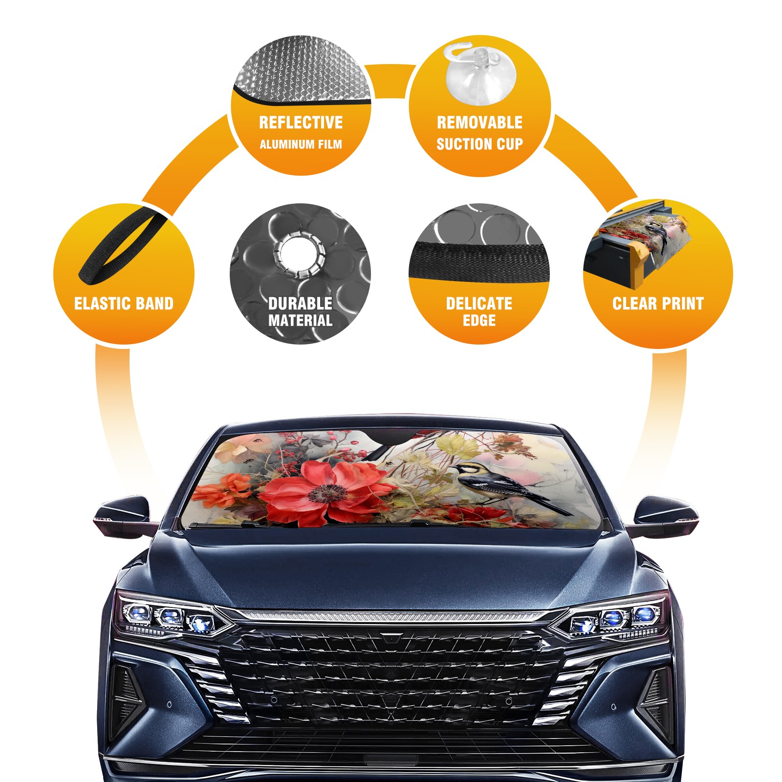 Car Windshield Sun Shade For Front Window Birds6 Foldable Vehicle Windshield Car Sun Visor Covers Automotive Window Protector Car Camping Privacy Sun Blocker