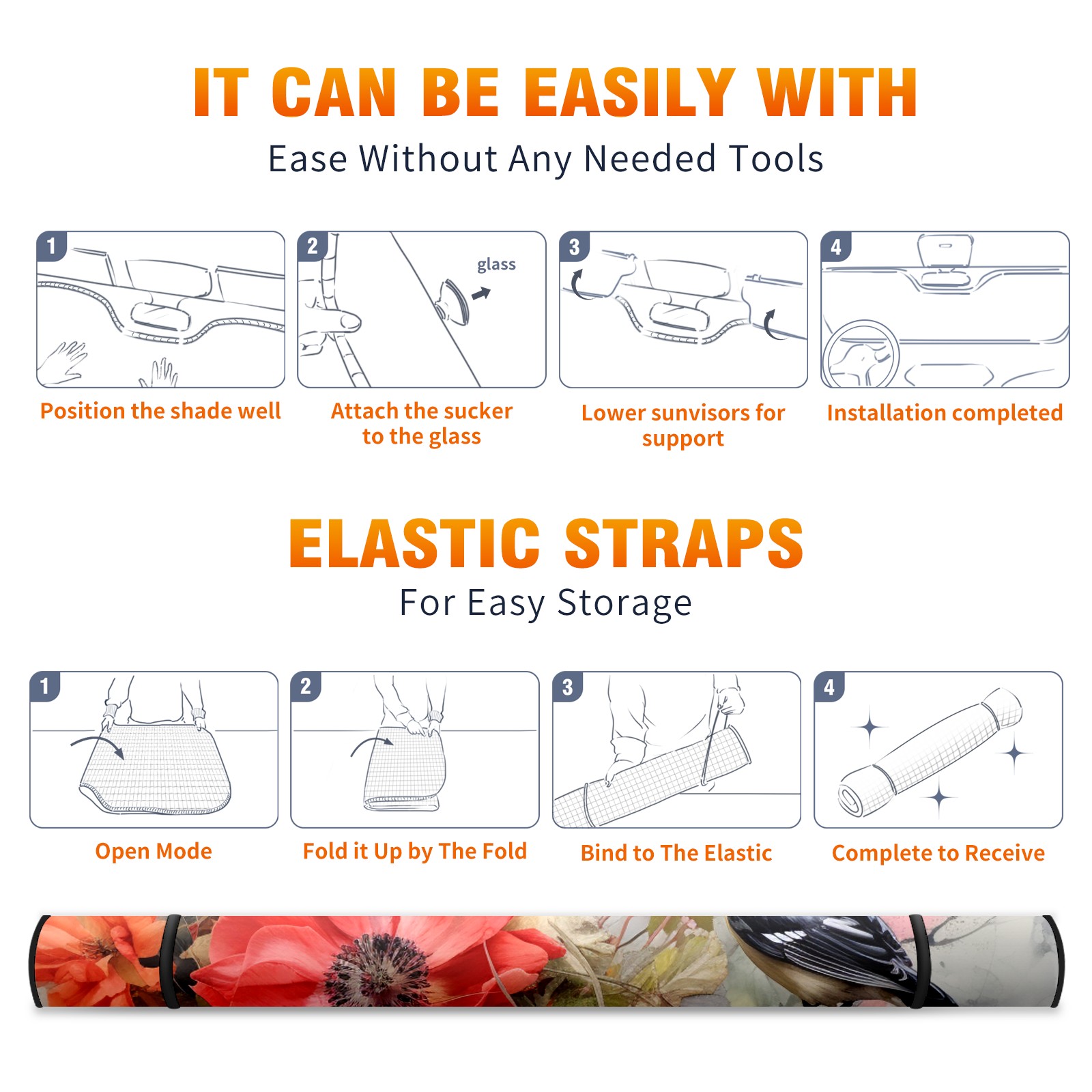 • Diameter /Size 63"L x 33.5"W Made from excellent materials which makes it sturdy and protects the car from the sun. Easy to use and pack. Makes the interior of the car cooler.You can easily stash the sunshade in the storage bag or store long term.It open and closes easy. Also the leather storage bag is durable and easy to put the umbrella back into.This windshield sunshade provides complete coverage and keeps your car interior cool under direct sun. It is easy to open and position under the windshield and around the rear-view mirror. Makes Your Car Easy To Identify, Perfect For Finding Your Car In Crowded Parking Lots And Garages.Great Choice: It Is A Great Gift For Dad, Boyfriend, Brother, Brother And Uncle, Friends, Classmates, Family And So On. Notice: Due To Difference Computer Monitors, The Color Maybe Slightly Different From Picture. As Different Measurement Methods, Measurement Data Will Float Within 2%.I Hope You Understand. If You Have Any Question About The Item Please Do Not Hesitate To Contact Us Immediately And We Will Give You A Satisfactory Reply Within 24 Hours.