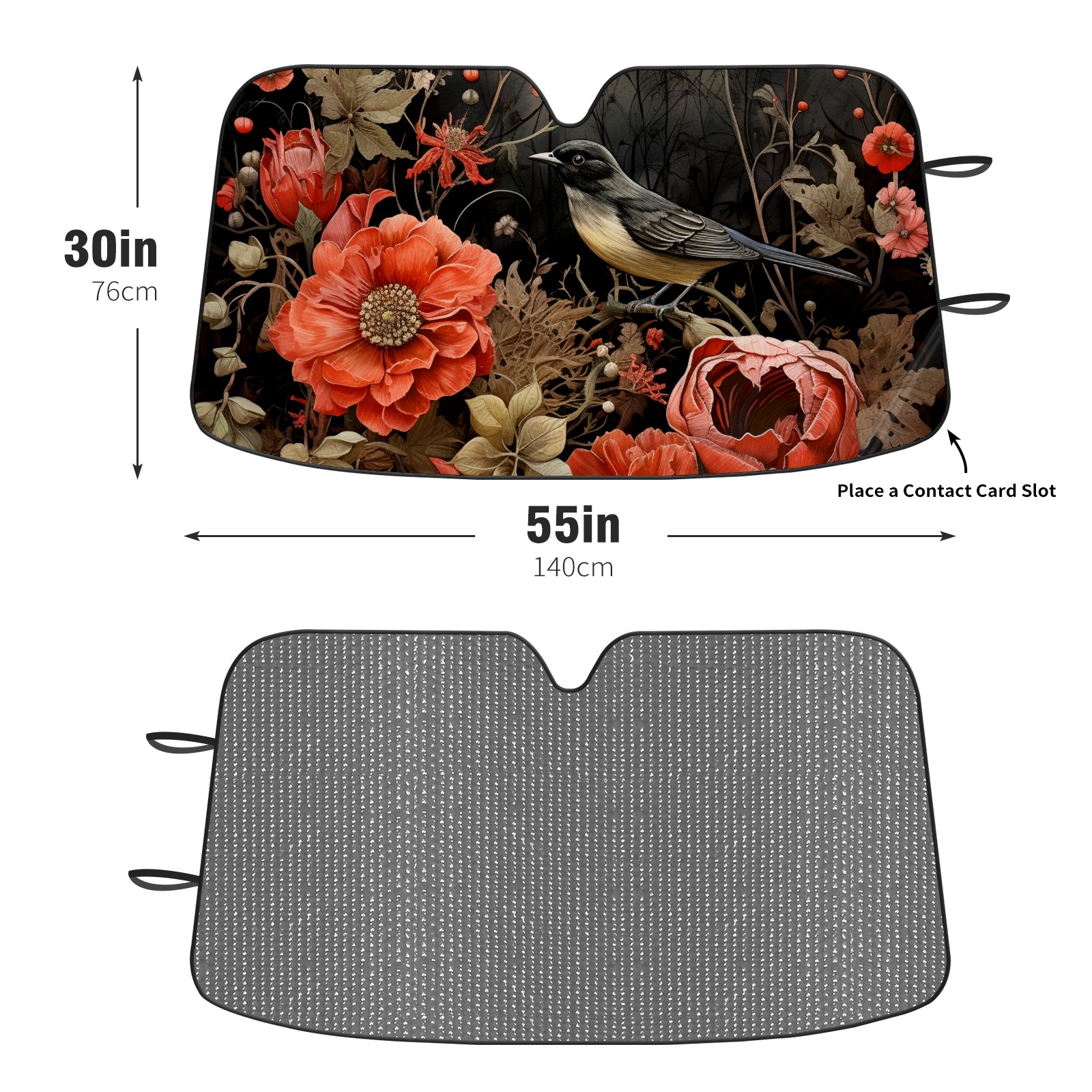 Diameter /Size 63"L x 33.5"W Made from excellent materials which makes it sturdy and protects the car from the sun. Easy to use and pack. Makes the interior of the car cooler.You can easily stash the sunshade in the storage bag or store long term.It open and closes easy. Also the leather storage bag is durable and easy to put the umbrella back into.This windshield sunshade provides complete coverage and keeps your car interior cool under direct sun. It is easy to open and position under the windshield and around the rear-view mirror. Makes Your Car Easy To Identify, Perfect For Finding Your Car In Crowded Parking Lots And Garages.Great Choice: It Is A Great Gift For Dad, Boyfriend, Brother, Brother And Uncle, Friends, Classmates, Family And So On. Notice: Due To Difference Computer Monitors, The Color Maybe Slightly Different From Picture. As Different Measurement Methods, Measurement Data Will Float Within 2%.I Hope You Understand. If You Have Any Question About The Item Please Do Not Hesitate To Contact Us Immediately And We Will Give You A Satisfactory Reply Within 24 Hours.