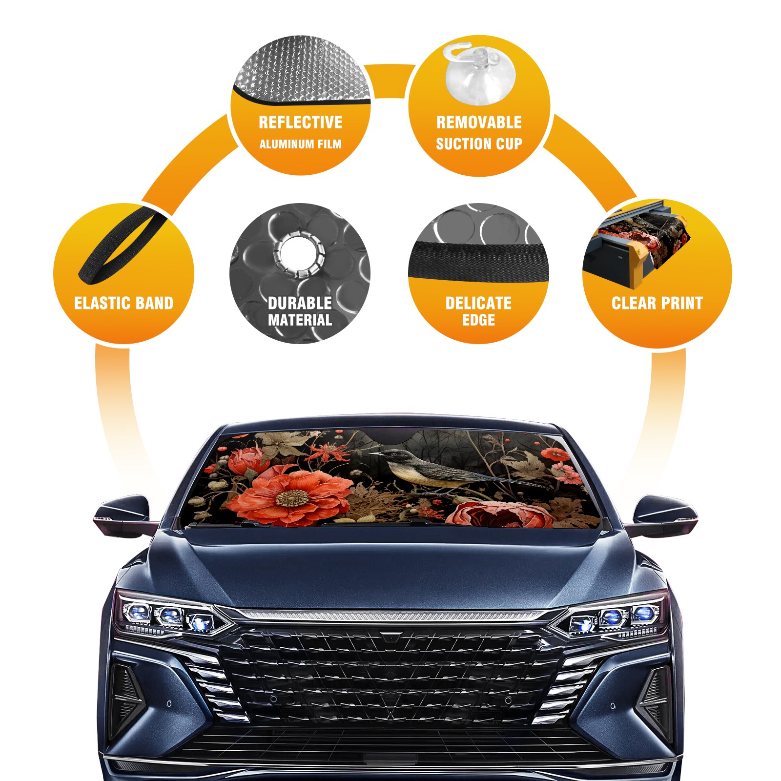 Car Windshield Sun Shade For Front Window Birds5 Foldable Vehicle Windshield Car Sun Visor Covers Automotive Window Protector Car Camping Privacy Sun Blocker