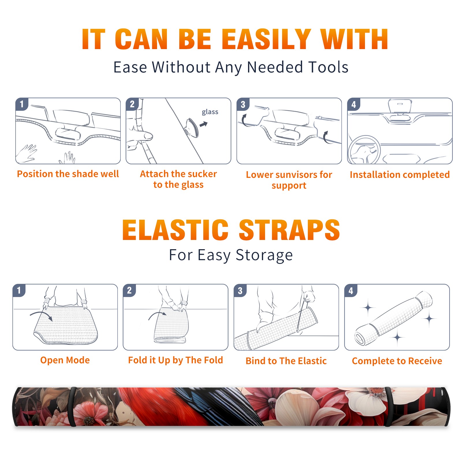 • Diameter /Size 63"L x 33.5"W Made from excellent materials which makes it sturdy and protects the car from the sun. Easy to use and pack. Makes the interior of the car cooler.You can easily stash the sunshade in the storage bag or store long term.It open and closes easy. Also the leather storage bag is durable and easy to put the umbrella back into.This windshield sunshade provides complete coverage and keeps your car interior cool under direct sun. It is easy to open and position under the windshield and around the rear-view mirror. Makes Your Car Easy To Identify, Perfect For Finding Your Car In Crowded Parking Lots And Garages.Great Choice: It Is A Great Gift For Dad, Boyfriend, Brother, Brother And Uncle, Friends, Classmates, Family And So On. Notice: Due To Difference Computer Monitors, The Color Maybe Slightly Different From Picture. As Different Measurement Methods, Measurement Data Will Float Within 2%.I Hope You Understand. If You Have Any Question About The Item Please Do Not Hesitate To Contact Us Immediately And We Will Give You A Satisfactory Reply Within 24 Hours.