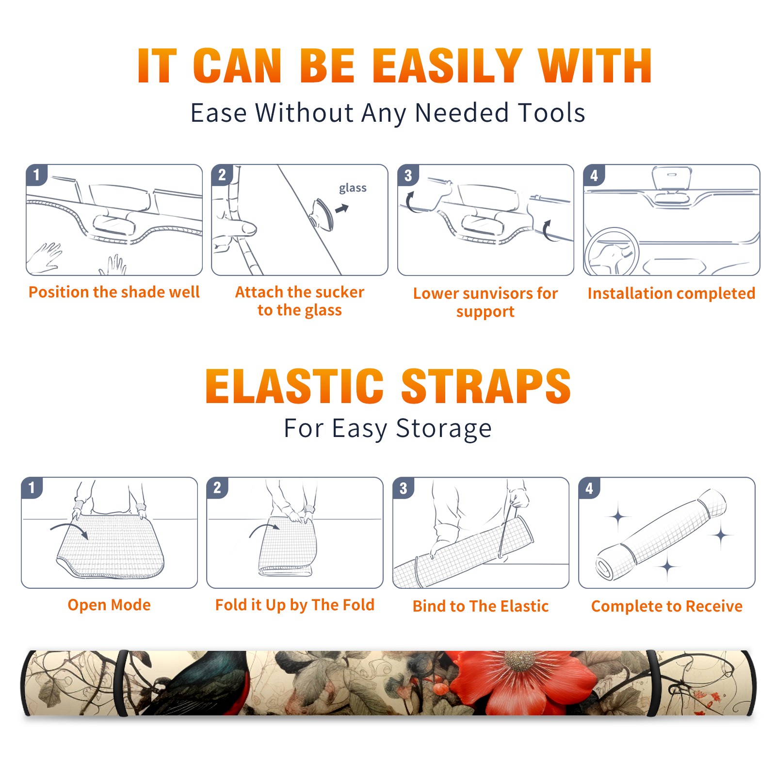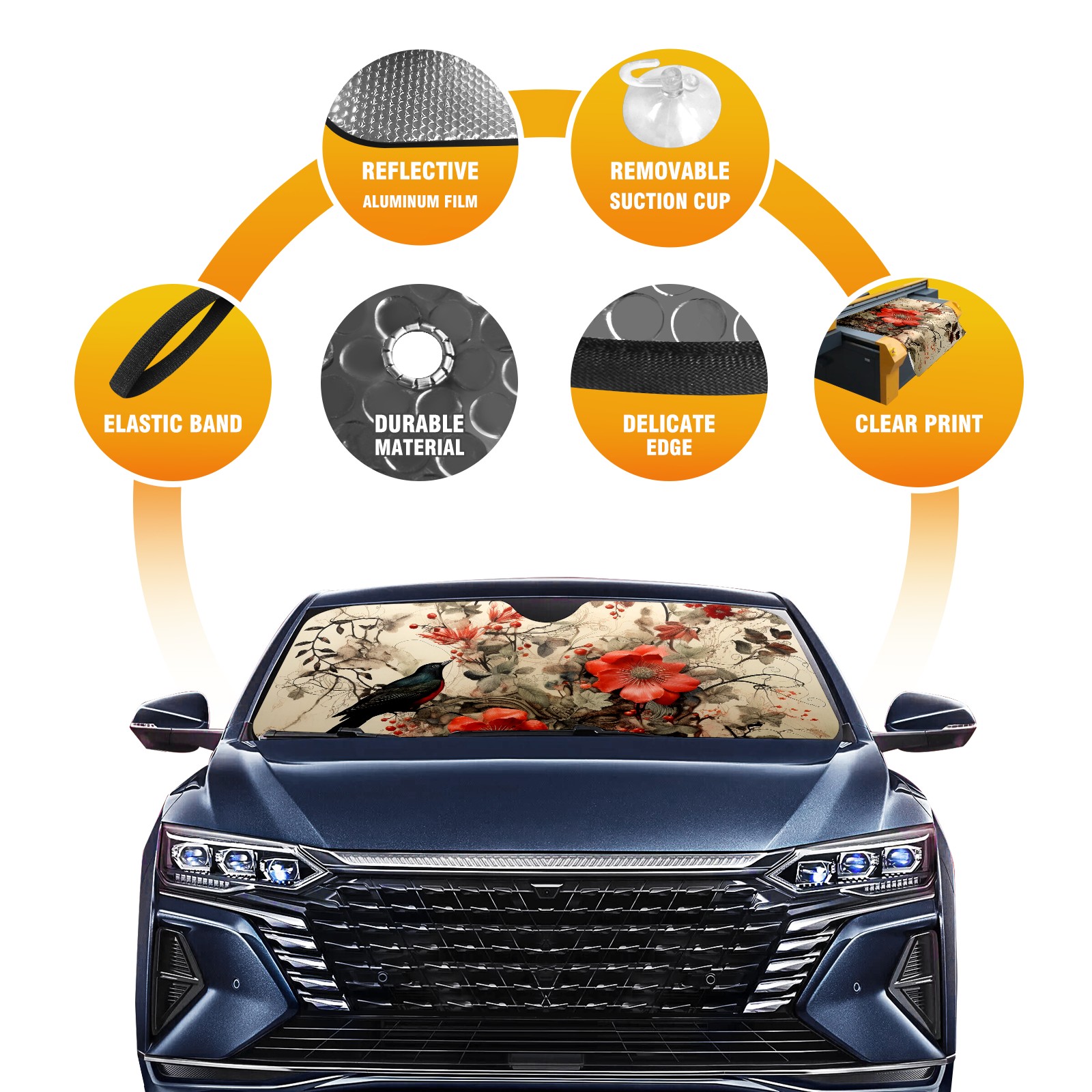 Car Windshield Sun Shade For Front Window Birds Foldable Vehicle Windshield Car Sun Visor Covers Automotive Window Protector Car Camping Privacy Sun Blocker