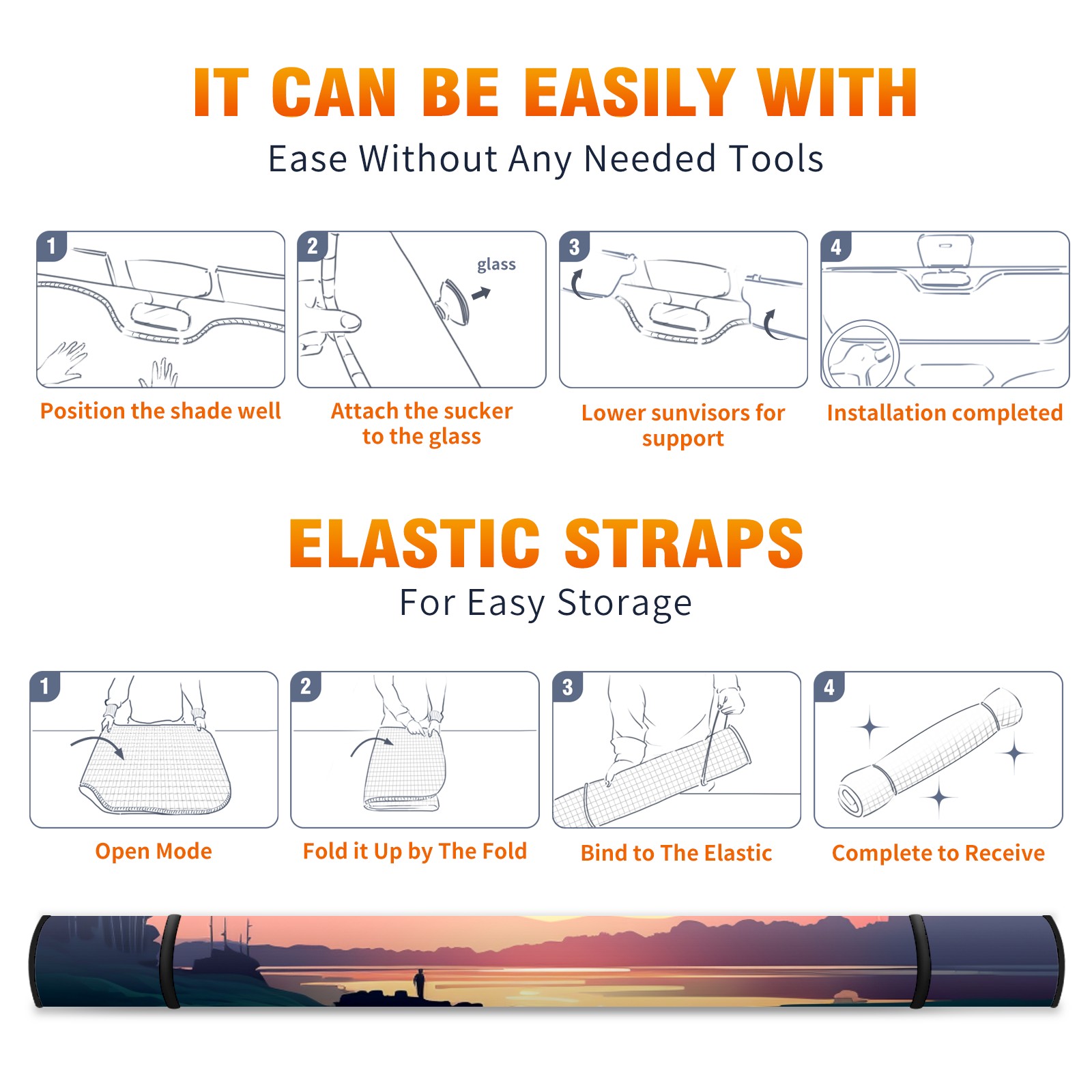 • Diameter /Size 63"L x 33.5"W Made from excellent materials which makes it sturdy and protects the car from the sun. Easy to use and pack. Makes the interior of the car cooler.You can easily stash the sunshade in the storage bag or store long term.It open and closes easy. Also the leather storage bag is durable and easy to put the umbrella back into.This windshield sunshade provides complete coverage and keeps your car interior cool under direct sun. It is easy to open and position under the windshield and around the rear-view mirror. Makes Your Car Easy To Identify, Perfect For Finding Your Car In Crowded Parking Lots And Garages.Great Choice: It Is A Great Gift For Dad, Boyfriend, Brother, Brother And Uncle, Friends, Classmates, Family And So On. Notice: Due To Difference Computer Monitors, The Color Maybe Slightly Different From Picture. As Different Measurement Methods, Measurement Data Will Float Within 2%.I Hope You Understand. If You Have Any Question About The Item Please Do Not Hesitate To Contact Us Immediately And We Will Give You A Satisfactory Reply Within 24 Hours.