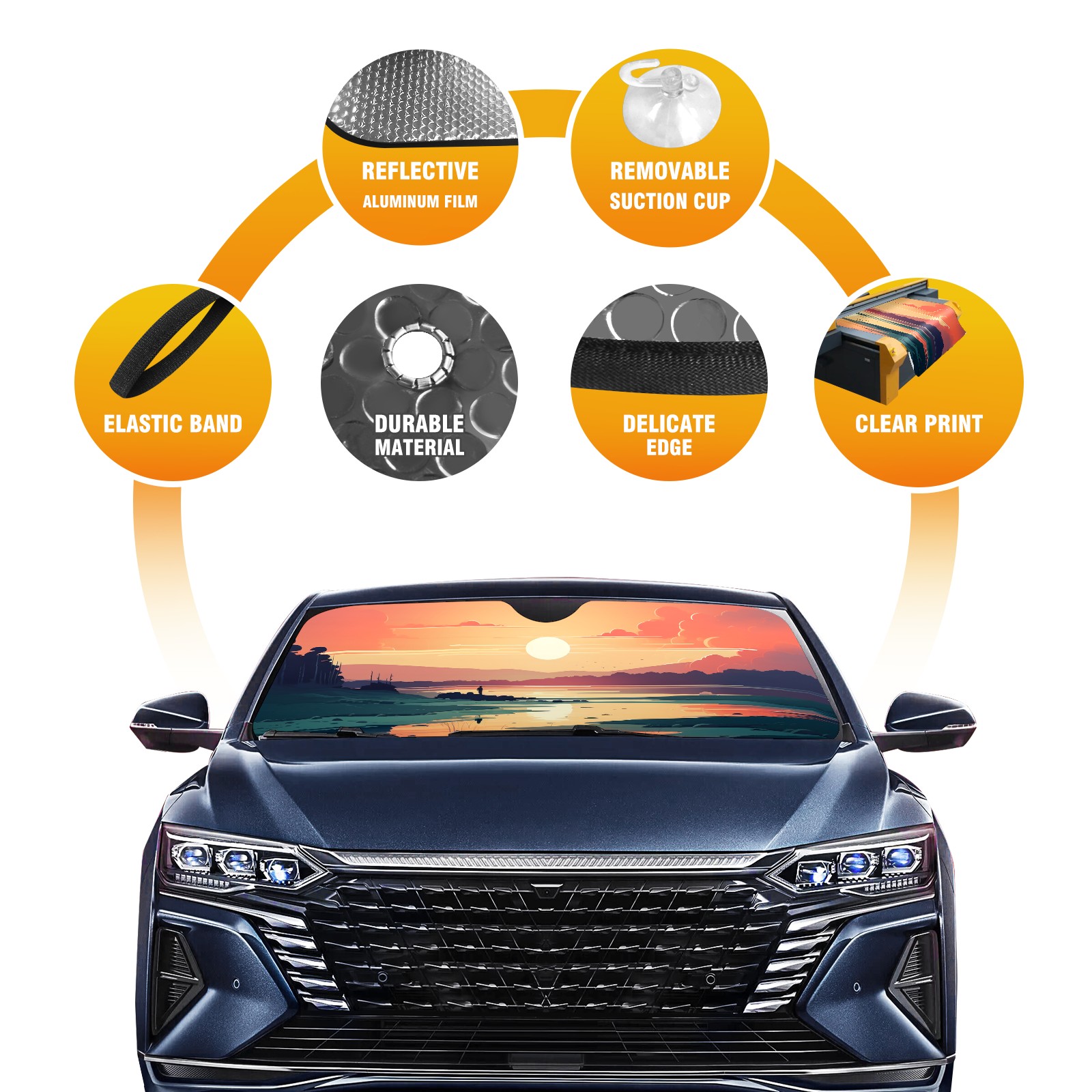 Car Windshield Sun Shade For Front Window Beach1 Foldable Vehicle Windshield Car Sun Visor Covers Automotive Window Protector Car Camping Privacy Sun Blocker