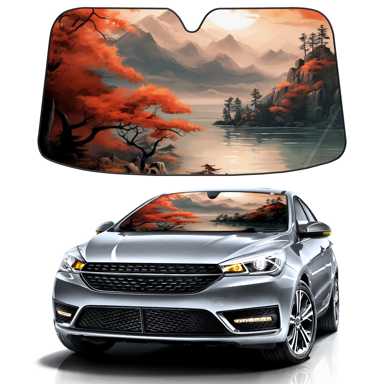Car Windshield Sun Shade For Front Window Autumn Landscape2 Foldable Vehicle Windshield Car Sun Visor Covers Automotive Window Protector Car Camping Privacy Sun Blocker