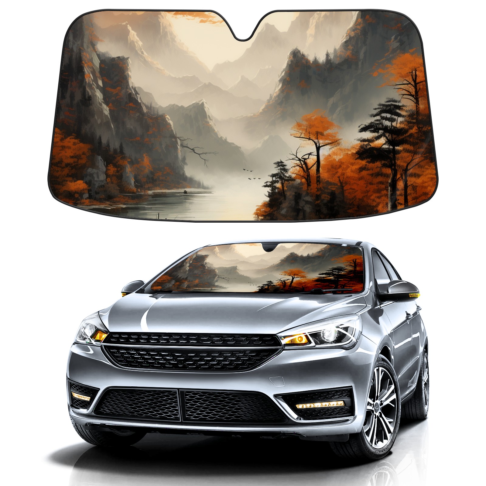 Car Windshield Sun Shade For Front Window Autumn Landscape Foldable Vehicle Windshield Car Sun Visor Covers Automotive Window Protector Car Camping Privacy Sun Blocker