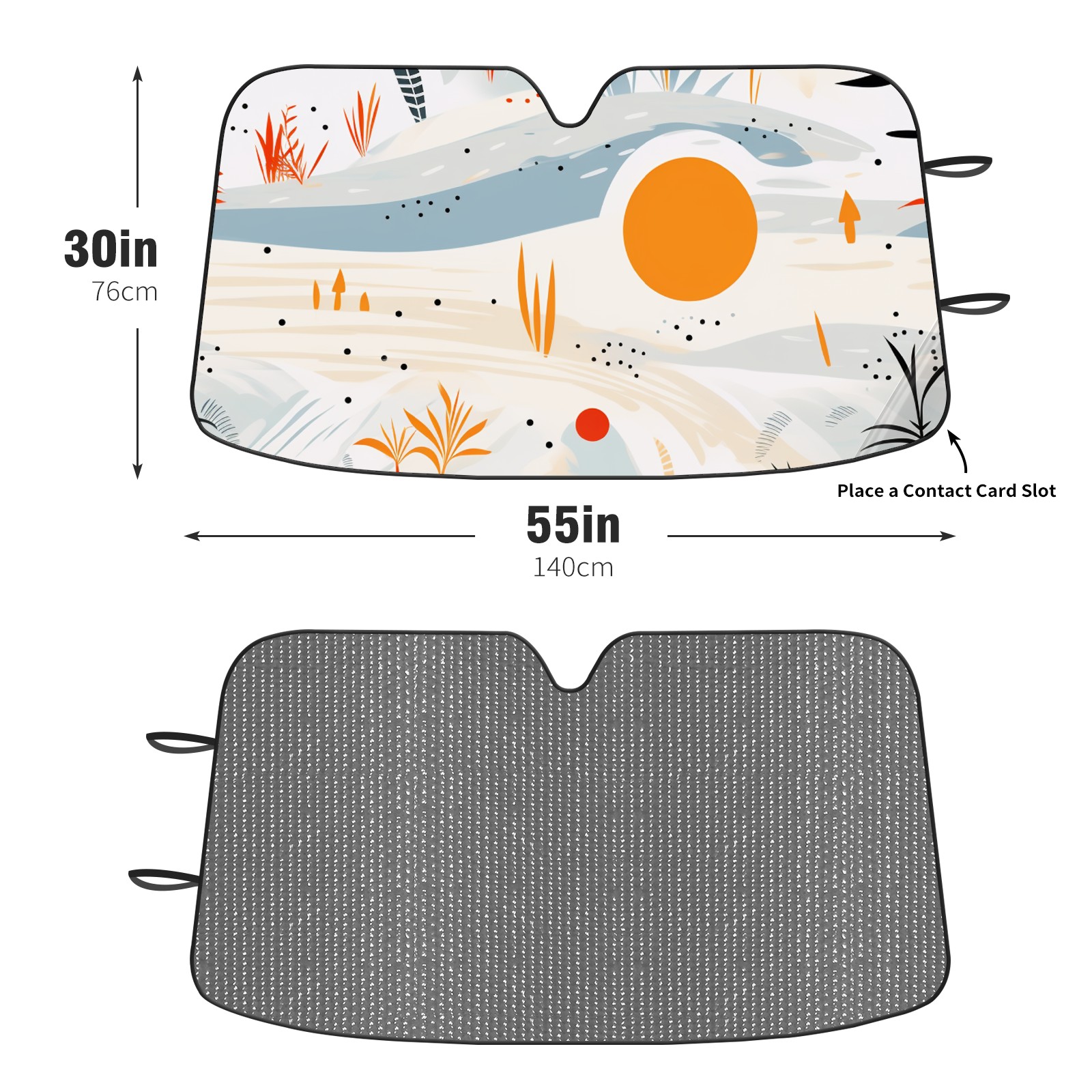 Diameter /Size 63"L x 33.5"W Made from excellent materials which makes it sturdy and protects the car from the sun. Easy to use and pack. Makes the interior of the car cooler.You can easily stash the sunshade in the storage bag or store long term.It open and closes easy. Also the leather storage bag is durable and easy to put the umbrella back into.This windshield sunshade provides complete coverage and keeps your car interior cool under direct sun. It is easy to open and position under the windshield and around the rear-view mirror. Makes Your Car Easy To Identify, Perfect For Finding Your Car In Crowded Parking Lots And Garages.Great Choice: It Is A Great Gift For Dad, Boyfriend, Brother, Brother And Uncle, Friends, Classmates, Family And So On. Notice: Due To Difference Computer Monitors, The Color Maybe Slightly Different From Picture. As Different Measurement Methods, Measurement Data Will Float Within 2%.I Hope You Understand. If You Have Any Question About The Item Please Do Not Hesitate To Contact Us Immediately And We Will Give You A Satisfactory Reply Within 24 Hours.