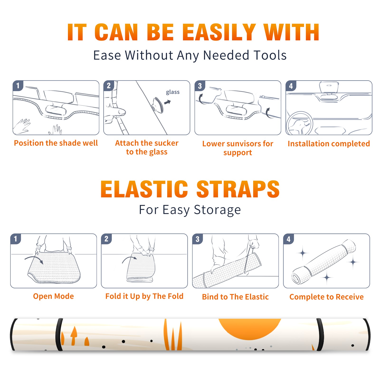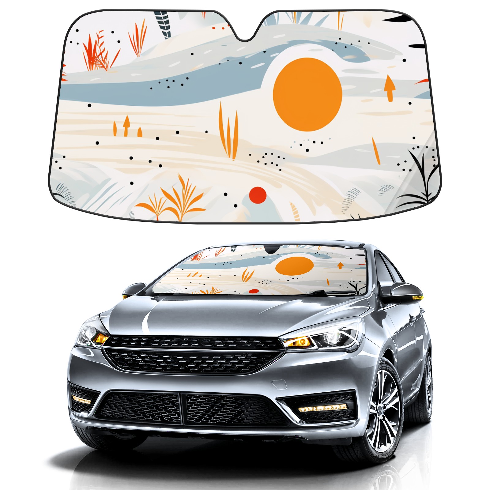 • Diameter /Size 63"L x 33.5"W Made from excellent materials which makes it sturdy and protects the car from the sun. Easy to use and pack. Makes the interior of the car cooler.You can easily stash the sunshade in the storage bag or store long term.It open and closes easy. Also the leather storage bag is durable and easy to put the umbrella back into.This windshield sunshade provides complete coverage and keeps your car interior cool under direct sun. It is easy to open and position under the windshield and around the rear-view mirror. Makes Your Car Easy To Identify, Perfect For Finding Your Car In Crowded Parking Lots And Garages.Great Choice: It Is A Great Gift For Dad, Boyfriend, Brother, Brother And Uncle, Friends, Classmates, Family And So On. Notice: Due To Difference Computer Monitors, The Color Maybe Slightly Different From Picture. As Different Measurement Methods, Measurement Data Will Float Within 2%.I Hope You Understand. If You Have Any Question About The Item Please Do Not Hesitate To Contact Us Immediately And We Will Give You A Satisfactory Reply Within 24 Hours.