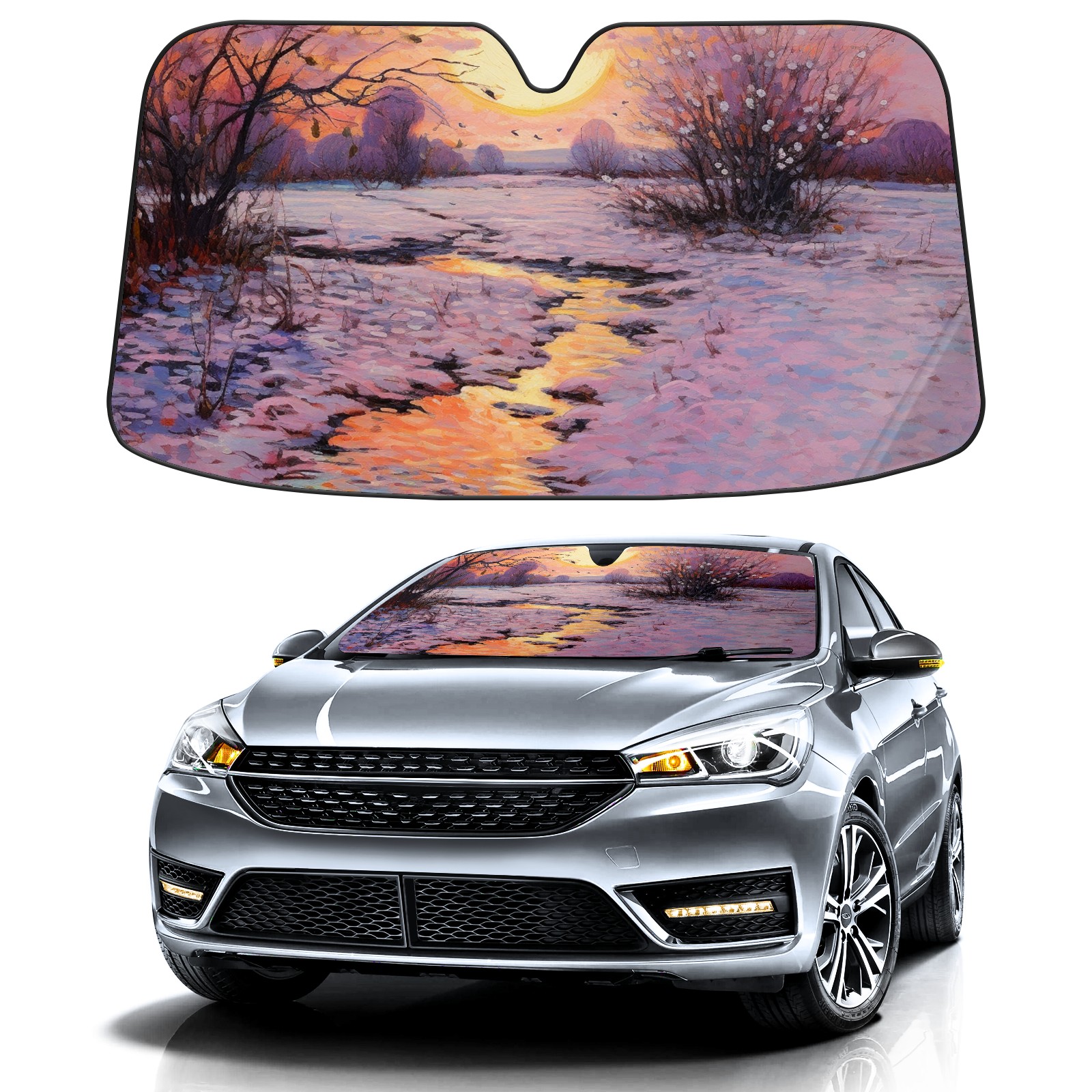 • Diameter /Size 63"L x 33.5"W Made from excellent materials which makes it sturdy and protects the car from the sun. Easy to use and pack. Makes the interior of the car cooler.You can easily stash the sunshade in the storage bag or store long term.It open and closes easy. Also the leather storage bag is durable and easy to put the umbrella back into.This windshield sunshade provides complete coverage and keeps your car interior cool under direct sun. It is easy to open and position under the windshield and around the rear-view mirror. Makes Your Car Easy To Identify, Perfect For Finding Your Car In Crowded Parking Lots And Garages.Great Choice: It Is A Great Gift For Dad, Boyfriend, Brother, Brother And Uncle, Friends, Classmates, Family And So On. Notice: Due To Difference Computer Monitors, The Color Maybe Slightly Different From Picture. As Different Measurement Methods, Measurement Data Will Float Within 2%.I Hope You Understand. If You Have Any Question About The Item Please Do Not Hesitate To Contact Us Immediately And We Will Give You A Satisfactory Reply Within 24 Hours.