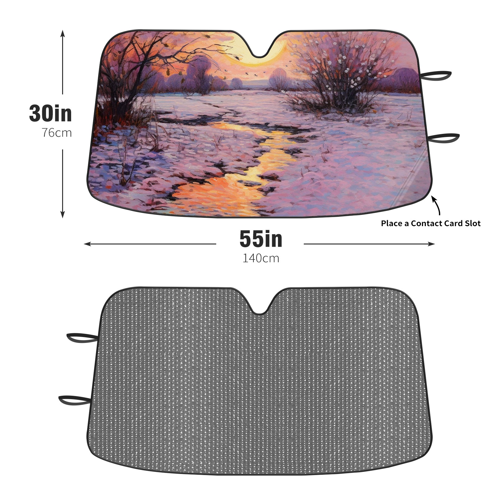 Diameter /Size 63"L x 33.5"W Made from excellent materials which makes it sturdy and protects the car from the sun. Easy to use and pack. Makes the interior of the car cooler.You can easily stash the sunshade in the storage bag or store long term.It open and closes easy. Also the leather storage bag is durable and easy to put the umbrella back into.This windshield sunshade provides complete coverage and keeps your car interior cool under direct sun. It is easy to open and position under the windshield and around the rear-view mirror. Makes Your Car Easy To Identify, Perfect For Finding Your Car In Crowded Parking Lots And Garages.Great Choice: It Is A Great Gift For Dad, Boyfriend, Brother, Brother And Uncle, Friends, Classmates, Family And So On. Notice: Due To Difference Computer Monitors, The Color Maybe Slightly Different From Picture. As Different Measurement Methods, Measurement Data Will Float Within 2%.I Hope You Understand. If You Have Any Question About The Item Please Do Not Hesitate To Contact Us Immediately And We Will Give You A Satisfactory Reply Within 24 Hours.