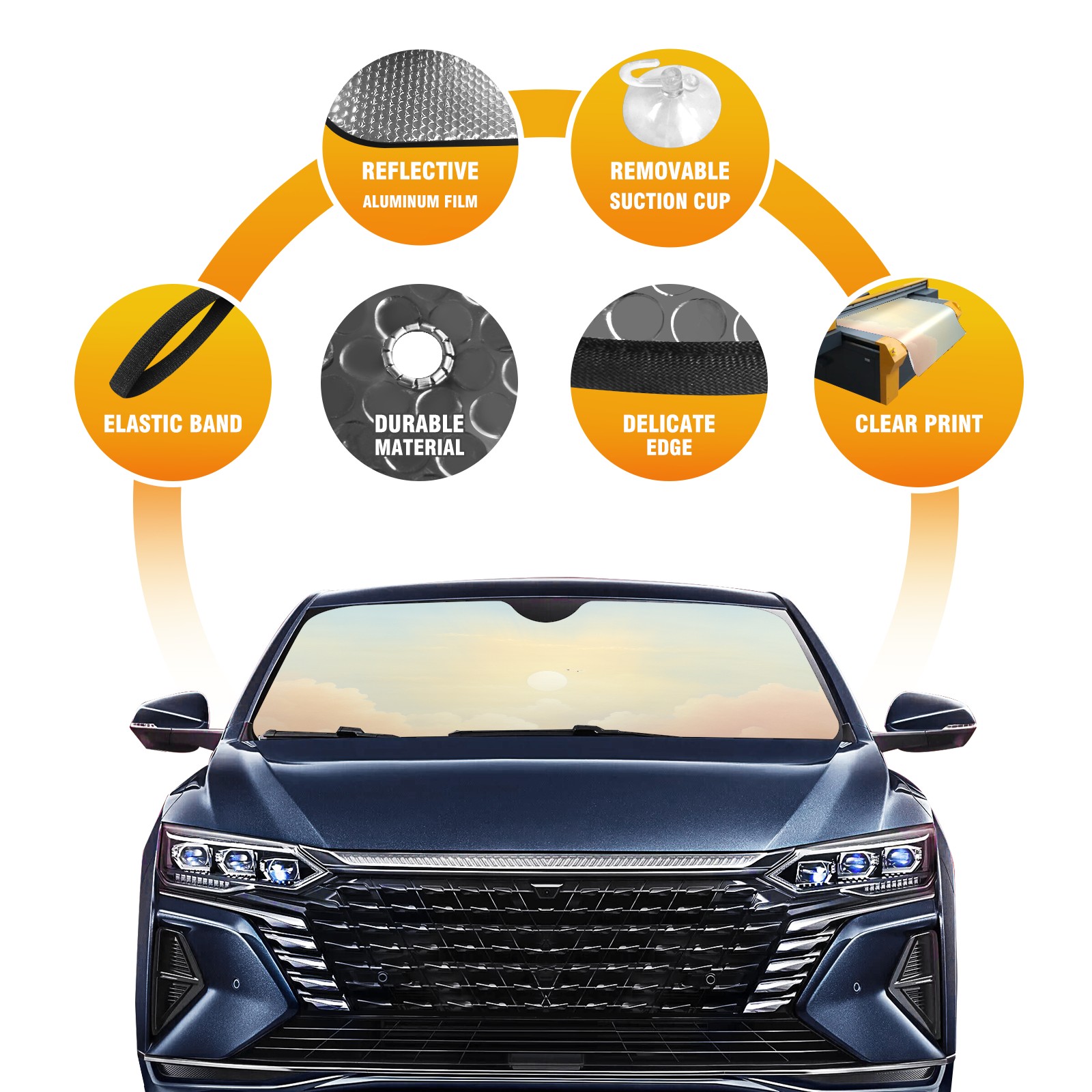• Diameter /Size 63"L x 33.5"W Made from excellent materials which makes it sturdy and protects the car from the sun. Easy to use and pack. Makes the interior of the car cooler.You can easily stash the sunshade in the storage bag or store long term.It open and closes easy. Also the leather storage bag is durable and easy to put the umbrella back into.This windshield sunshade provides complete coverage and keeps your car interior cool under direct sun. It is easy to open and position under the windshield and around the rear-view mirror. Makes Your Car Easy To Identify, Perfect For Finding Your Car In Crowded Parking Lots And Garages.Great Choice: It Is A Great Gift For Dad, Boyfriend, Brother, Brother And Uncle, Friends, Classmates, Family And So On. Notice: Due To Difference Computer Monitors, The Color Maybe Slightly Different From Picture. As Different Measurement Methods, Measurement Data Will Float Within 2%.I Hope You Understand. If You Have Any Question About The Item Please Do Not Hesitate To Contact Us Immediately And We Will Give You A Satisfactory Reply Within 24 Hours.