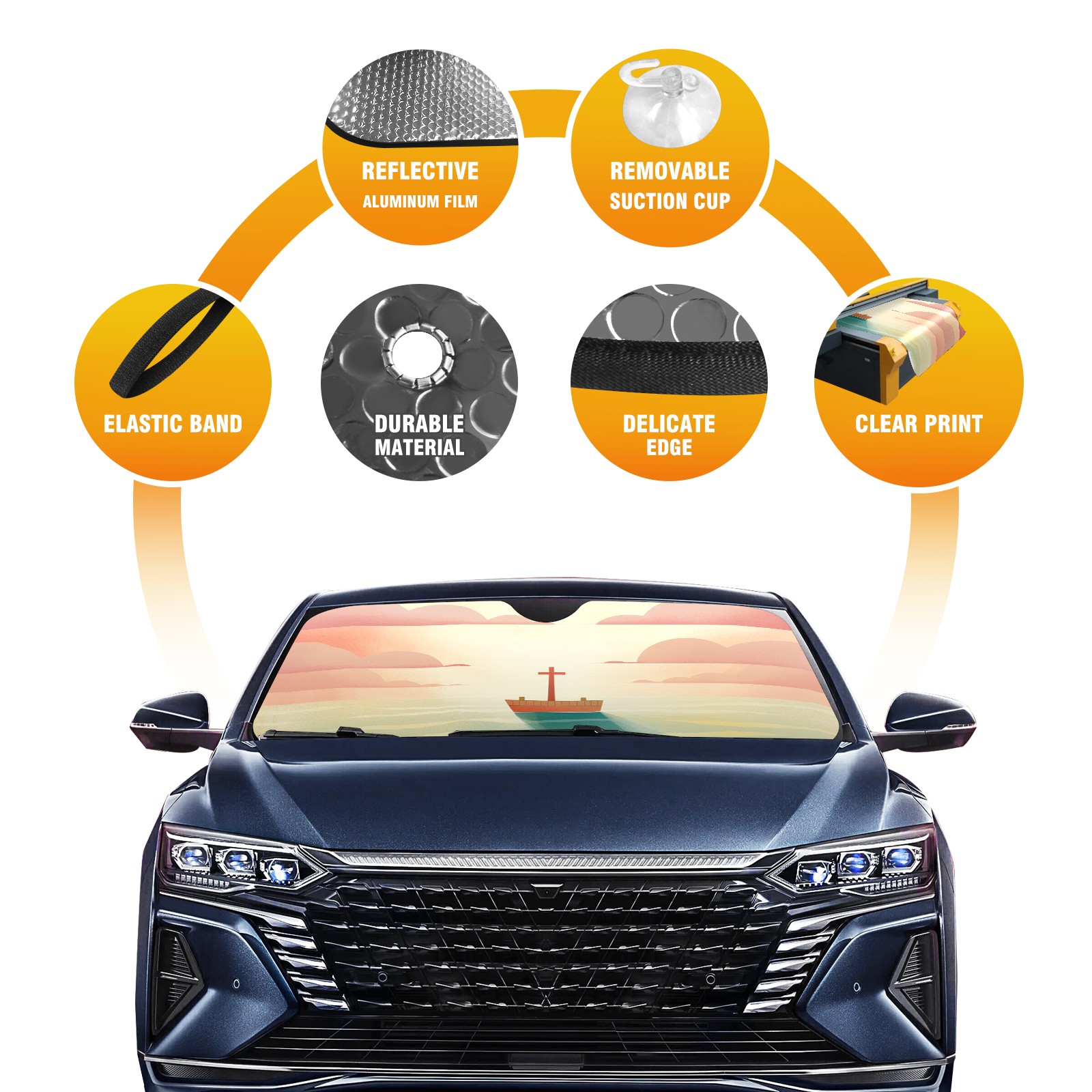 • Diameter /Size 63"L x 33.5"W Made from excellent materials which makes it sturdy and protects the car from the sun. Easy to use and pack. Makes the interior of the car cooler.You can easily stash the sunshade in the storage bag or store long term.It open and closes easy. Also the leather storage bag is durable and easy to put the umbrella back into.This windshield sunshade provides complete coverage and keeps your car interior cool under direct sun. It is easy to open and position under the windshield and around the rear-view mirror. Makes Your Car Easy To Identify, Perfect For Finding Your Car In Crowded Parking Lots And Garages.Great Choice: It Is A Great Gift For Dad, Boyfriend, Brother, Brother And Uncle, Friends, Classmates, Family And So On. Notice: Due To Difference Computer Monitors, The Color Maybe Slightly Different From Picture. As Different Measurement Methods, Measurement Data Will Float Within 2%.I Hope You Understand. If You Have Any Question About The Item Please Do Not Hesitate To Contact Us Immediately And We Will Give You A Satisfactory Reply Within 24 Hours.