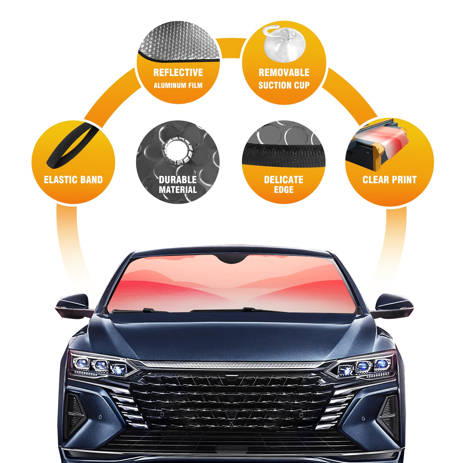 Diameter /Size 63"L x 33.5"W Made from excellent materials which makes it sturdy and protects the car from the sun. Easy to use and pack. Makes the interior of the car cooler.You can easily stash the sunshade in the storage bag or store long term.It open and closes easy. Also the leather storage bag is durable and easy to put the umbrella back into.This windshield sunshade provides complete coverage and keeps your car interior cool under direct sun. It is easy to open and position under the windshield and around the rear-view mirror. Makes Your Car Easy To Identify, Perfect For Finding Your Car In Crowded Parking Lots And Garages.Great Choice: It Is A Great Gift For Dad, Boyfriend, Brother, Brother And Uncle, Friends, Classmates, Family And So On. Notice: Due To Difference Computer Monitors, The Color Maybe Slightly Different From Picture. As Different Measurement Methods, Measurement Data Will Float Within 2%.I Hope You Understand. If You Have Any Question About The Item Please Do Not Hesitate To Contact Us Immediately And We Will Give You A Satisfactory Reply Within 24 Hours.