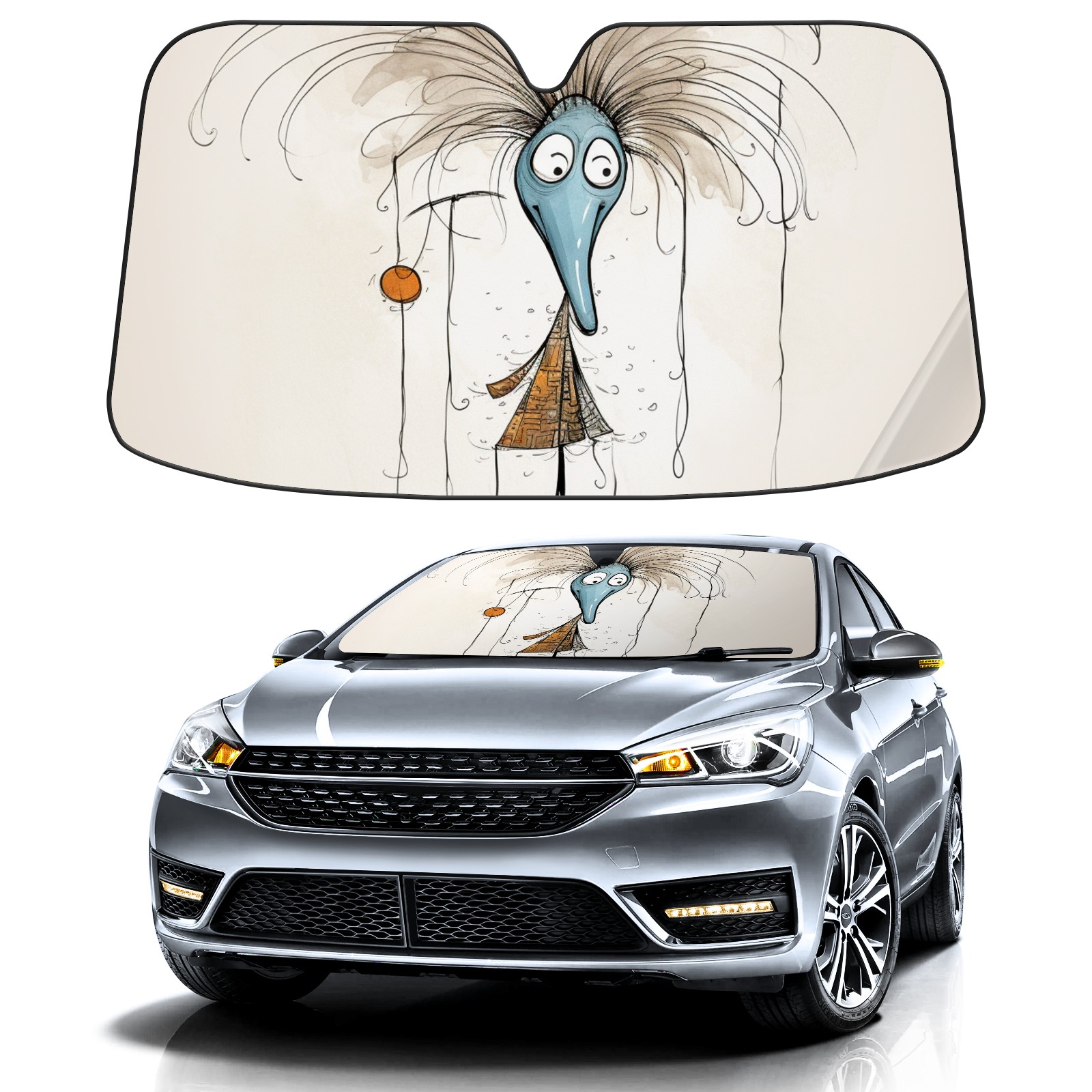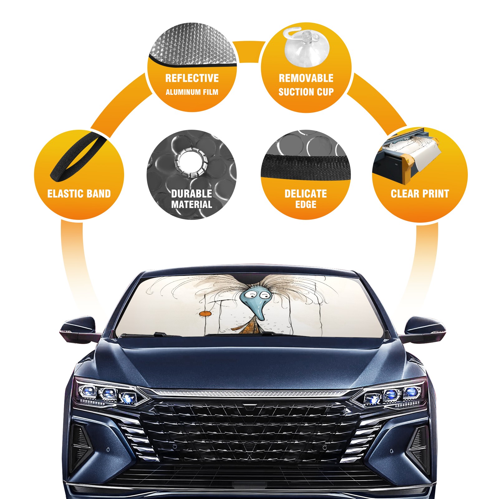 • Diameter /Size 63"L x 33.5"W Made from excellent materials which makes it sturdy and protects the car from the sun. Easy to use and pack. Makes the interior of the car cooler.You can easily stash the sunshade in the storage bag or store long term.It open and closes easy. Also the leather storage bag is durable and easy to put the umbrella back into.This windshield sunshade provides complete coverage and keeps your car interior cool under direct sun. It is easy to open and position under the windshield and around the rear-view mirror. Makes Your Car Easy To Identify, Perfect For Finding Your Car In Crowded Parking Lots And Garages.Great Choice: It Is A Great Gift For Dad, Boyfriend, Brother, Brother And Uncle, Friends, Classmates, Family And So On. Notice: Due To Difference Computer Monitors, The Color Maybe Slightly Different From Picture. As Different Measurement Methods, Measurement Data Will Float Within 2%.I Hope You Understand. If You Have Any Question About The Item Please Do Not Hesitate To Contact Us Immediately And We Will Give You A Satisfactory Reply Within 24 Hours.