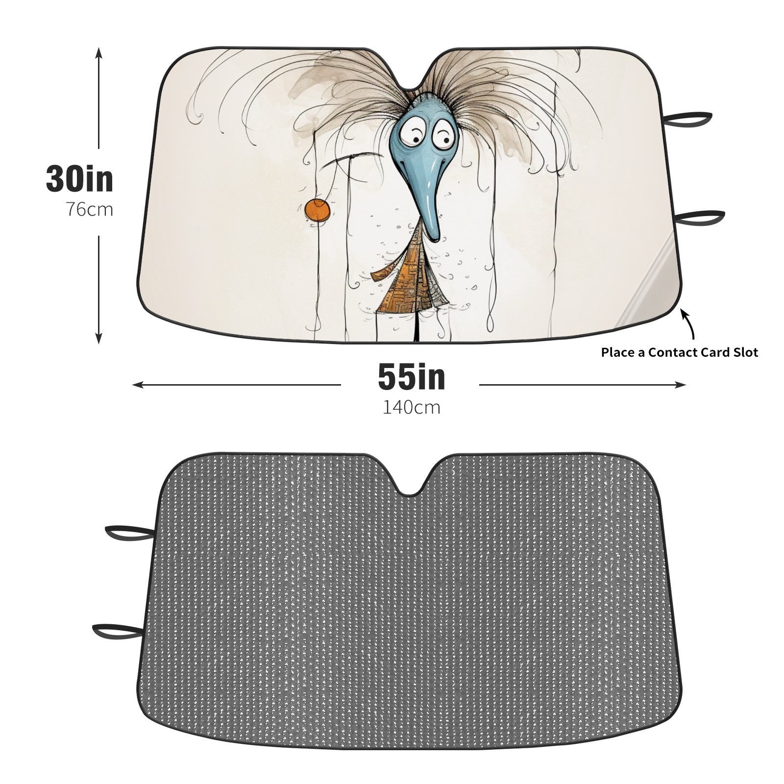 Diameter /Size 63"L x 33.5"W Made from excellent materials which makes it sturdy and protects the car from the sun. Easy to use and pack. Makes the interior of the car cooler.You can easily stash the sunshade in the storage bag or store long term.It open and closes easy. Also the leather storage bag is durable and easy to put the umbrella back into.This windshield sunshade provides complete coverage and keeps your car interior cool under direct sun. It is easy to open and position under the windshield and around the rear-view mirror. Makes Your Car Easy To Identify, Perfect For Finding Your Car In Crowded Parking Lots And Garages.Great Choice: It Is A Great Gift For Dad, Boyfriend, Brother, Brother And Uncle, Friends, Classmates, Family And So On. Notice: Due To Difference Computer Monitors, The Color Maybe Slightly Different From Picture. As Different Measurement Methods, Measurement Data Will Float Within 2%.I Hope You Understand. If You Have Any Question About The Item Please Do Not Hesitate To Contact Us Immediately And We Will Give You A Satisfactory Reply Within 24 Hours.