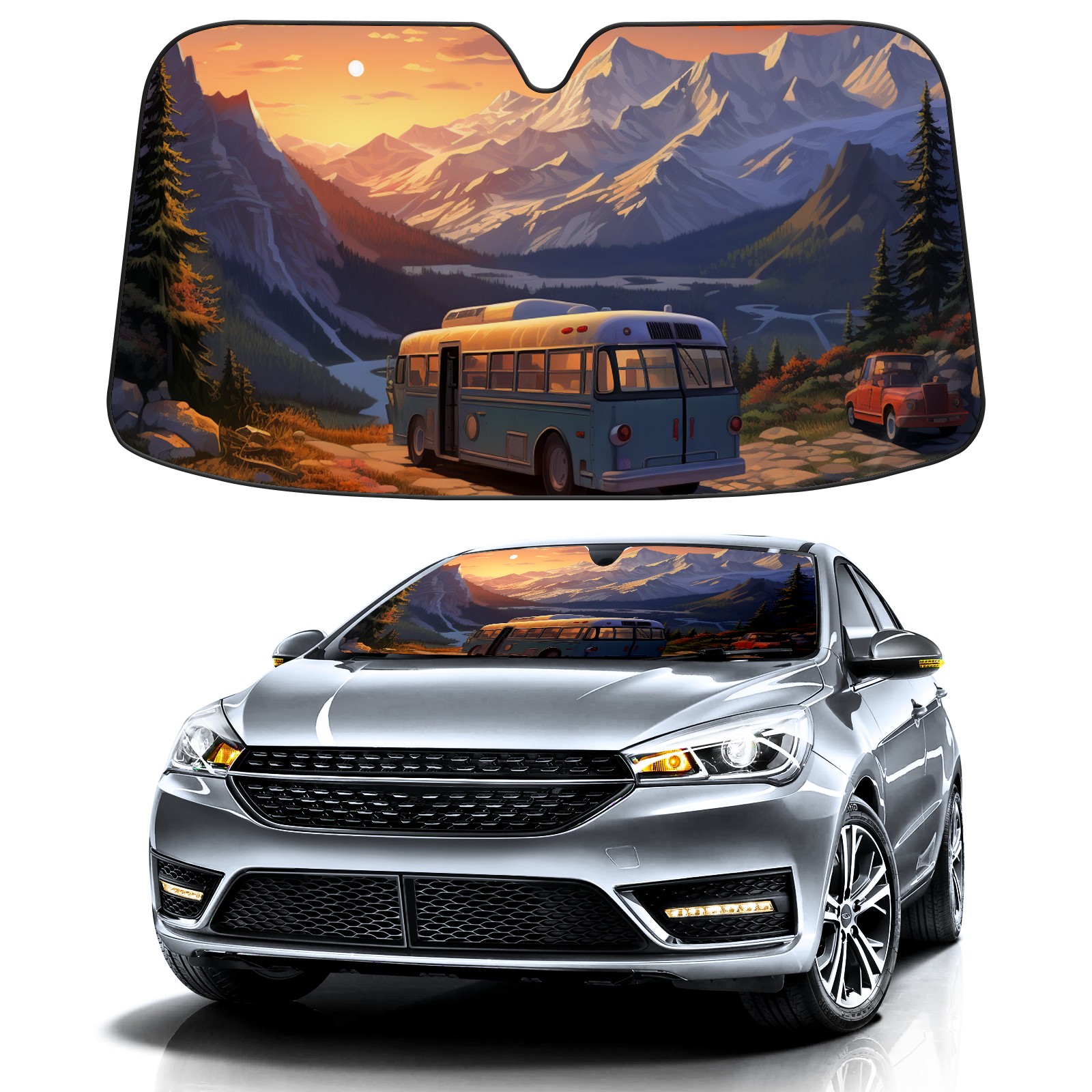 • Diameter /Size 63"L x 33.5"W Made from excellent materials which makes it sturdy and protects the car from the sun. Easy to use and pack. Makes the interior of the car cooler.You can easily stash the sunshade in the storage bag or store long term.It open and closes easy. Also the leather storage bag is durable and easy to put the umbrella back into.This windshield sunshade provides complete coverage and keeps your car interior cool under direct sun. It is easy to open and position under the windshield and around the rear-view mirror. Makes Your Car Easy To Identify, Perfect For Finding Your Car In Crowded Parking Lots And Garages.Great Choice: It Is A Great Gift For Dad, Boyfriend, Brother, Brother And Uncle, Friends, Classmates, Family And So On. Notice: Due To Difference Computer Monitors, The Color Maybe Slightly Different From Picture. As Different Measurement Methods, Measurement Data Will Float Within 2%.I Hope You Understand. If You Have Any Question About The Item Please Do Not Hesitate To Contact Us Immediately And We Will Give You A Satisfactory Reply Within 24 Hours.