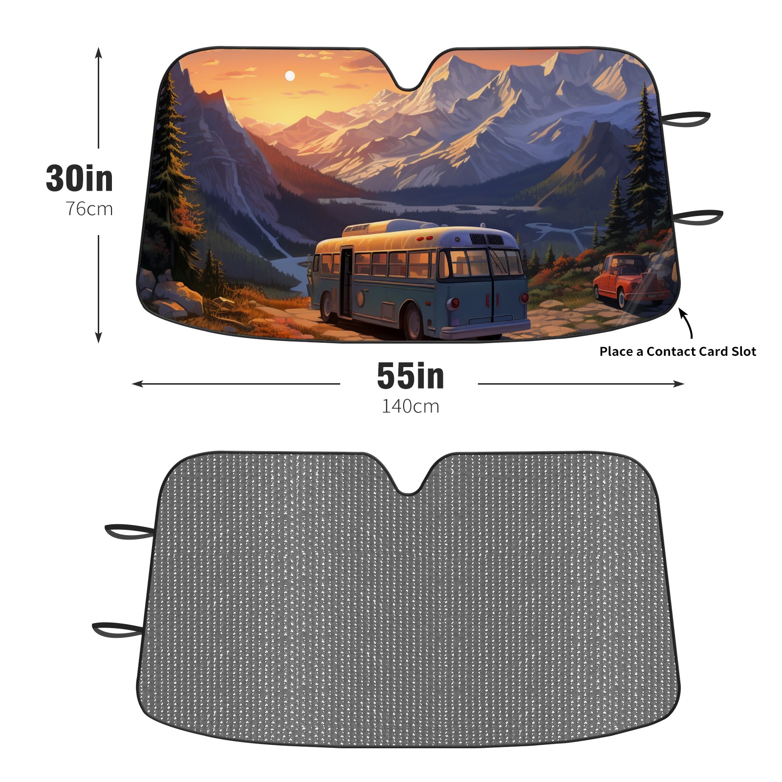 Diameter /Size 63"L x 33.5"W Made from excellent materials which makes it sturdy and protects the car from the sun. Easy to use and pack. Makes the interior of the car cooler.You can easily stash the sunshade in the storage bag or store long term.It open and closes easy. Also the leather storage bag is durable and easy to put the umbrella back into.This windshield sunshade provides complete coverage and keeps your car interior cool under direct sun. It is easy to open and position under the windshield and around the rear-view mirror. Makes Your Car Easy To Identify, Perfect For Finding Your Car In Crowded Parking Lots And Garages.Great Choice: It Is A Great Gift For Dad, Boyfriend, Brother, Brother And Uncle, Friends, Classmates, Family And So On. Notice: Due To Difference Computer Monitors, The Color Maybe Slightly Different From Picture. As Different Measurement Methods, Measurement Data Will Float Within 2%.I Hope You Understand. If You Have Any Question About The Item Please Do Not Hesitate To Contact Us Immediately And We Will Give You A Satisfactory Reply Within 24 Hours.