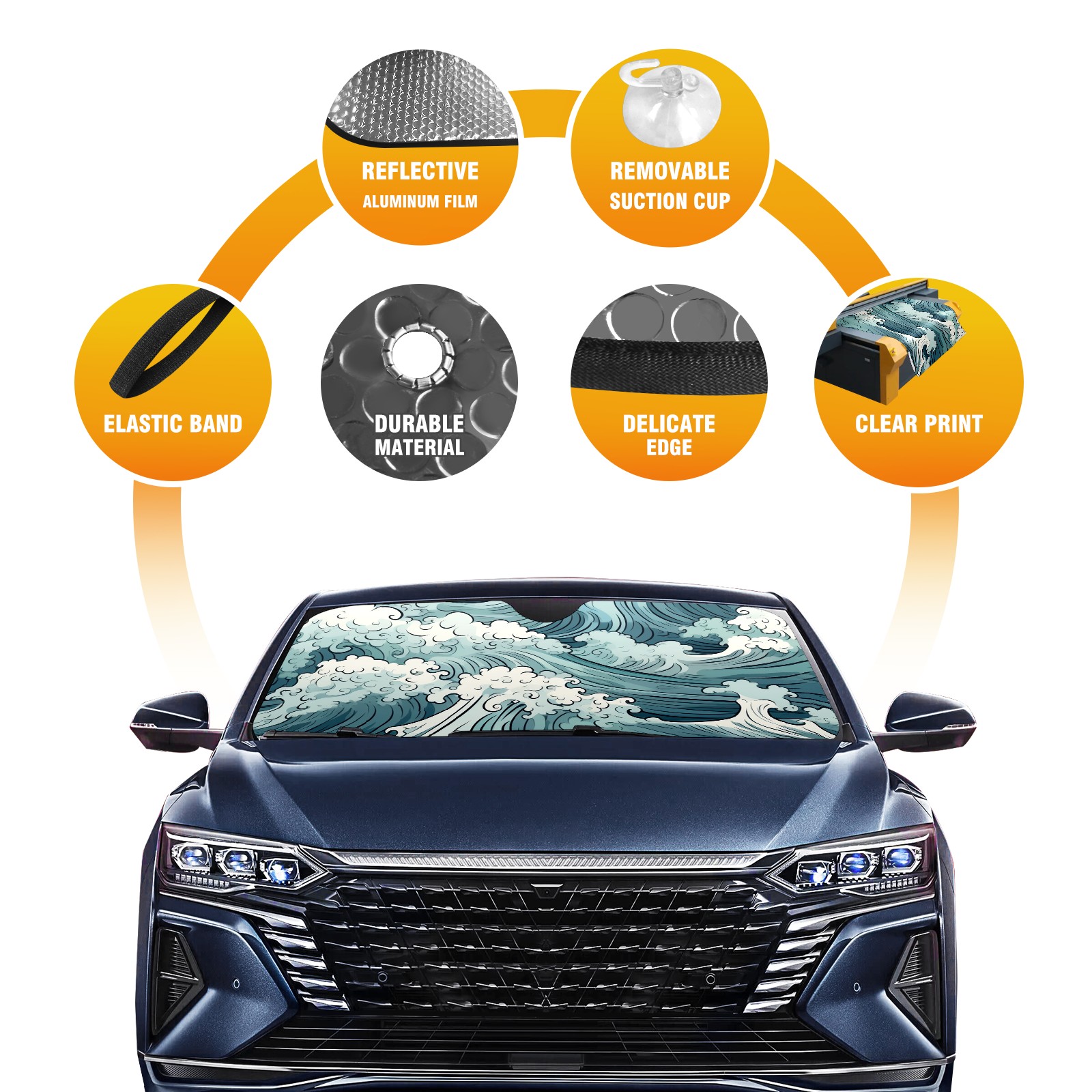 • Diameter /Size 63"L x 33.5"W Made from excellent materials which makes it sturdy and protects the car from the sun. Easy to use and pack. Makes the interior of the car cooler.You can easily stash the sunshade in the storage bag or store long term.It open and closes easy. Also the leather storage bag is durable and easy to put the umbrella back into.This windshield sunshade provides complete coverage and keeps your car interior cool under direct sun. It is easy to open and position under the windshield and around the rear-view mirror. Makes Your Car Easy To Identify, Perfect For Finding Your Car In Crowded Parking Lots And Garages.Great Choice: It Is A Great Gift For Dad, Boyfriend, Brother, Brother And Uncle, Friends, Classmates, Family And So On. Notice: Due To Difference Computer Monitors, The Color Maybe Slightly Different From Picture. As Different Measurement Methods, Measurement Data Will Float Within 2%.I Hope You Understand. If You Have Any Question About The Item Please Do Not Hesitate To Contact Us Immediately And We Will Give You A Satisfactory Reply Within 24 Hours.