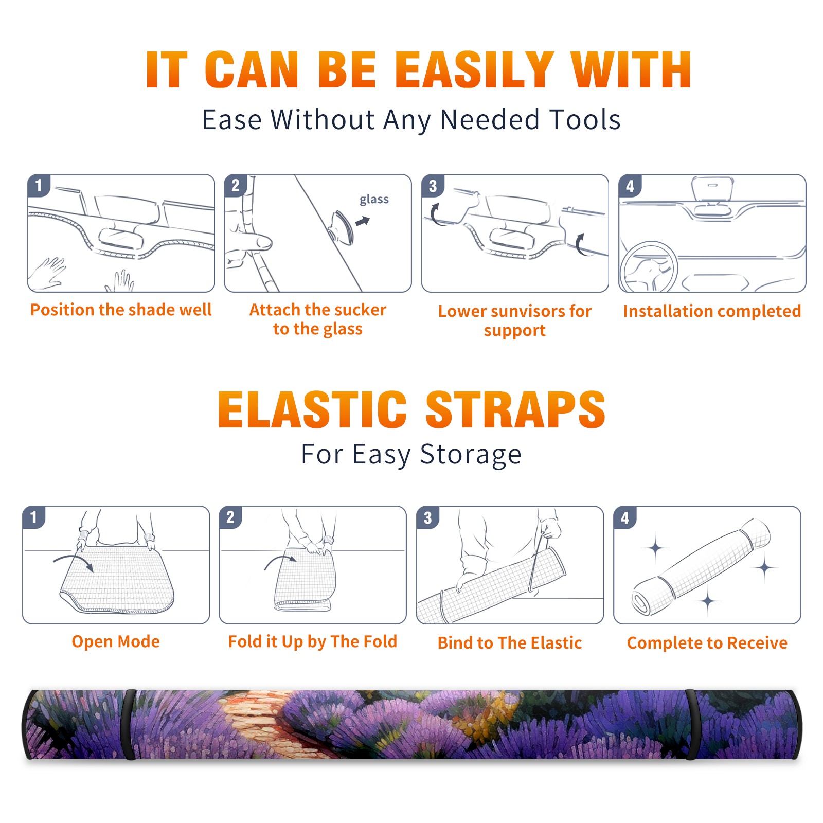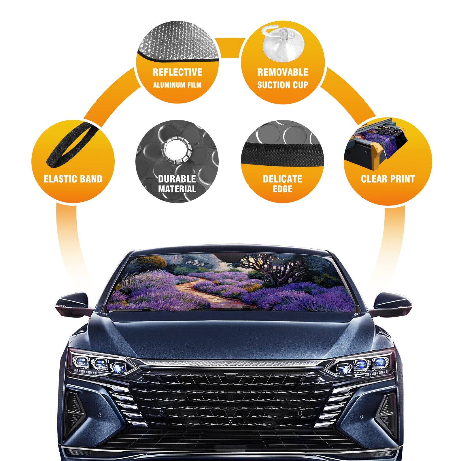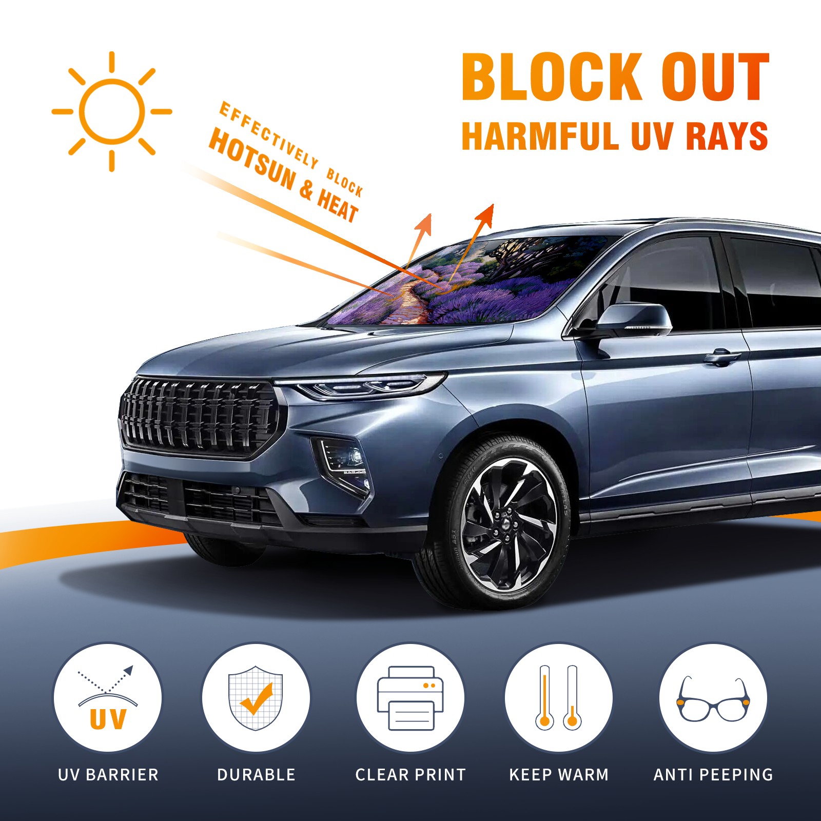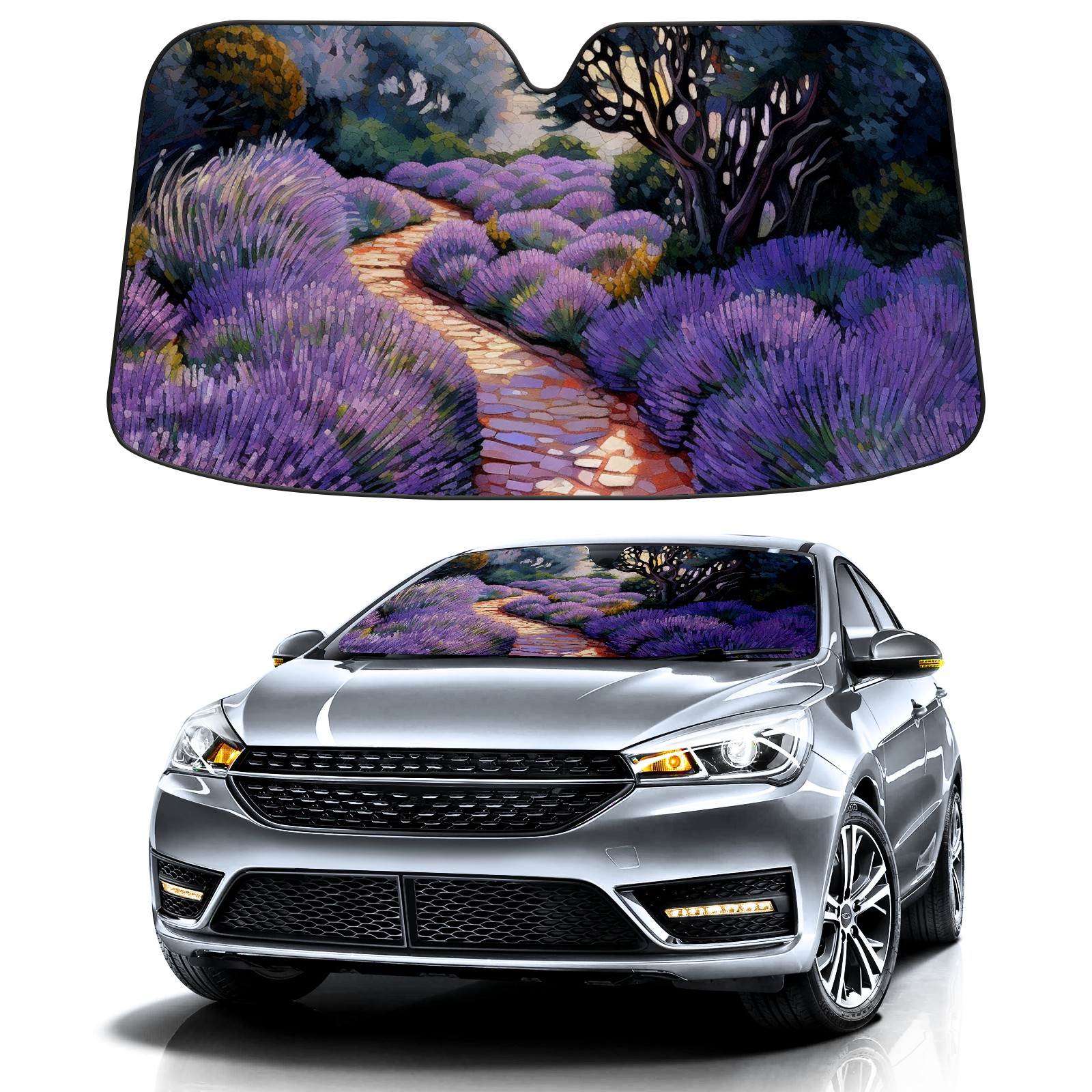 Car Windshield Sun Shade For Front Window Lavender 3 Foldable Vehicle Windshield Car Sun Visor Covers Automotive Window Protector Car Camping Privacy Sun Blocker