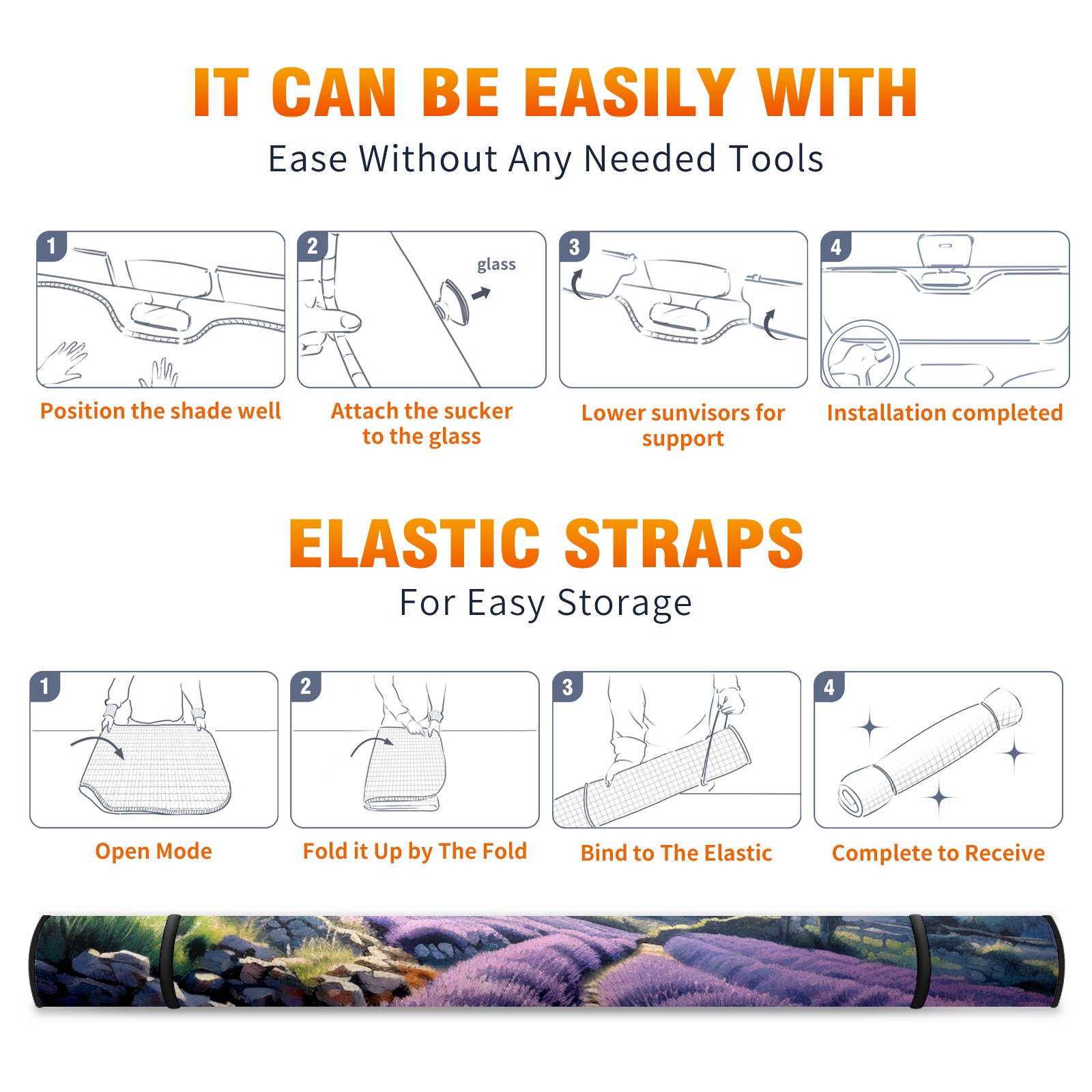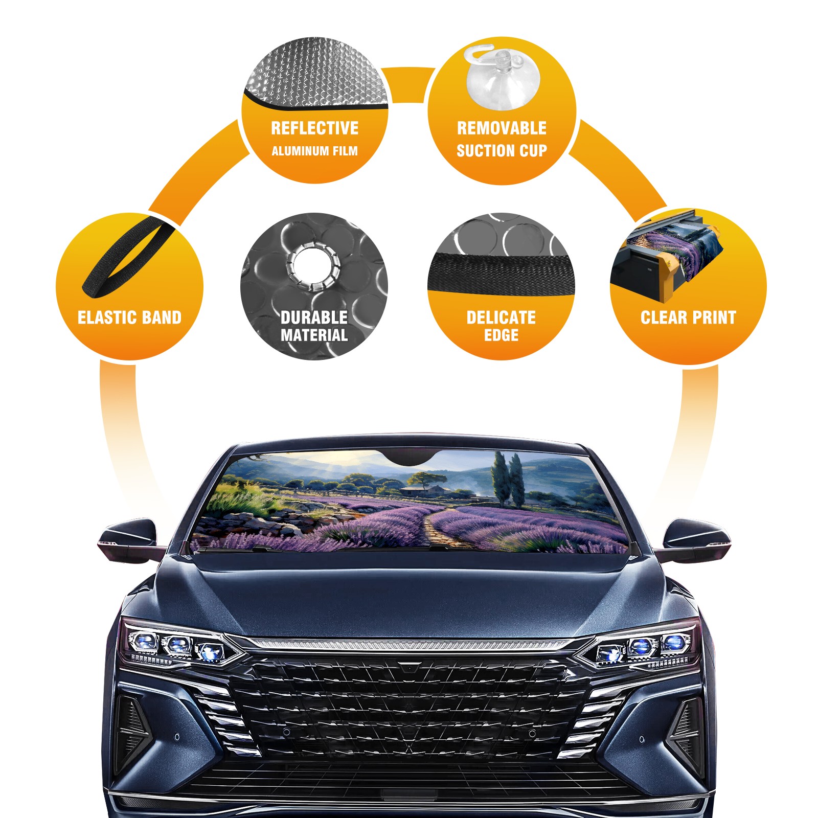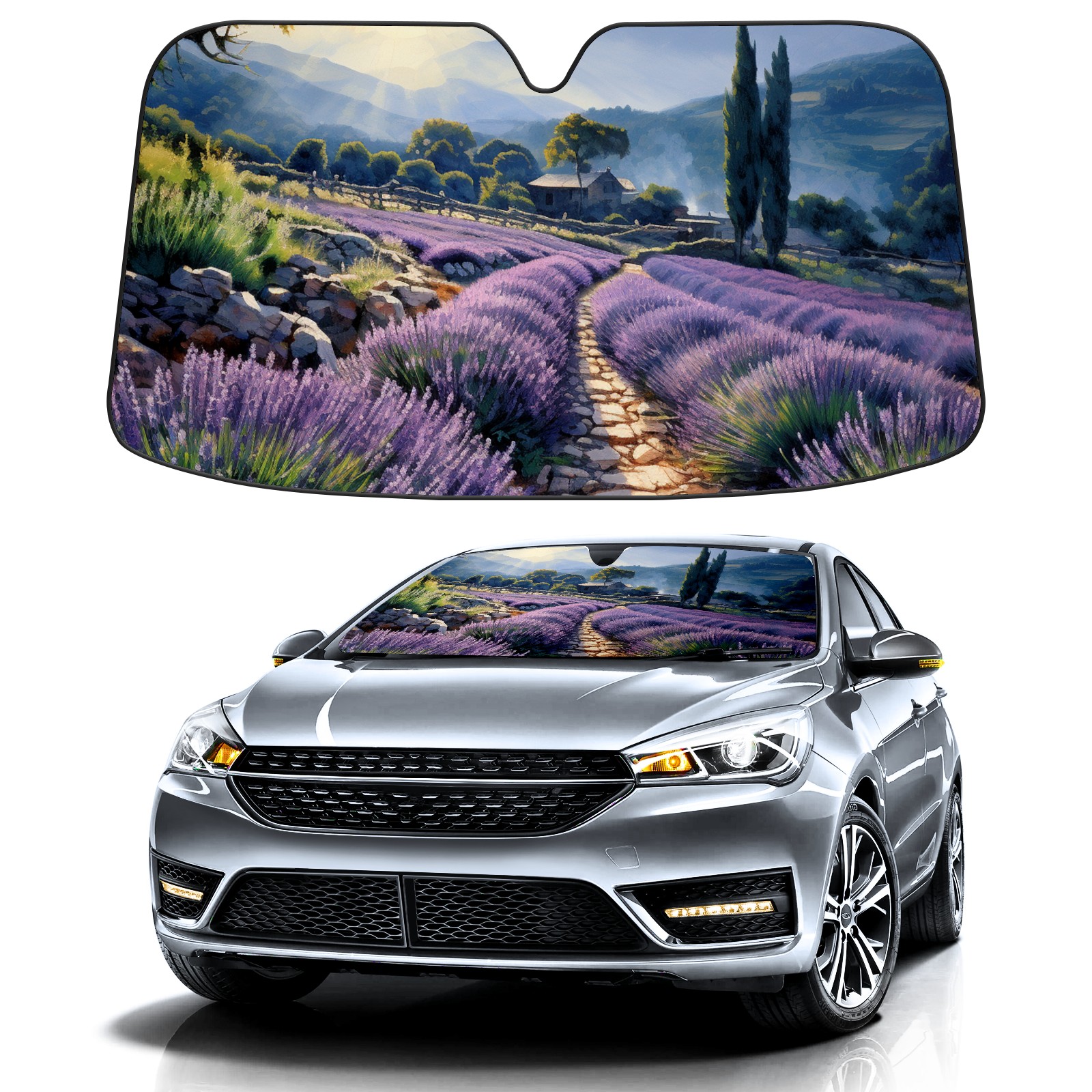 Car Windshield Sun Shade For Front Window Lavender 2 Foldable Vehicle Windshield Car Sun Visor Covers Automotive Window Protector Car Camping Privacy Sun Blocker