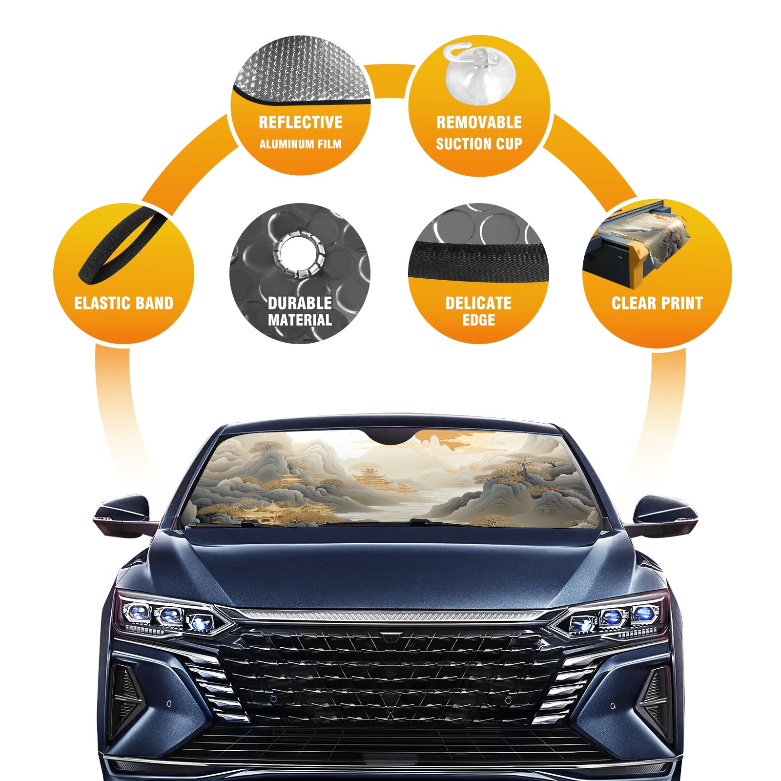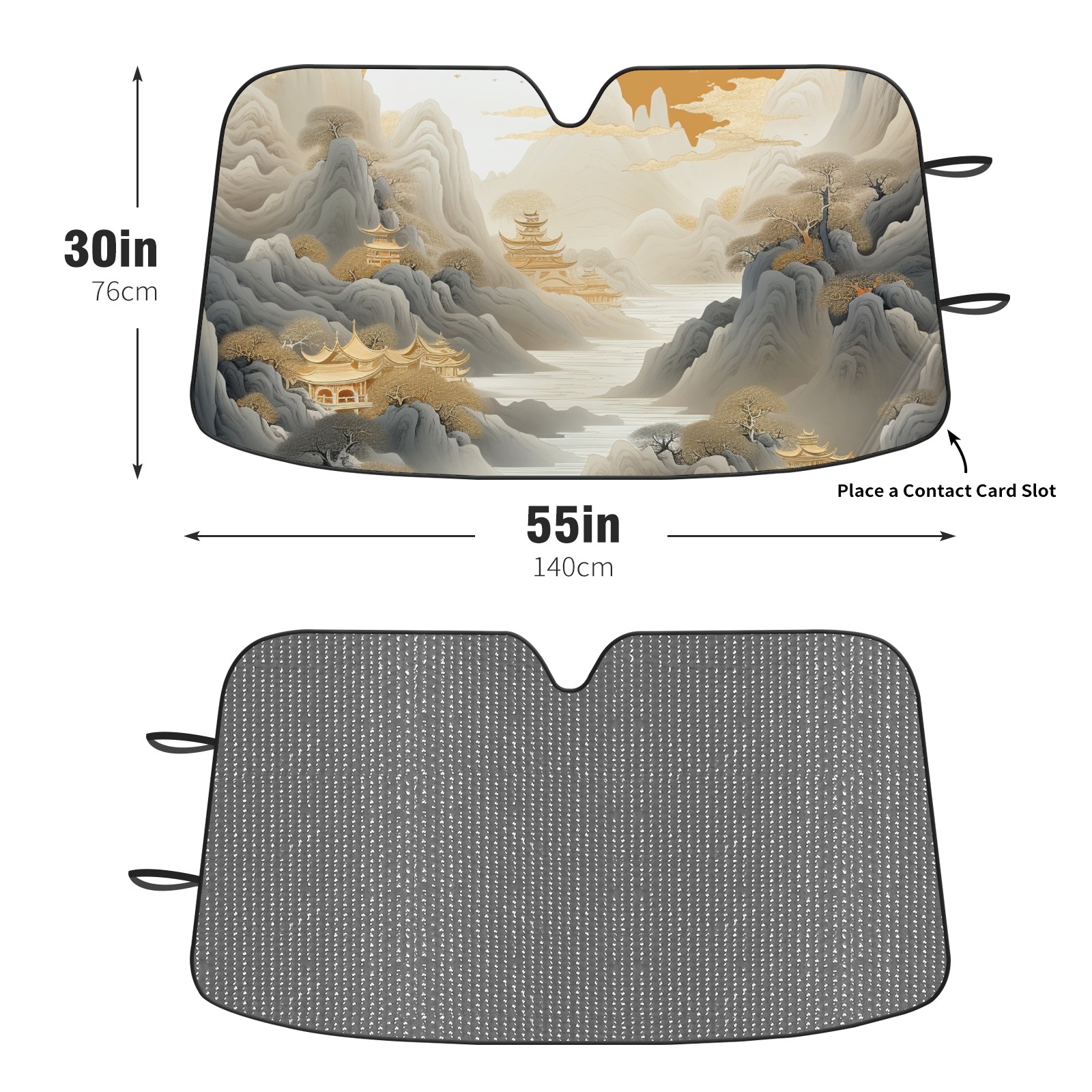 Diameter /Size 63"L x 33.5"W Made from excellent materials which makes it sturdy and protects the car from the sun. Easy to use and pack. Makes the interior of the car cooler.You can easily stash the sunshade in the storage bag or store long term.It open and closes easy. Also the leather storage bag is durable and easy to put the umbrella back into.This windshield sunshade provides complete coverage and keeps your car interior cool under direct sun. It is easy to open and position under the windshield and around the rear-view mirror. Makes Your Car Easy To Identify, Perfect For Finding Your Car In Crowded Parking Lots And Garages.Great Choice: It Is A Great Gift For Dad, Boyfriend, Brother, Brother And Uncle, Friends, Classmates, Family And So On. Notice: Due To Difference Computer Monitors, The Color Maybe Slightly Different From Picture. As Different Measurement Methods, Measurement Data Will Float Within 2%.I Hope You Understand. If You Have Any Question About The Item Please Do Not Hesitate To Contact Us Immediately And We Will Give You A Satisfactory Reply Within 24 Hours.