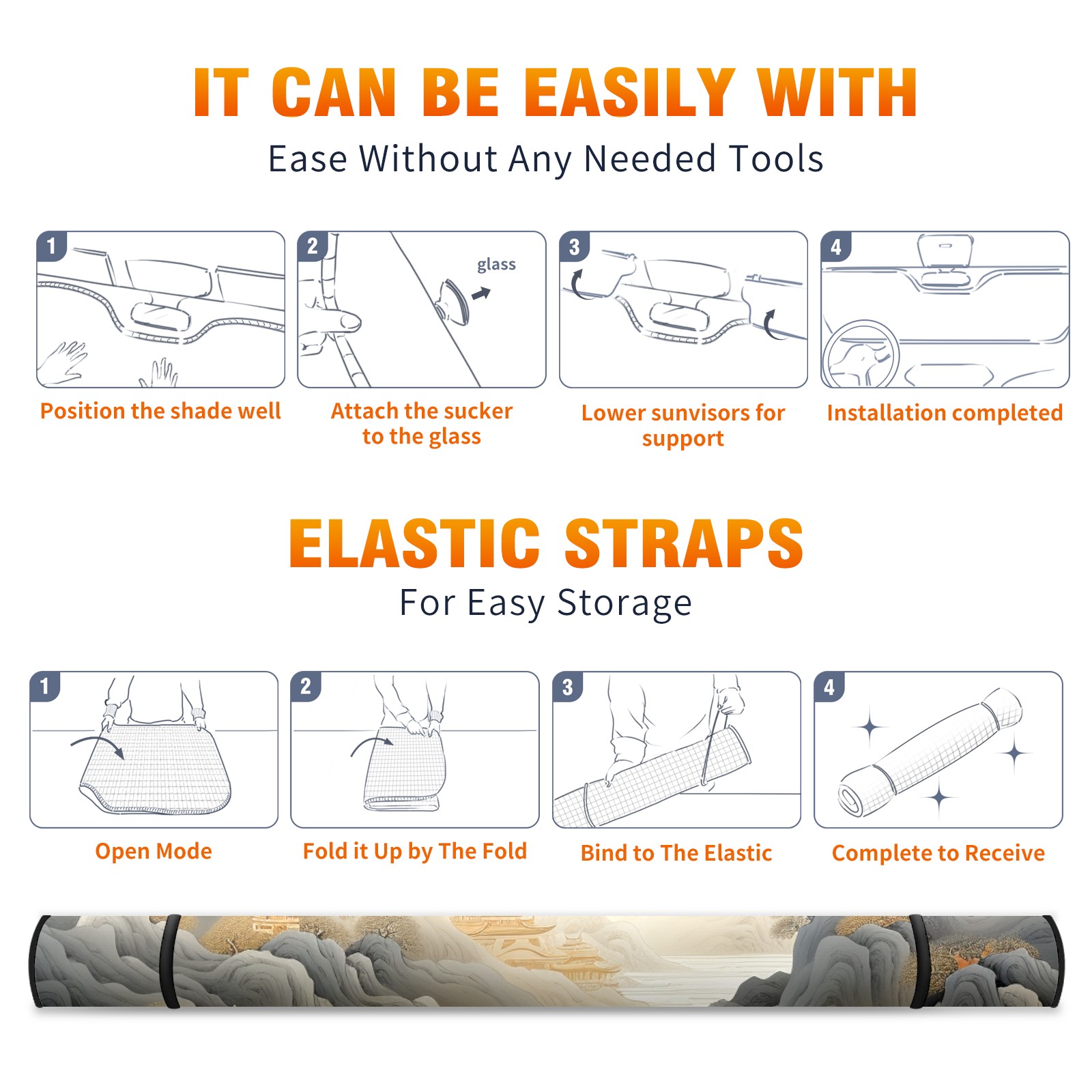 Car Windshield Sun Shade For Front Window Landscape 3 Foldable Vehicle Windshield Car Sun Visor Covers Automotive Window Protector Car Camping Privacy Sun Blocker