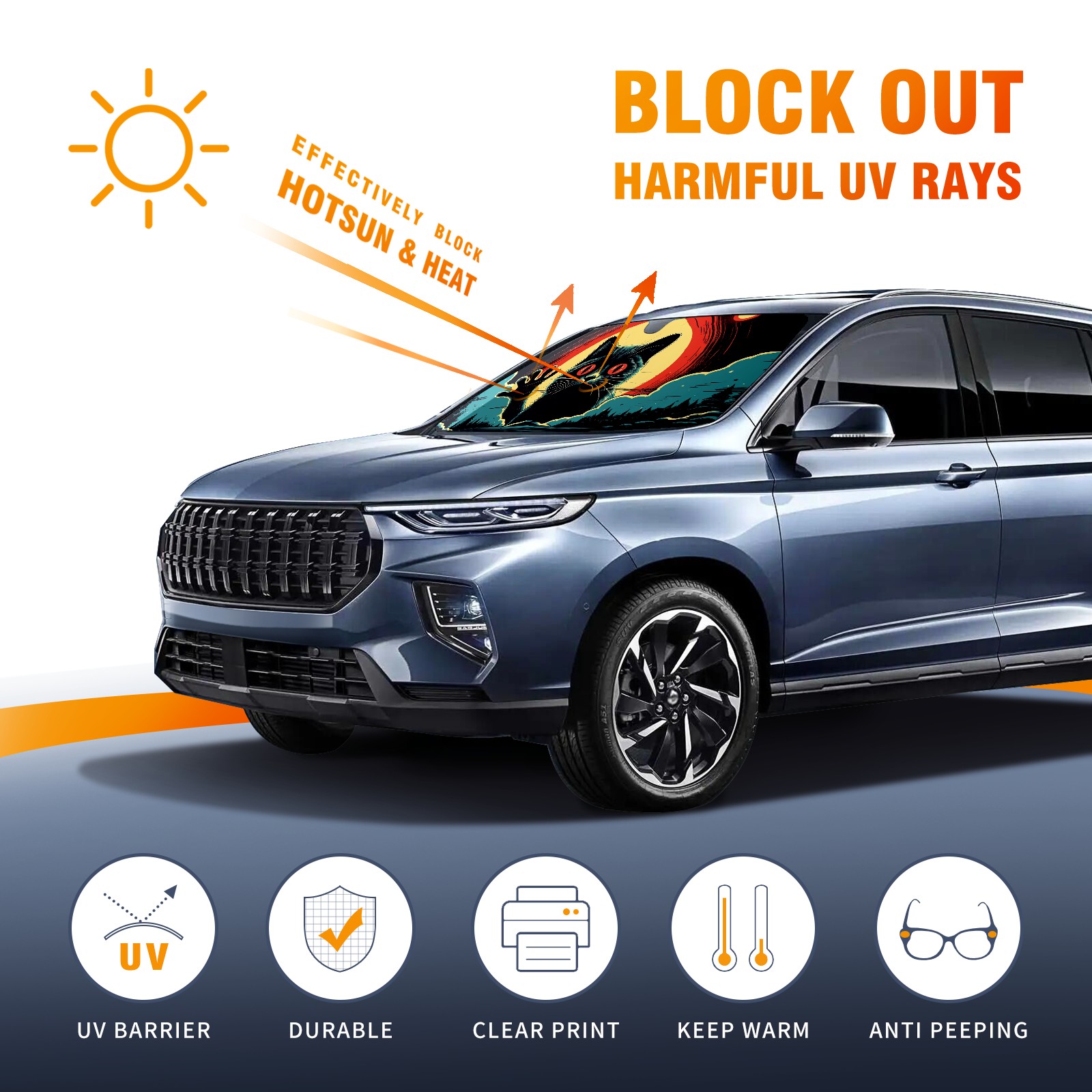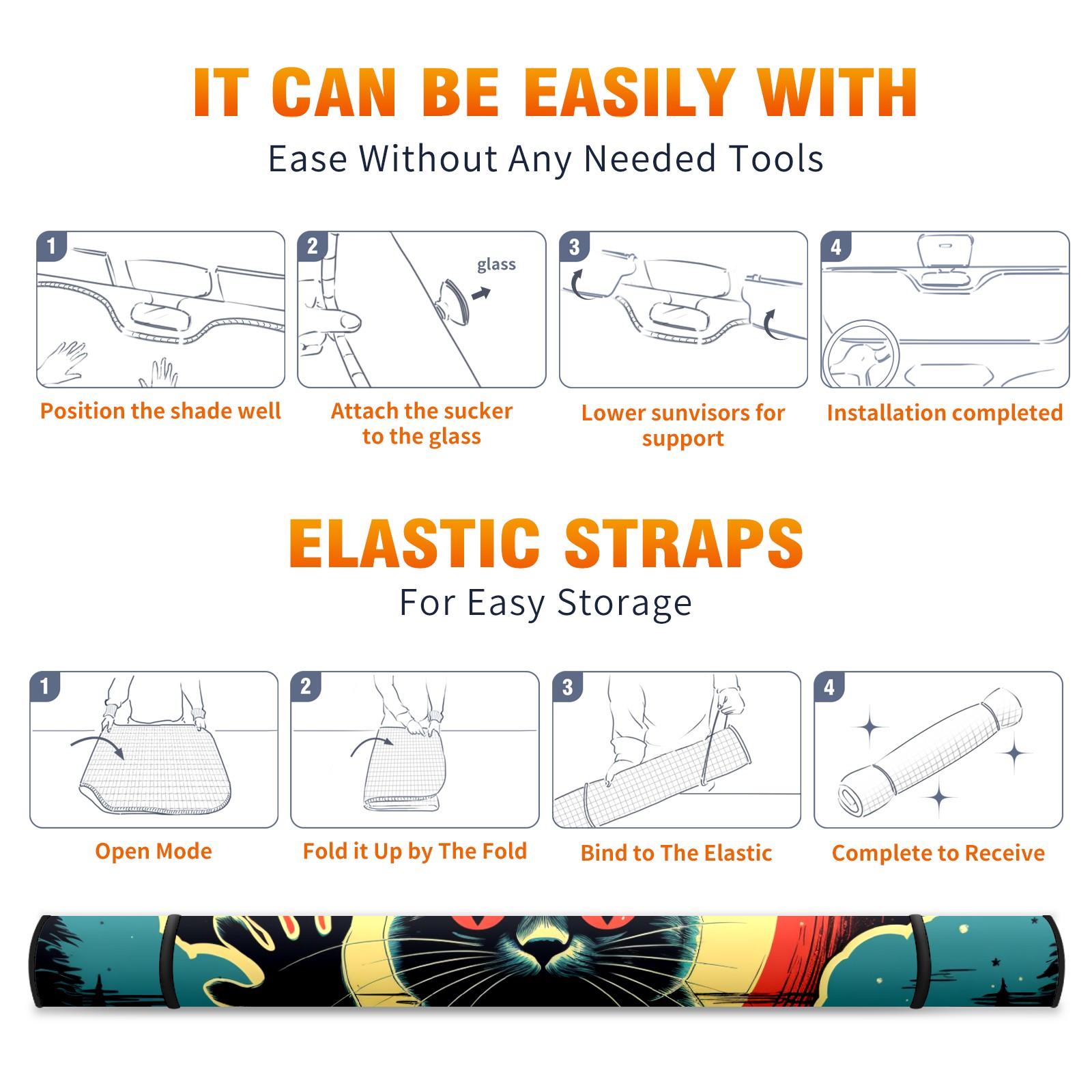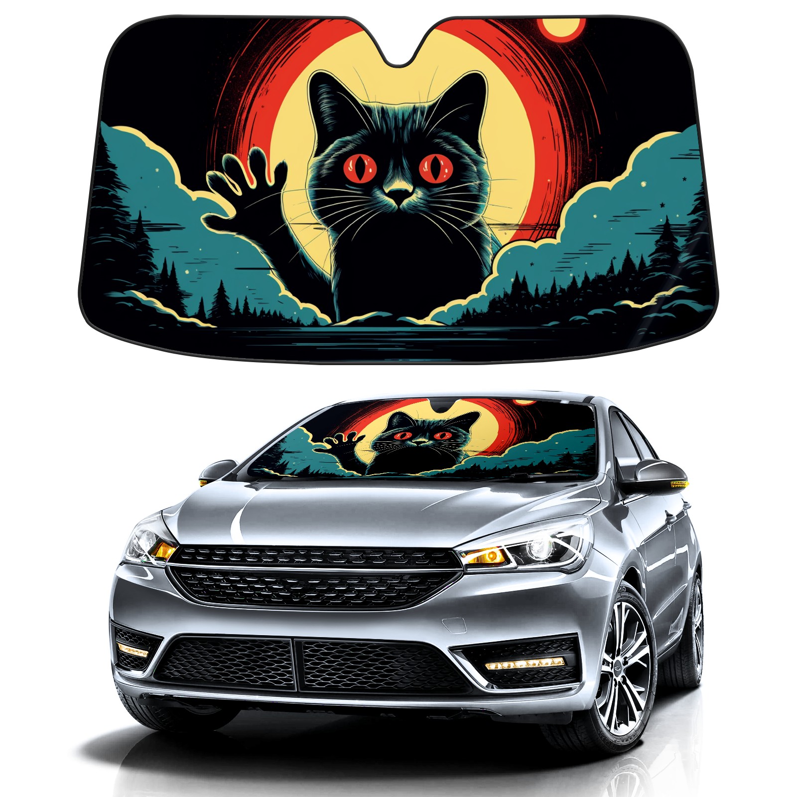 Car Windshield Sun Shade For Front Window Black Cat 2 Foldable Vehicle Windshield Car Sun Visor Covers Automotive Window Protector Car Camping Privacy Sun Blocker