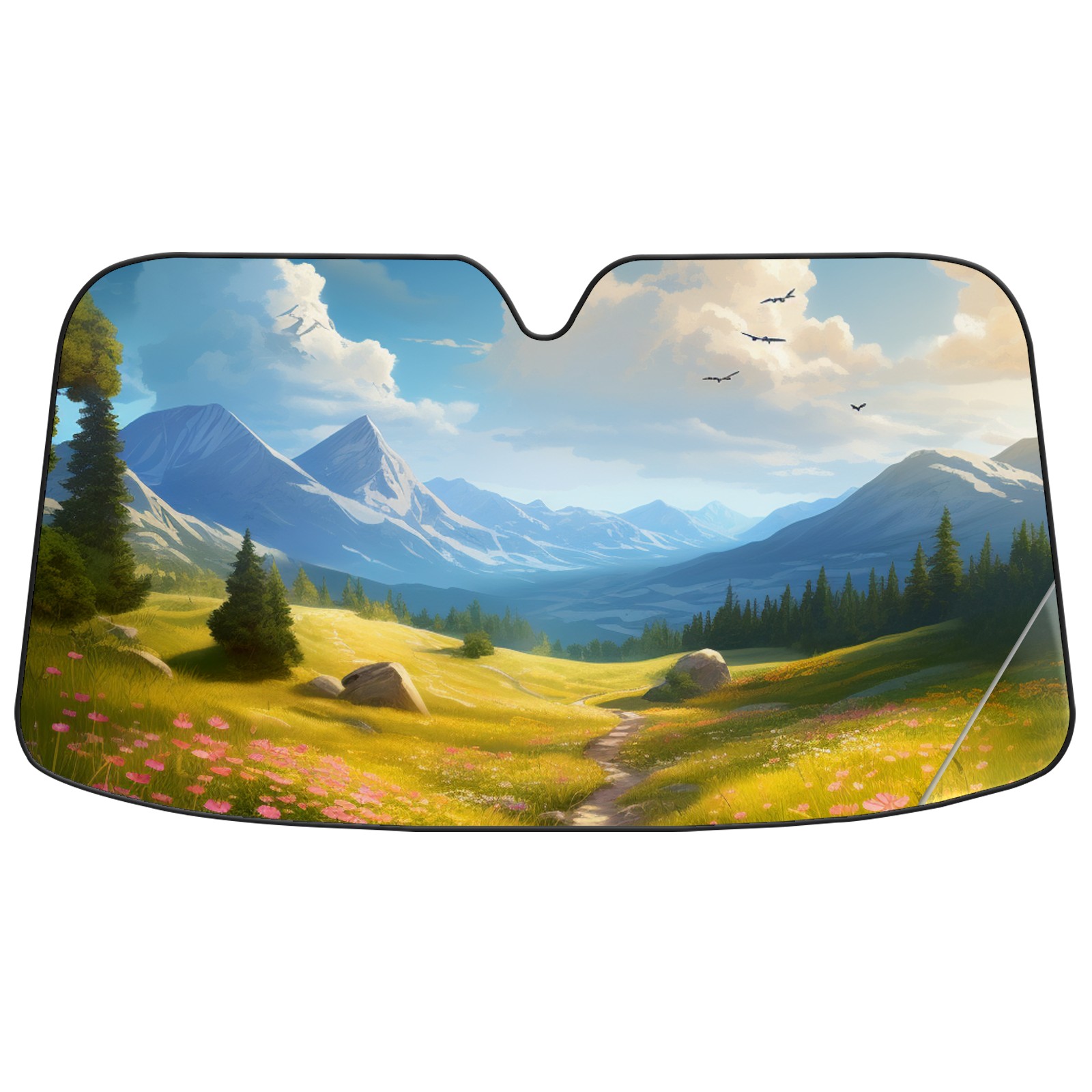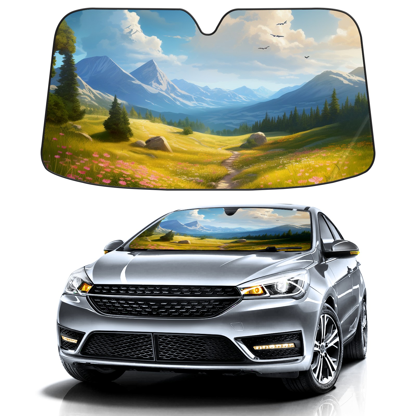 Car Windshield Sun Shade For Front Window Summer Landscape 3 Foldable Vehicle Windshield Car Sun Visor Covers Automotive Window Protector Car Camping Privacy Sun Blocker