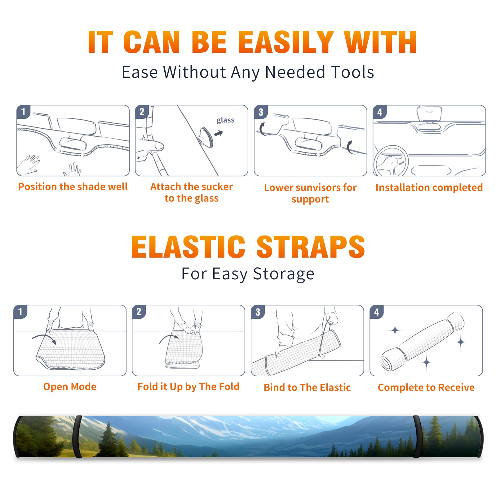 • Diameter /Size 63"L x 33.5"W Made from excellent materials which makes it sturdy and protects the car from the sun. Easy to use and pack. Makes the interior of the car cooler.You can easily stash the sunshade in the storage bag or store long term.It open and closes easy. Also the leather storage bag is durable and easy to put the umbrella back into.This windshield sunshade provides complete coverage and keeps your car interior cool under direct sun. It is easy to open and position under the windshield and around the rear-view mirror. Makes Your Car Easy To Identify, Perfect For Finding Your Car In Crowded Parking Lots And Garages.Great Choice: It Is A Great Gift For Dad, Boyfriend, Brother, Brother And Uncle, Friends, Classmates, Family And So On. Notice: Due To Difference Computer Monitors, The Color Maybe Slightly Different From Picture. As Different Measurement Methods, Measurement Data Will Float Within 2%.I Hope You Understand. If You Have Any Question About The Item Please Do Not Hesitate To Contact Us Immediately And We Will Give You A Satisfactory Reply Within 24 Hours.
