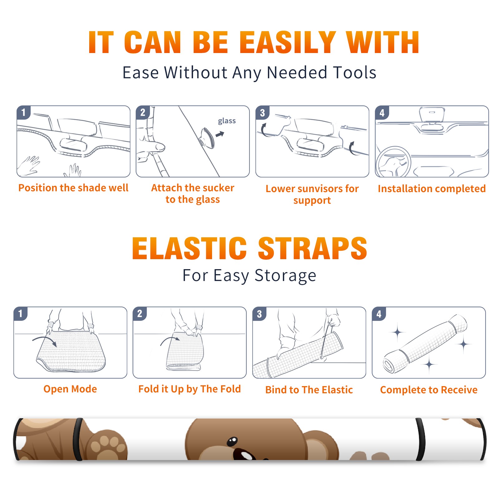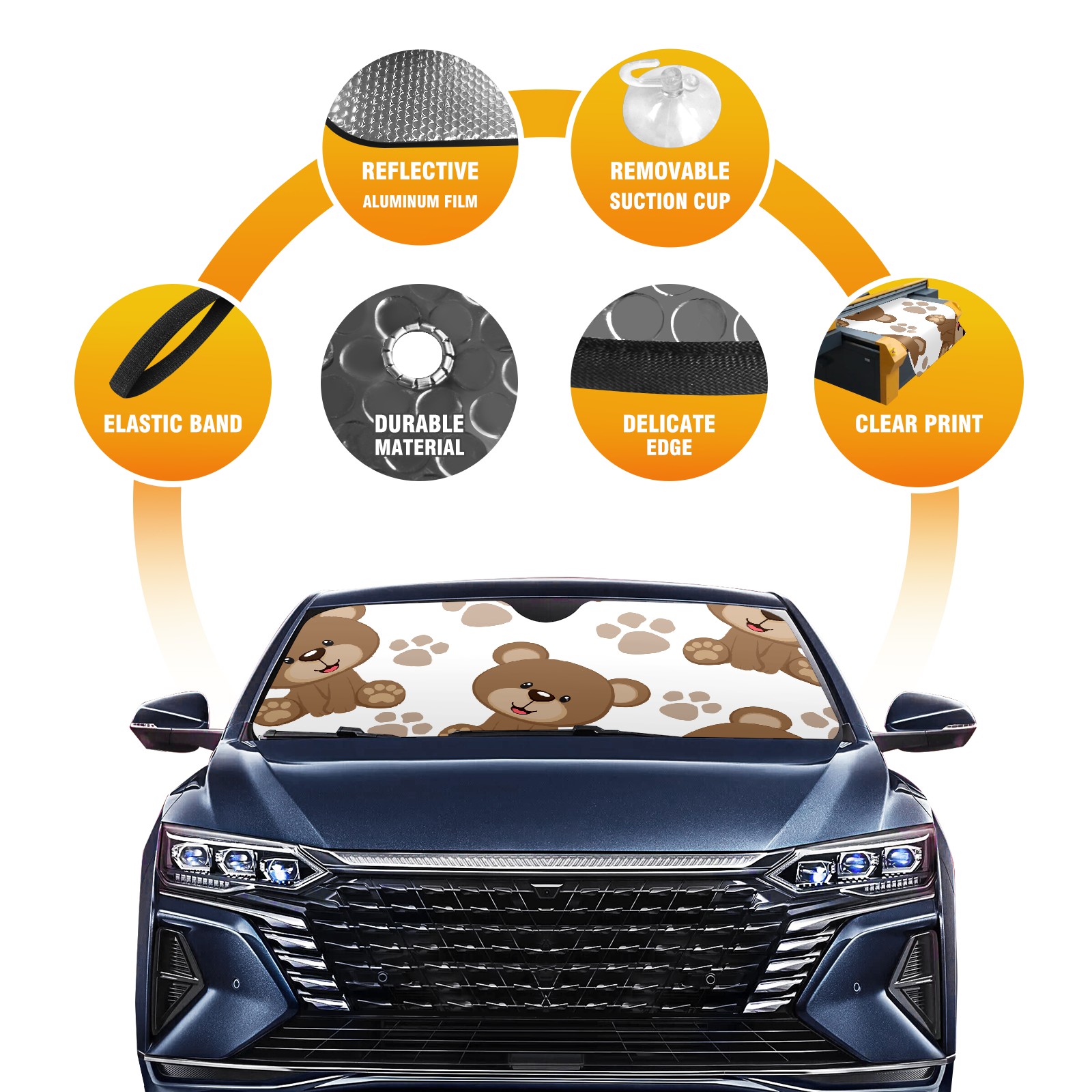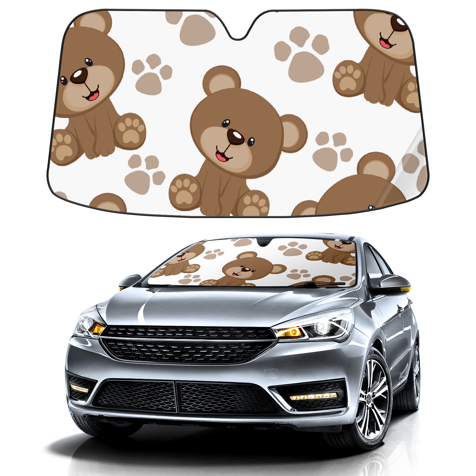 Car Windshield Sun Shade For Front Window Cute Brown Bear And Paw Foldable Vehicle Windshield Car Sun Visor Covers Automotive Window Protector Car Camping Privacy Sun Blocker