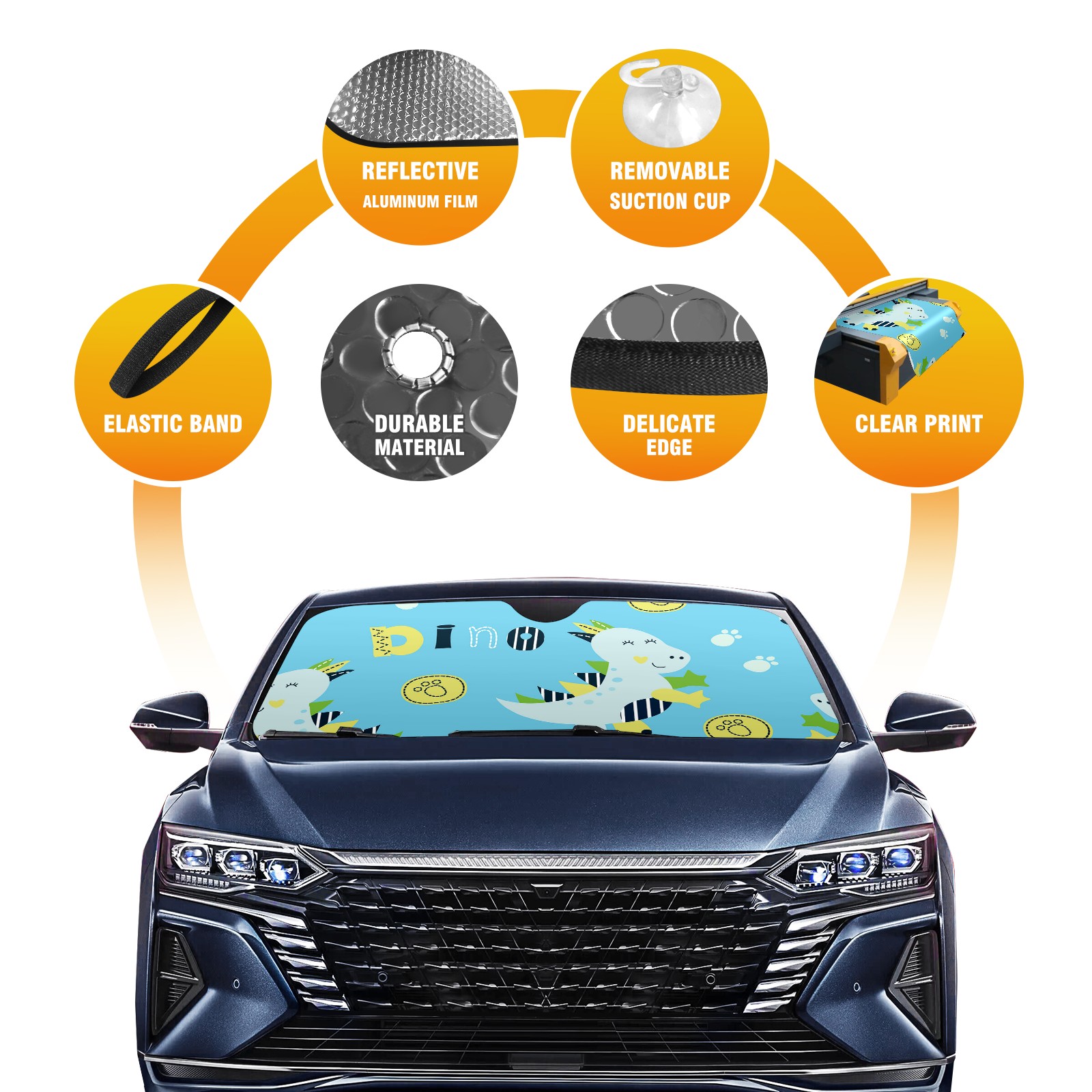 Car Windshield Sun Shade For Front Window Cute Little Dinosaurs Foldable Vehicle Windshield Car Sun Visor Covers Automotive Window Protector Car Camping Privacy Sun Blocker