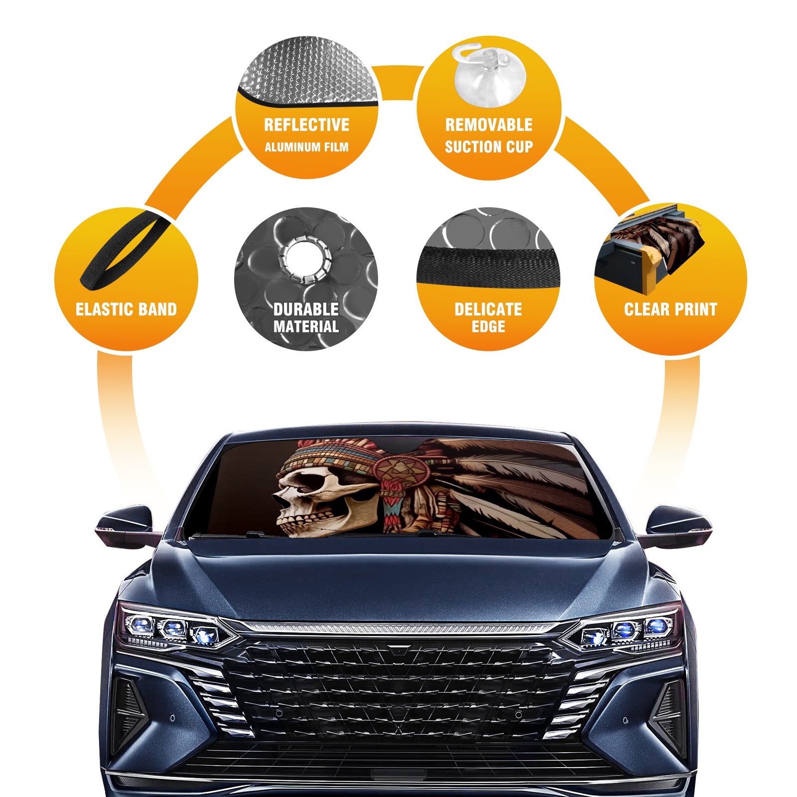 Car Windshield Sun Shade For Front Window Human Skeleton Foldable Vehicle Windshield Car Sun Visor Covers Automotive Window Protector Car Camping Privacy Sun Blocker