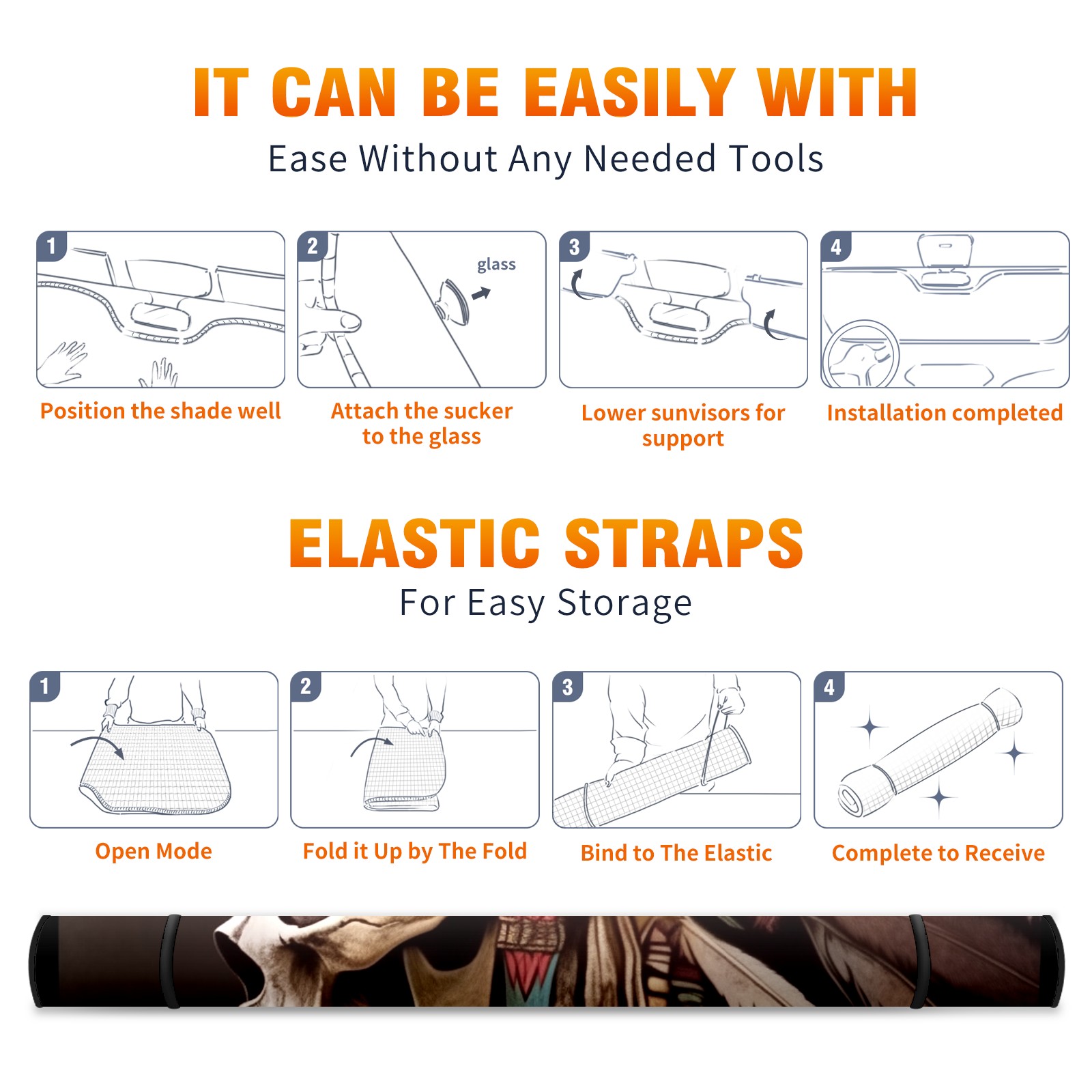 • Diameter /Size 63"L x 33.5"W Made from excellent materials which makes it sturdy and protects the car from the sun. Easy to use and pack. Makes the interior of the car cooler.You can easily stash the sunshade in the storage bag or store long term.It open and closes easy. Also the leather storage bag is durable and easy to put the umbrella back into.This windshield sunshade provides complete coverage and keeps your car interior cool under direct sun. It is easy to open and position under the windshield and around the rear-view mirror. Makes Your Car Easy To Identify, Perfect For Finding Your Car In Crowded Parking Lots And Garages.Great Choice: It Is A Great Gift For Dad, Boyfriend, Brother, Brother And Uncle, Friends, Classmates, Family And So On. Notice: Due To Difference Computer Monitors, The Color Maybe Slightly Different From Picture. As Different Measurement Methods, Measurement Data Will Float Within 2%.I Hope You Understand. If You Have Any Question About The Item Please Do Not Hesitate To Contact Us Immediately And We Will Give You A Satisfactory Reply Within 24 Hours.