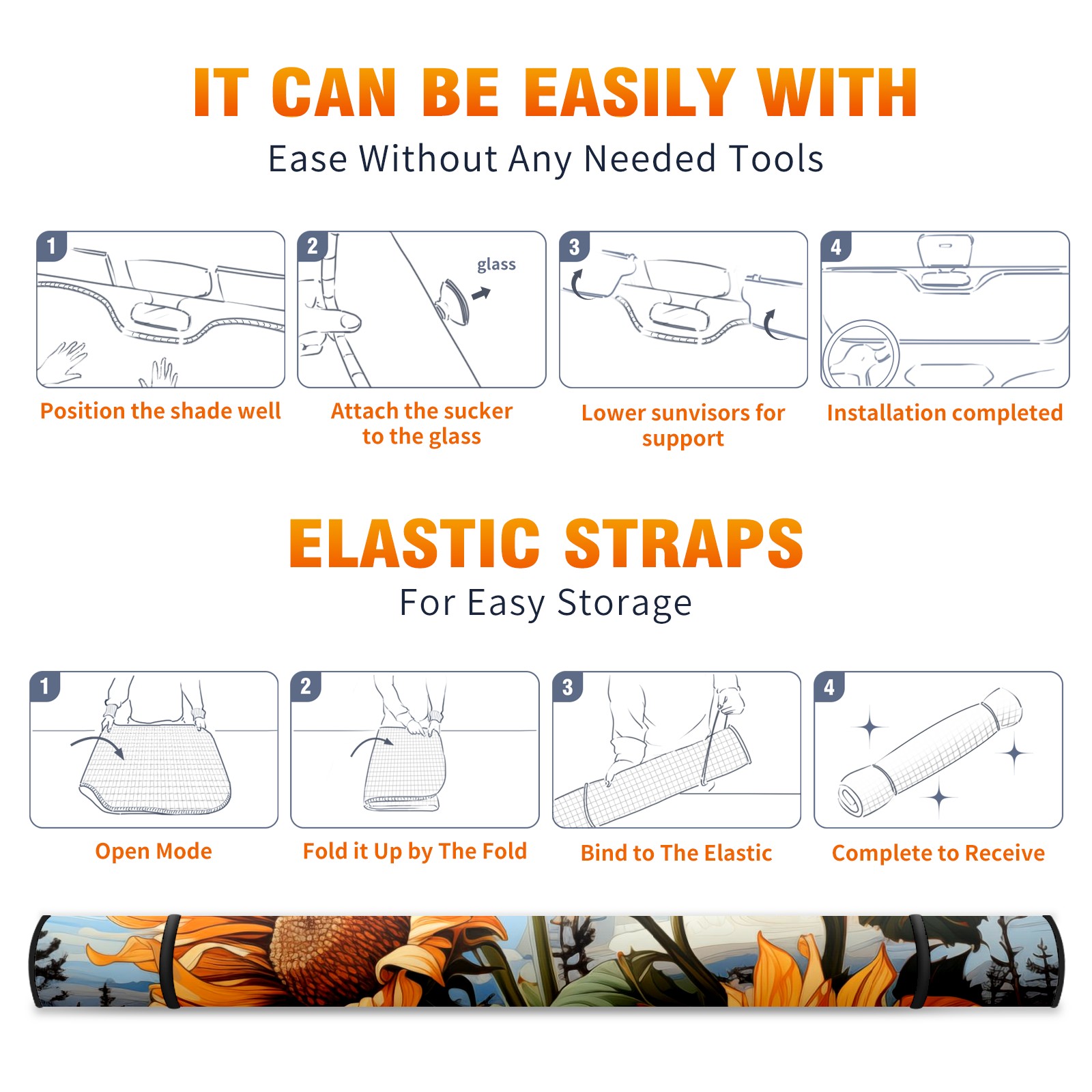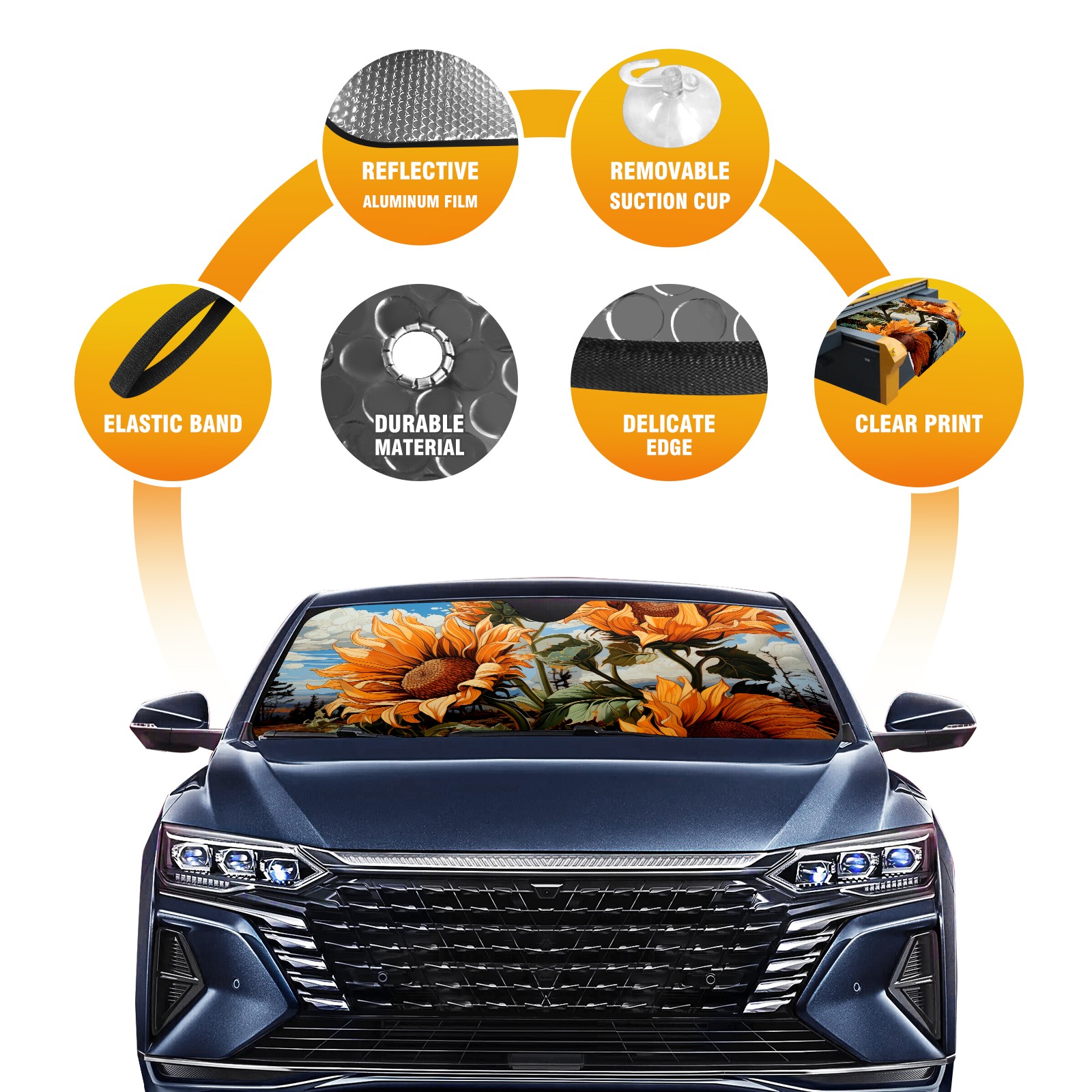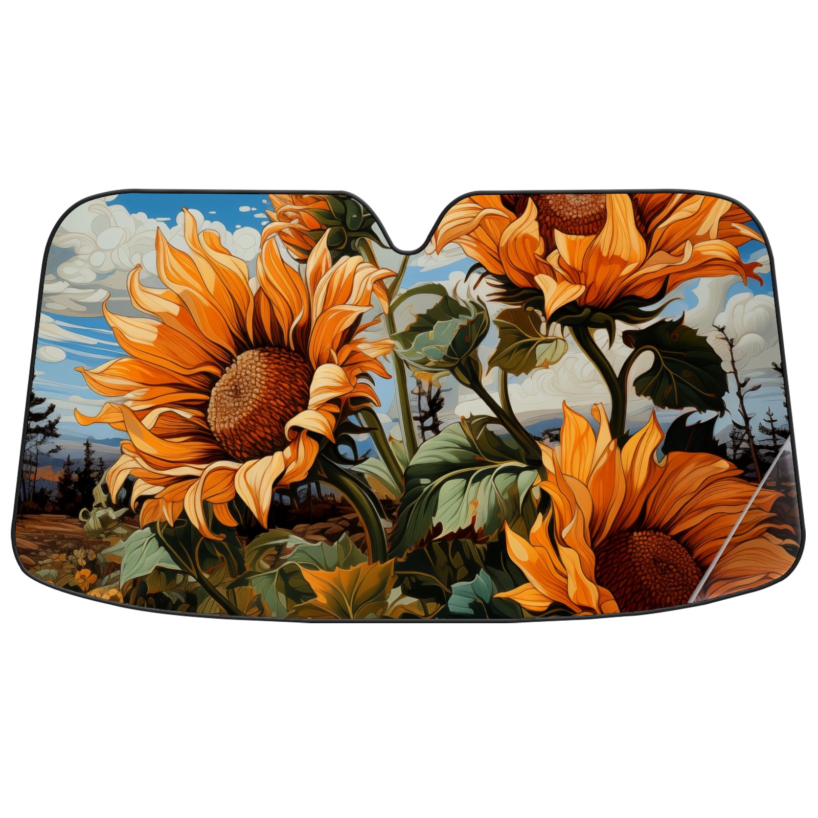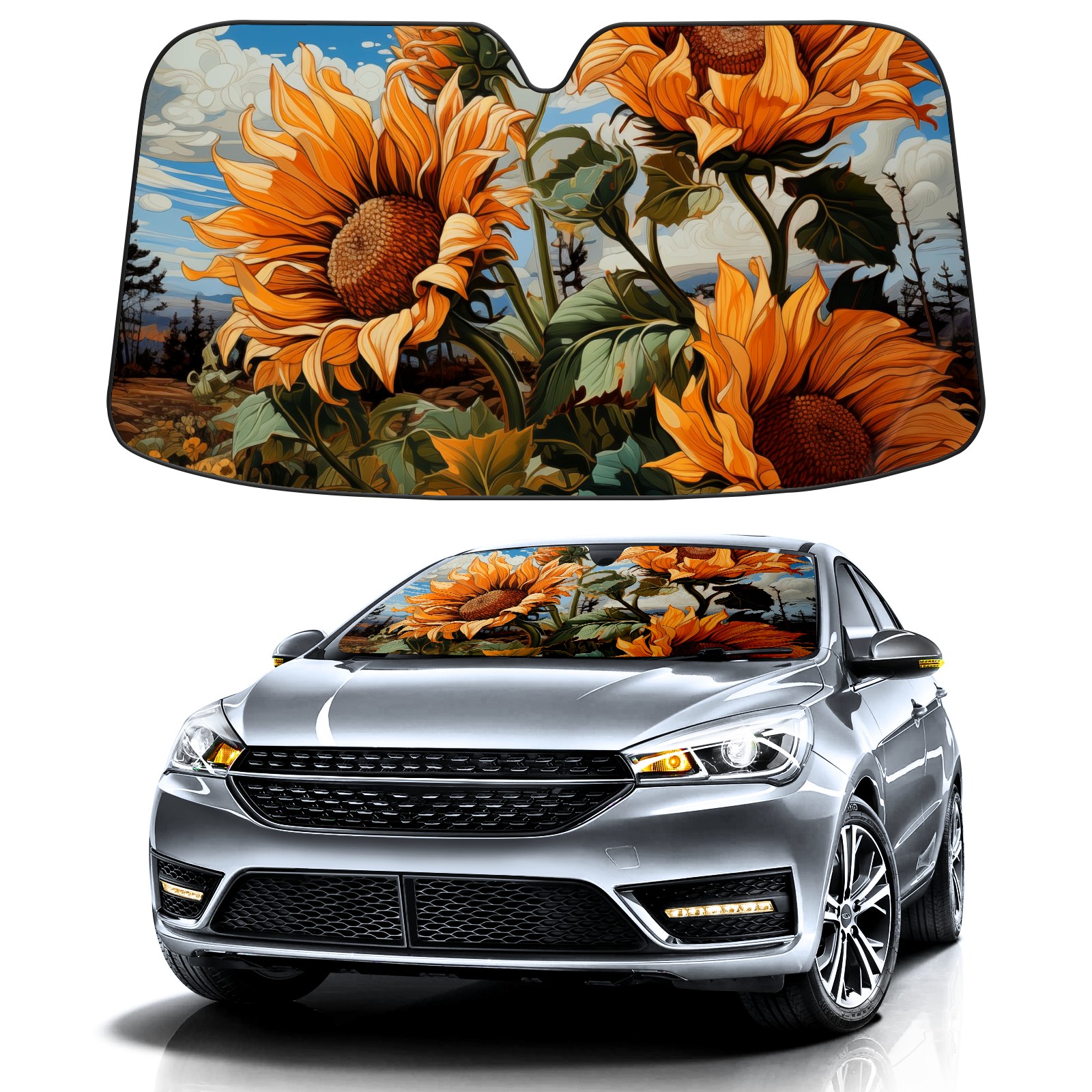 Car Windshield Sun Shade For Front Window Sunflower Sky Foldable Vehicle Windshield Car Sun Visor Covers Automotive Window Protector Car Camping Privacy Sun Blocker